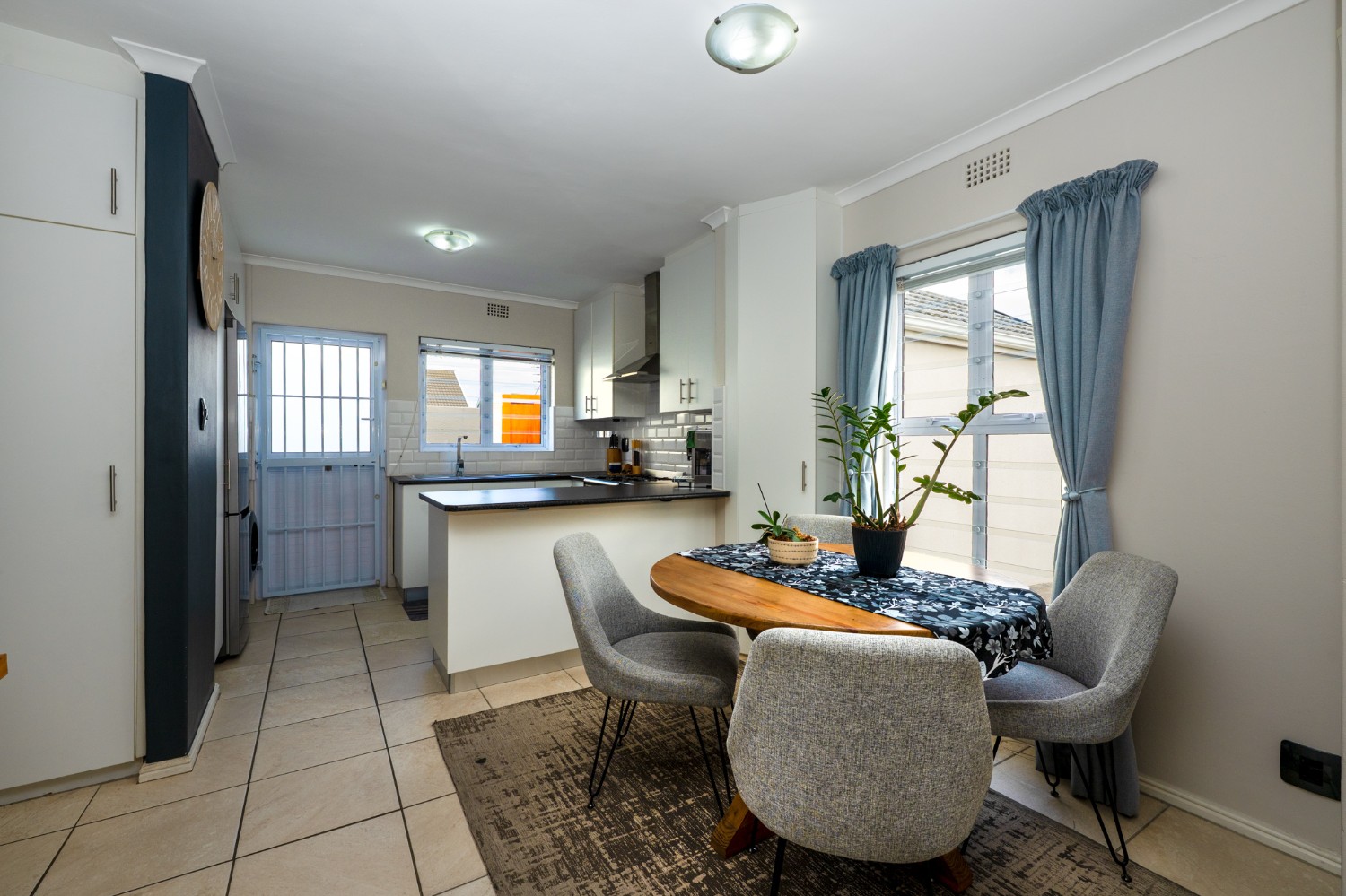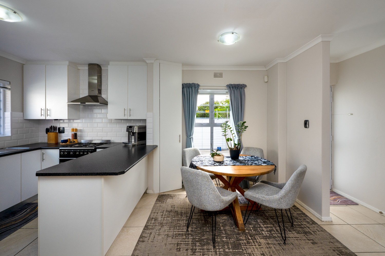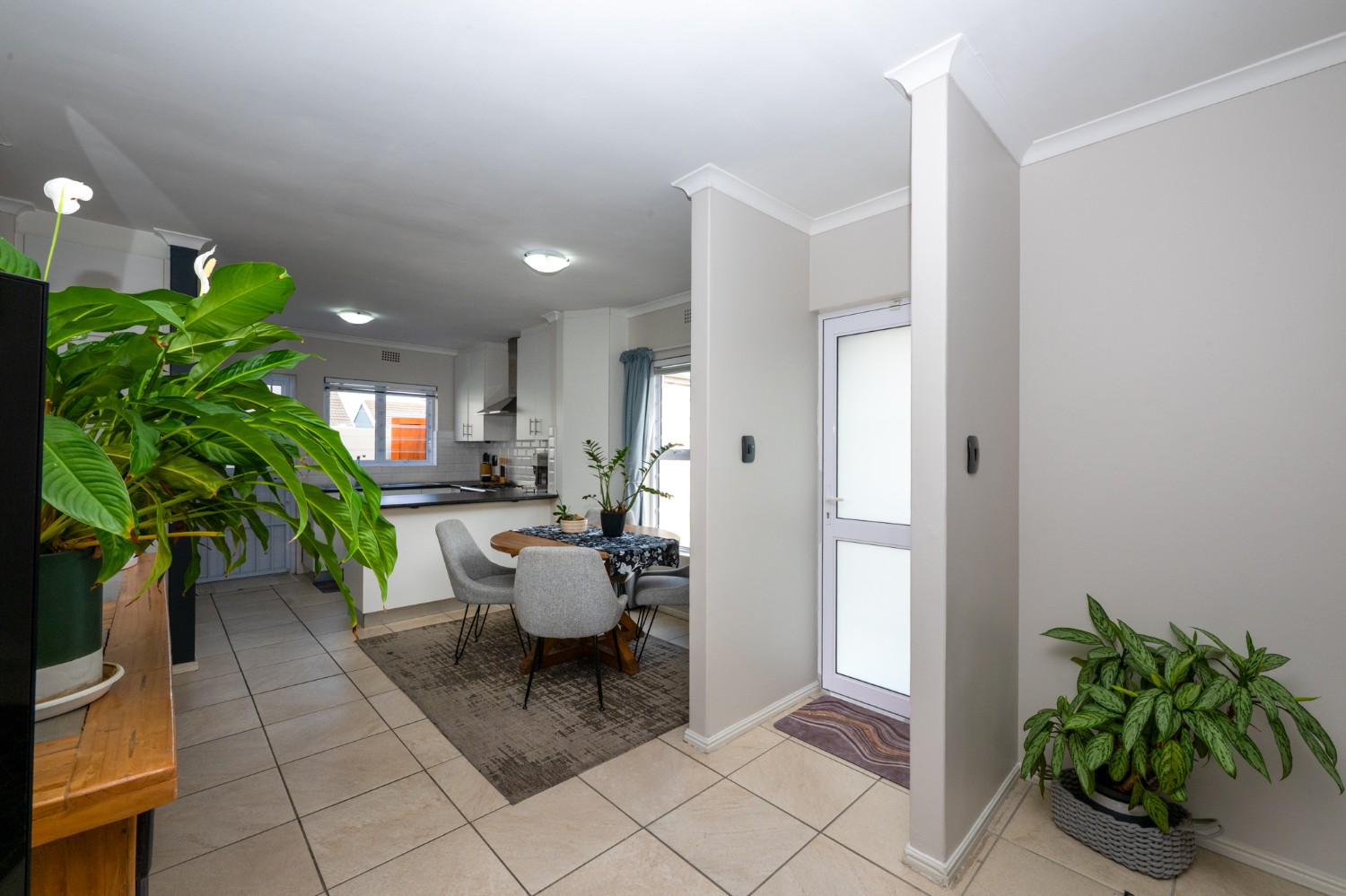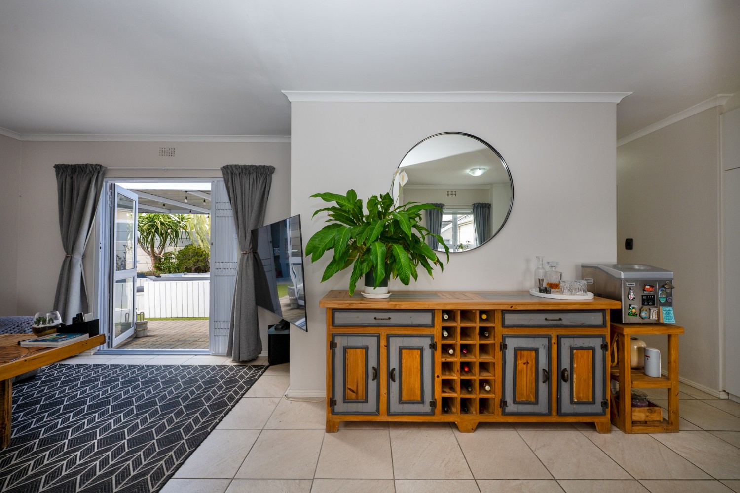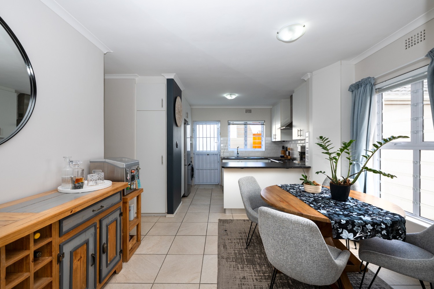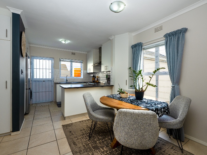 The heart of the home opens onto a stunning, fully paved entertainment area, complete with a covered patio and built-in braai, as well as a portable Intex PureSpa 4-person Deluxe Hot Tub, perfect for relaxed gatherings and year-round enjoyment.