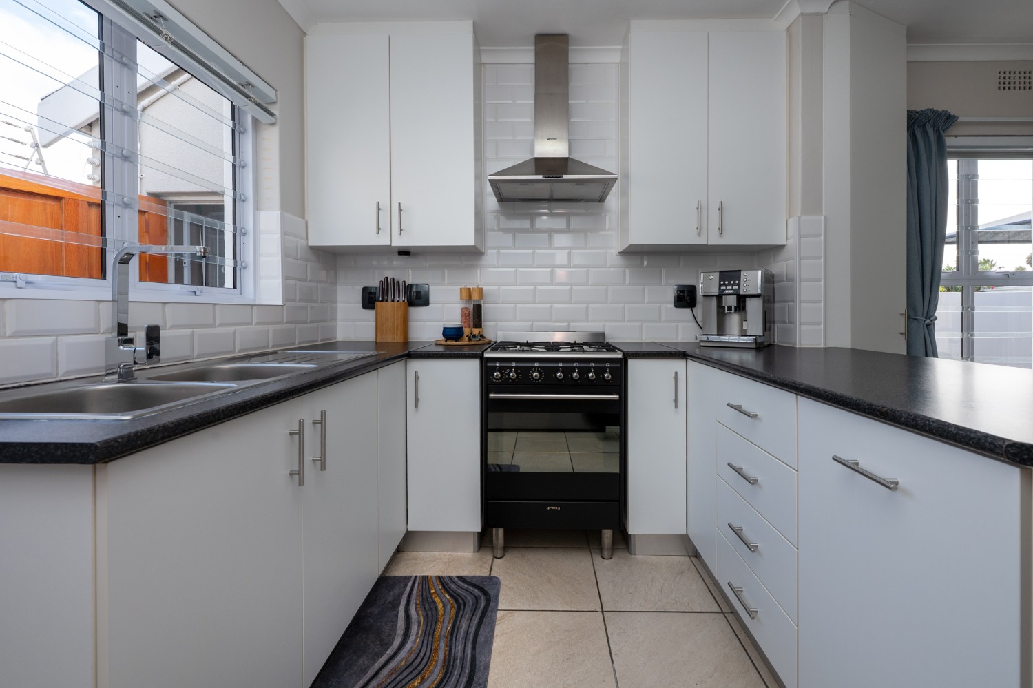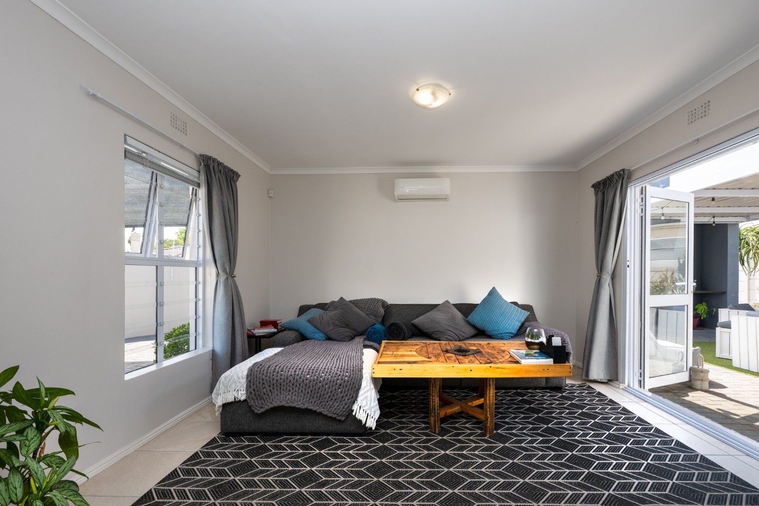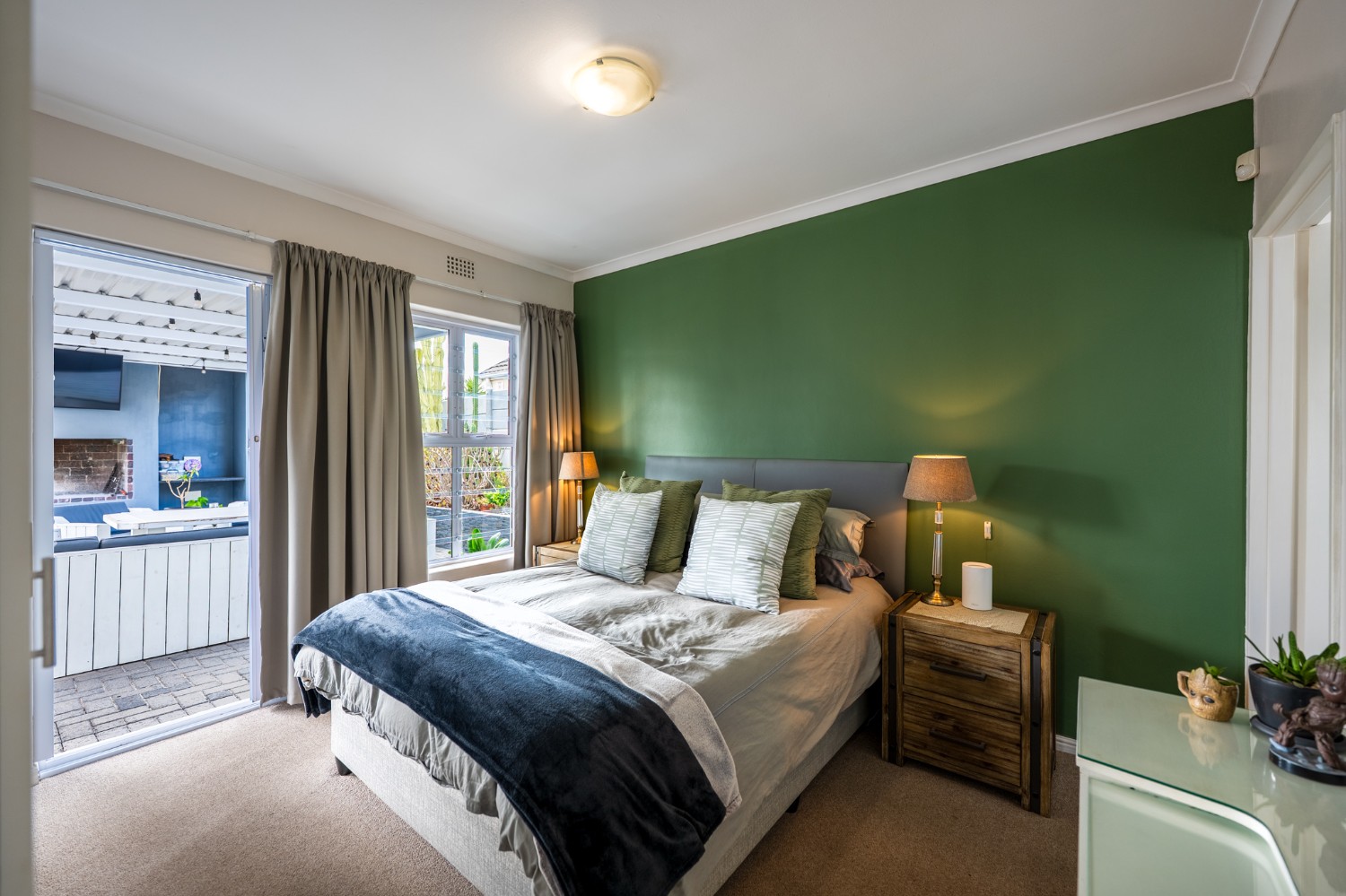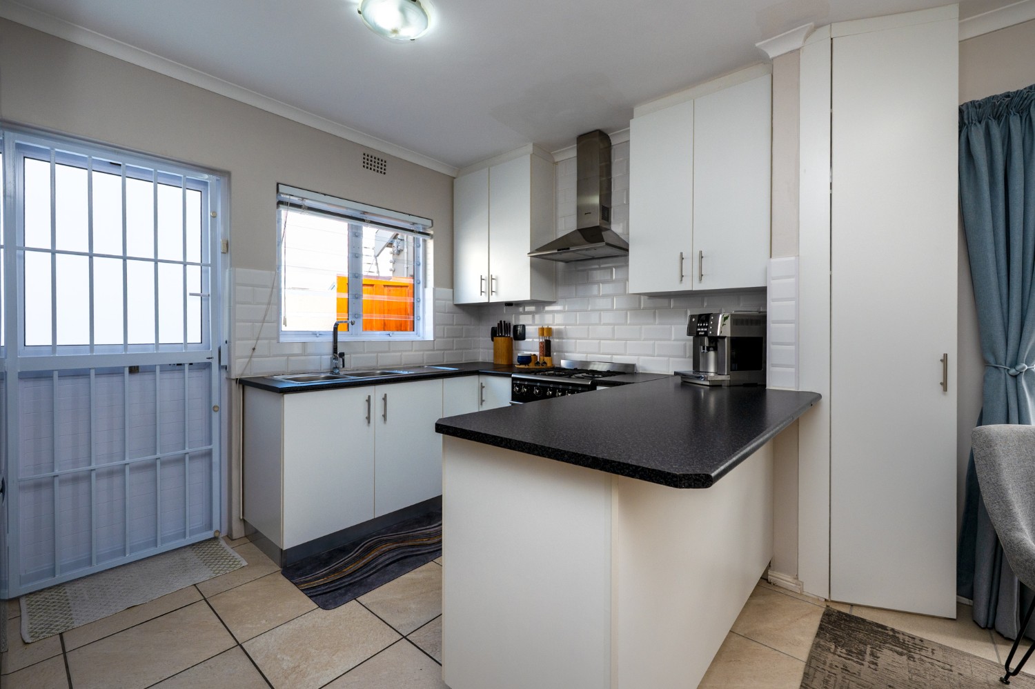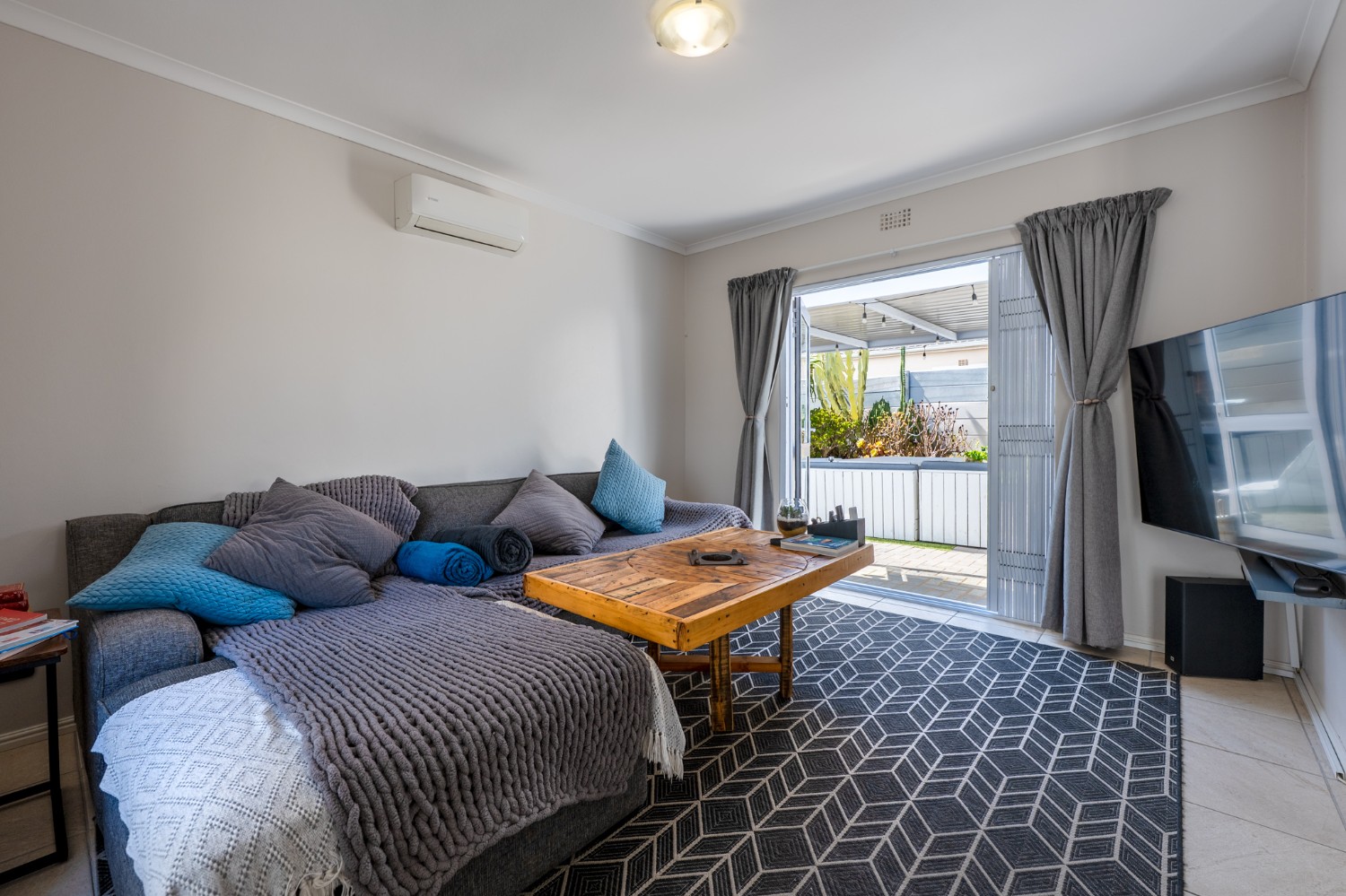 The heart of the home opens onto a stunning, fully paved entertainment area, complete with a covered patio and built-in braai, as well as a portable Intex PureSpa 4-person Deluxe Hot Tub, perfect for relaxed gatherings and year-round enjoyment.