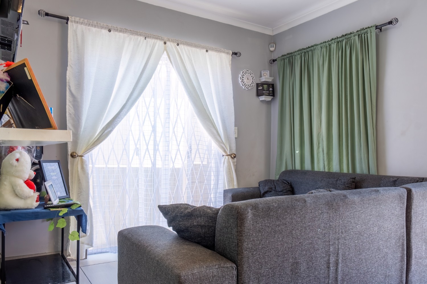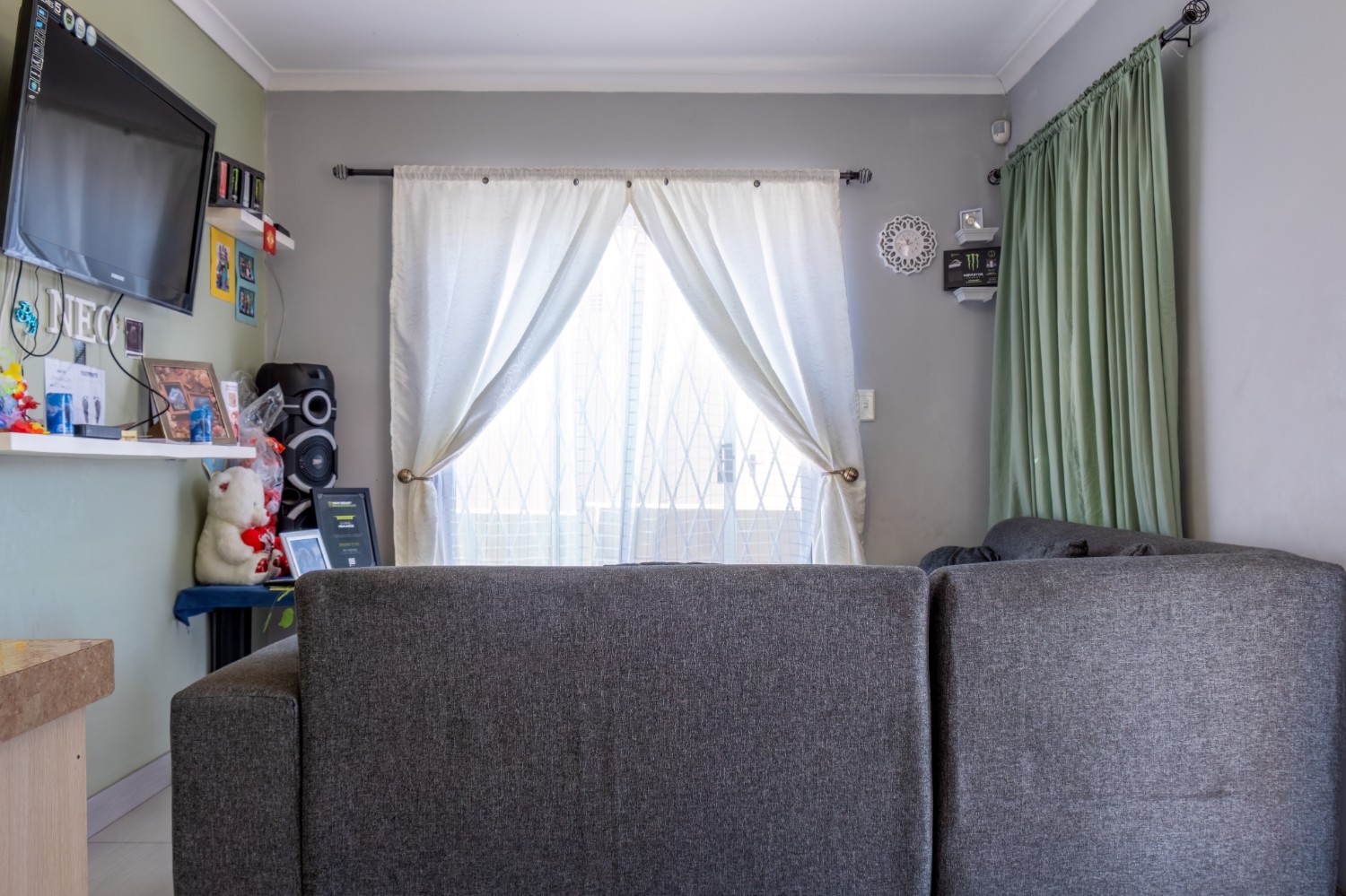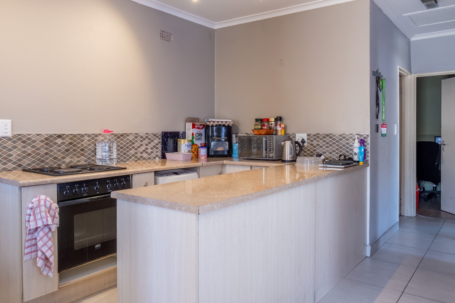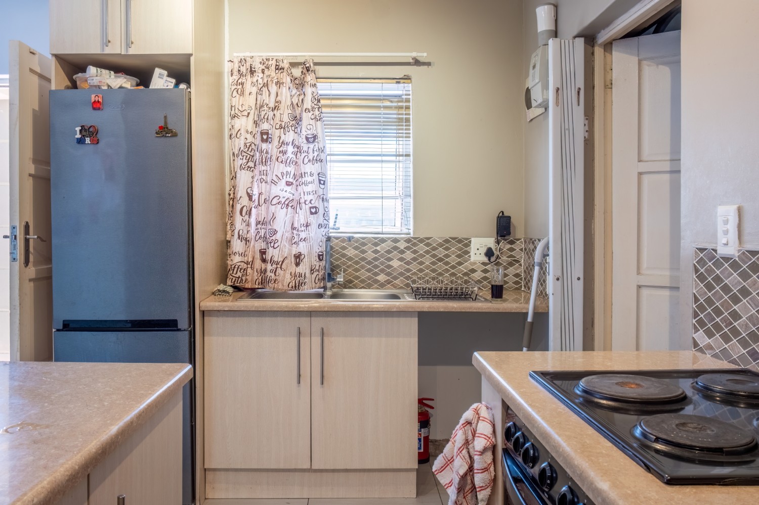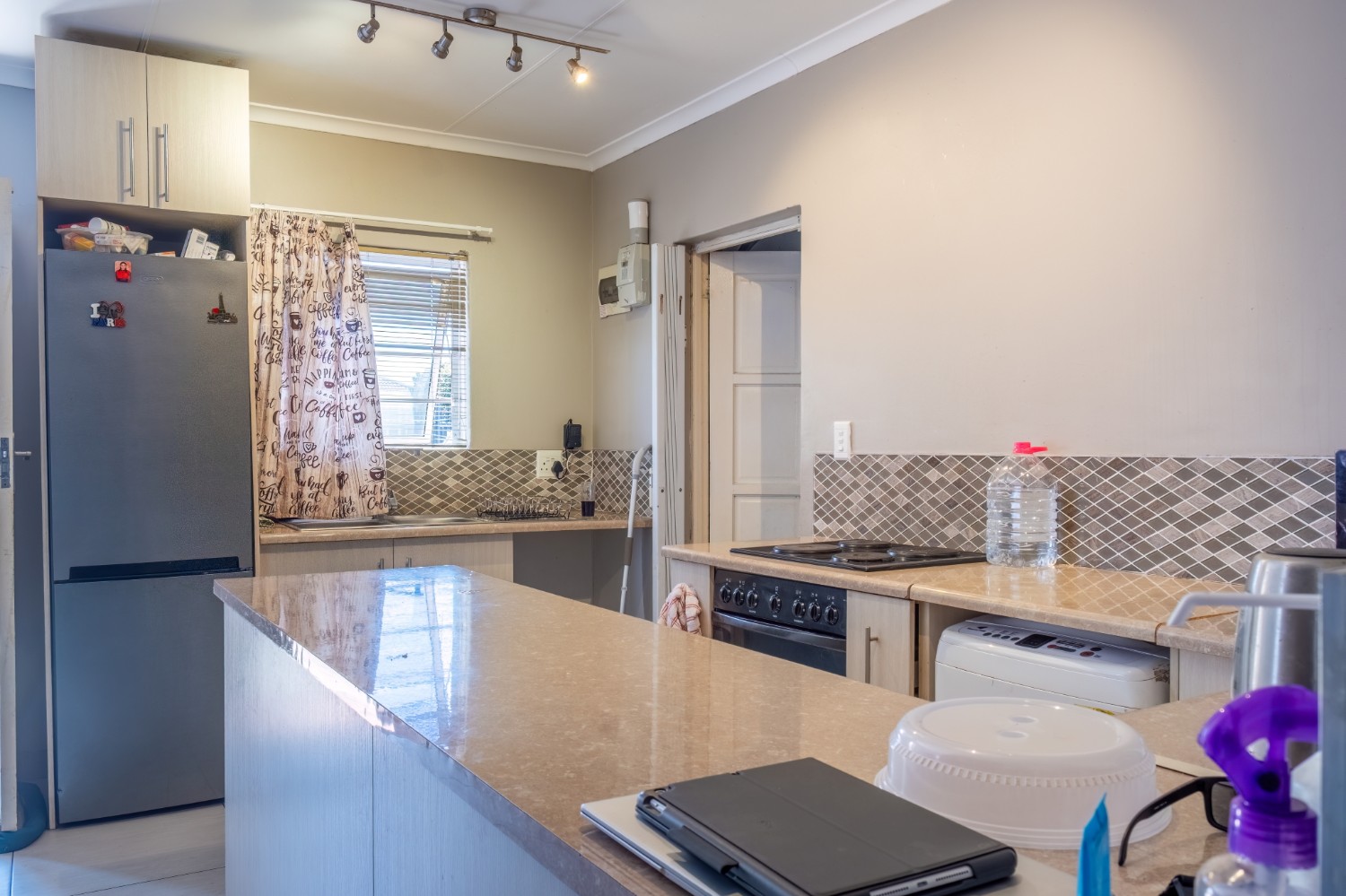 As you enter this well-maintained home, you are welcomed into a bright and inviting open-plan lounge, creating a comfortable space for everyday living. The kitchen is fitted with built-in cupboards, offering ample storage and functionality.