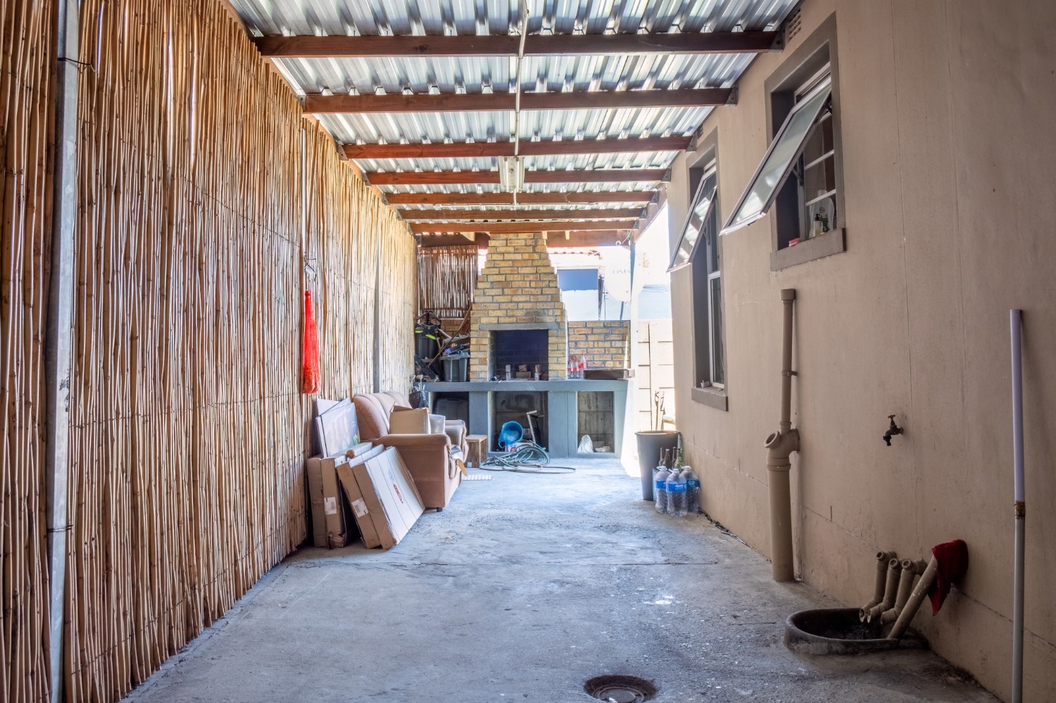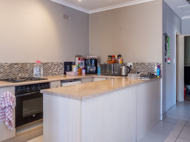Ideal for entertaining, the property includes a built-in braai area—perfect for enjoying time with family and friends. Parking is well catered for with a garage accommodating up to three vehicles, as well as additional secure parking for two cars behind a gate.