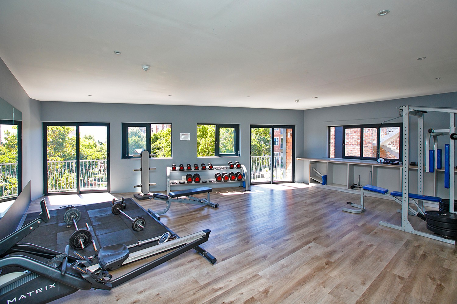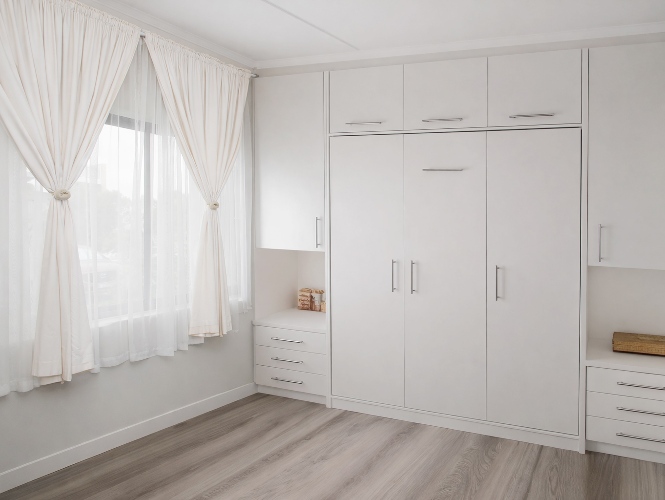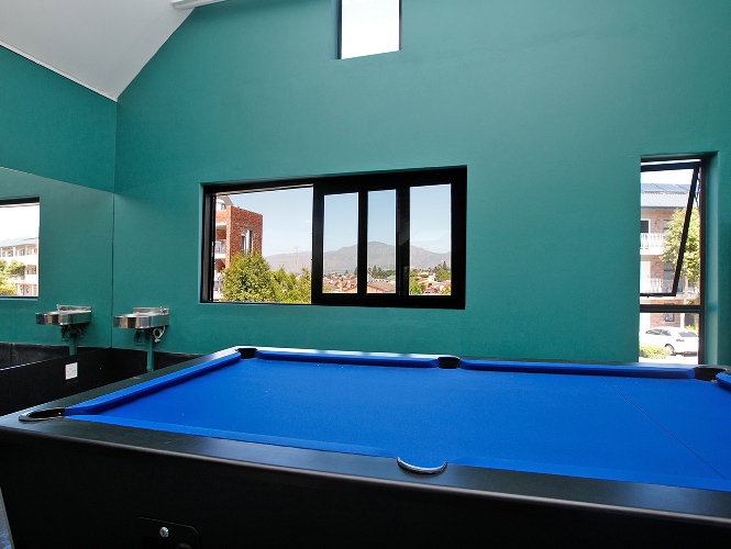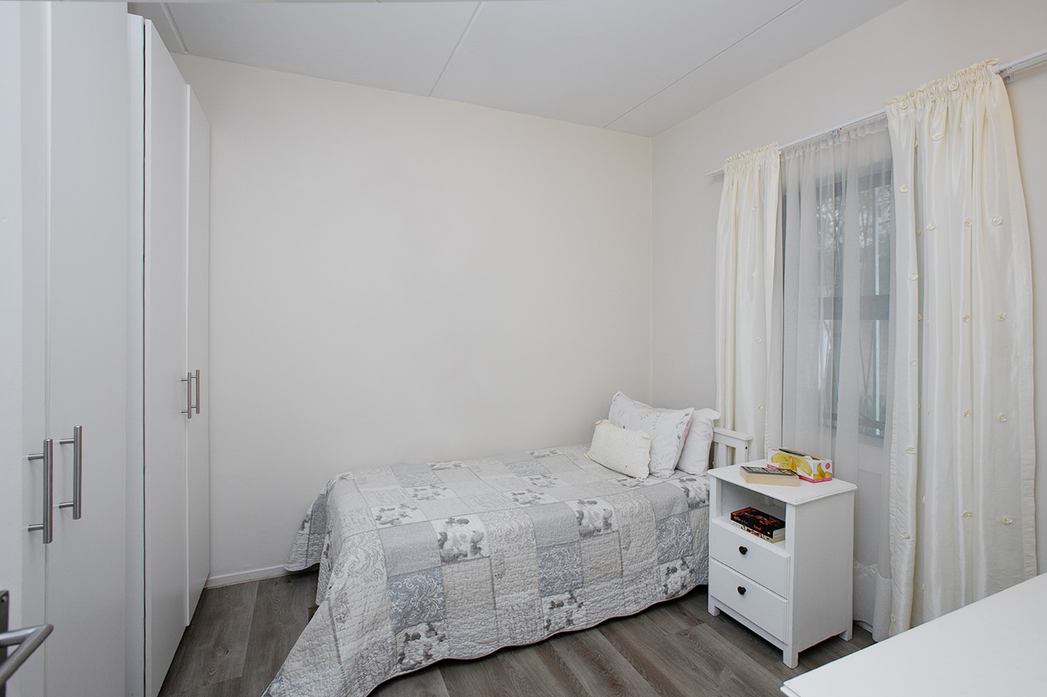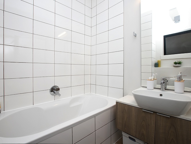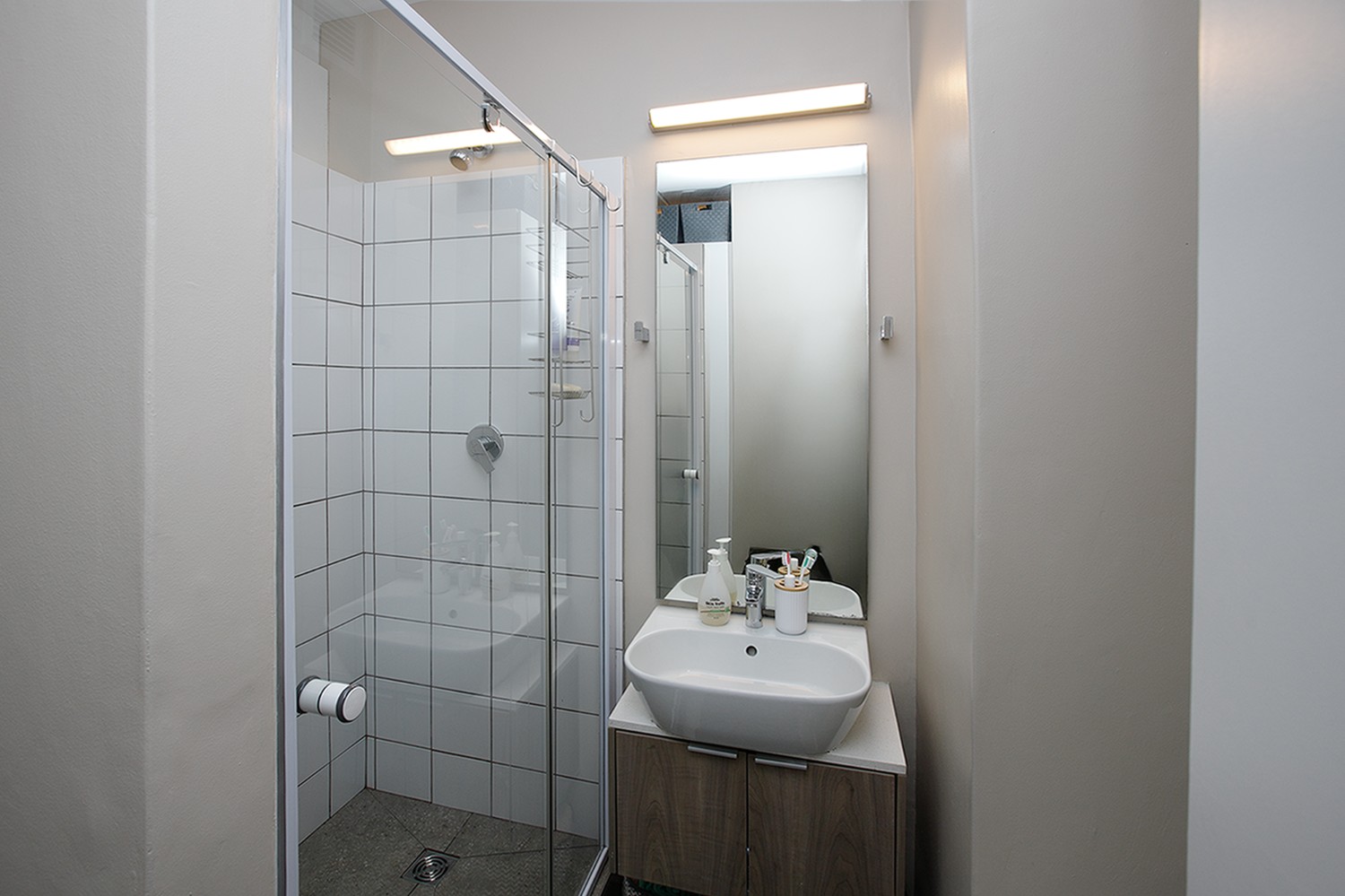 2 bedrooms and 2 stylish bathrooms. A fold-away bed was added to the Main bedroom that folds away for space-saving. This is a fixed feature that is included.