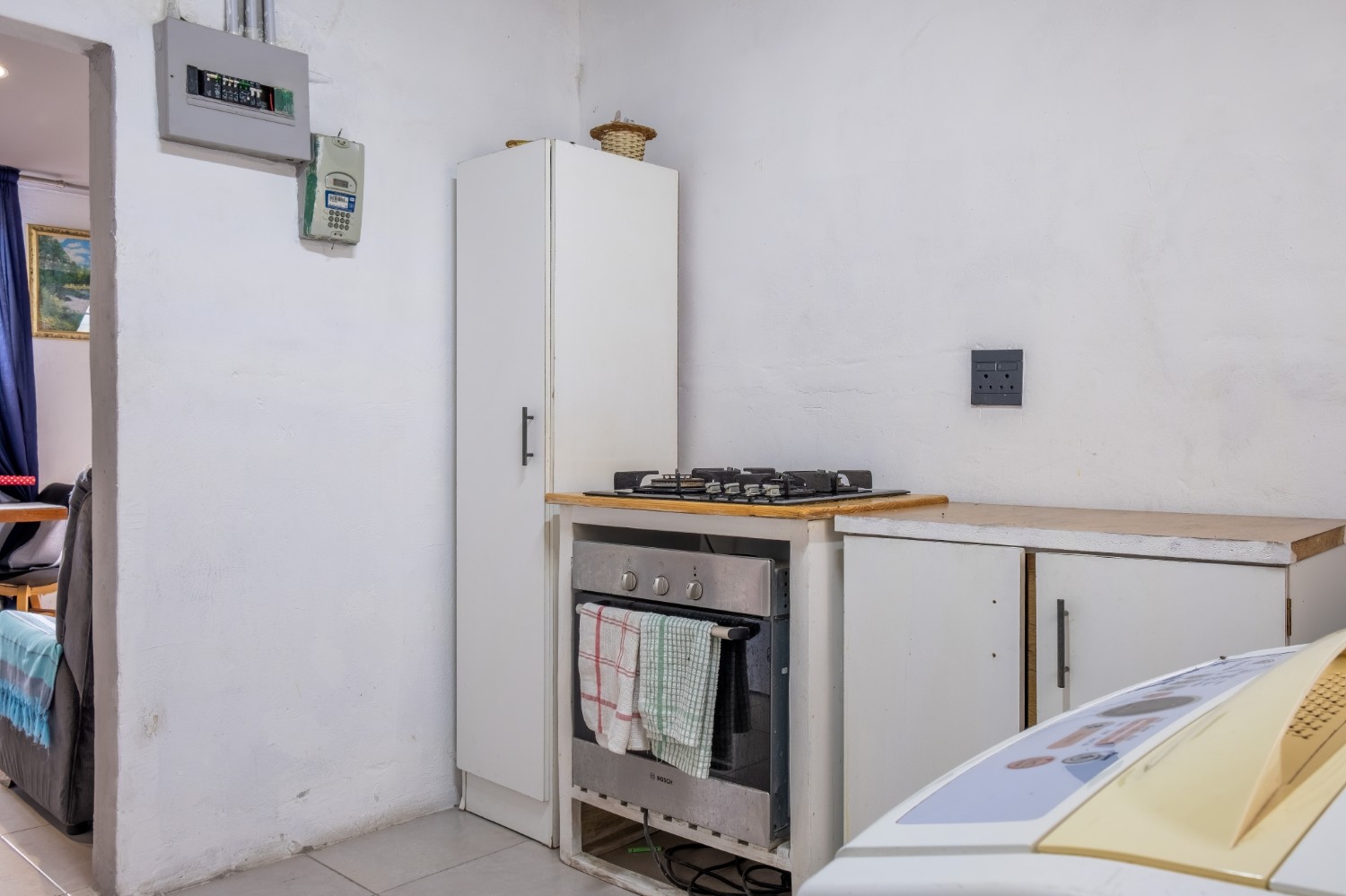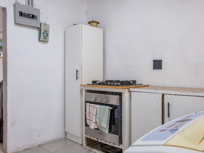 Inside, the home welcomes you with a spacious lounge with tiled flooring and high ceilings, creating a bright and airy living environment ideal for everyday comfort and relaxation. The kitchen is neatly finished with tiled flooring and comes equipped with a fitted stove and oven, providing a practical and functional cooking space.