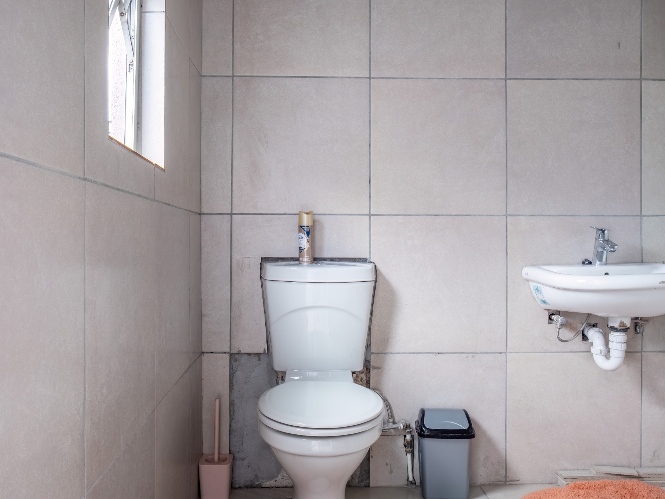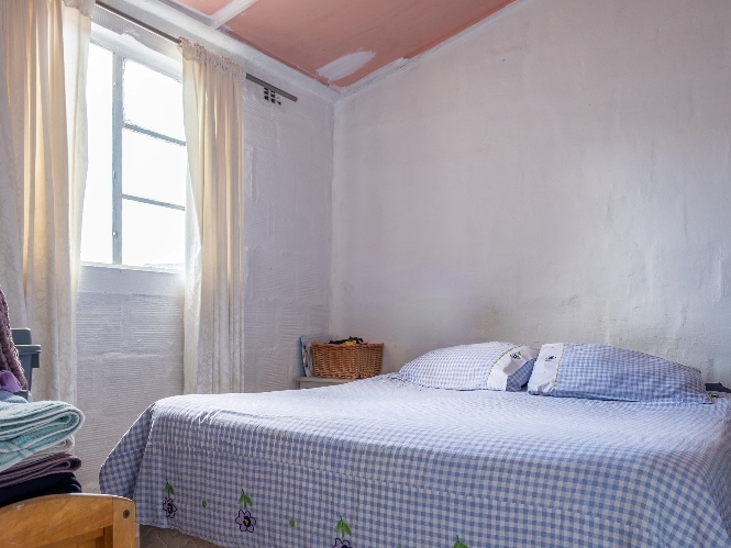 There are two well-sized bedrooms, featuring tiled flooring and ample natural light, making them comfortable and inviting. The bathroom is fitted with a shower, toilet, and basin, designed for easy maintenance.