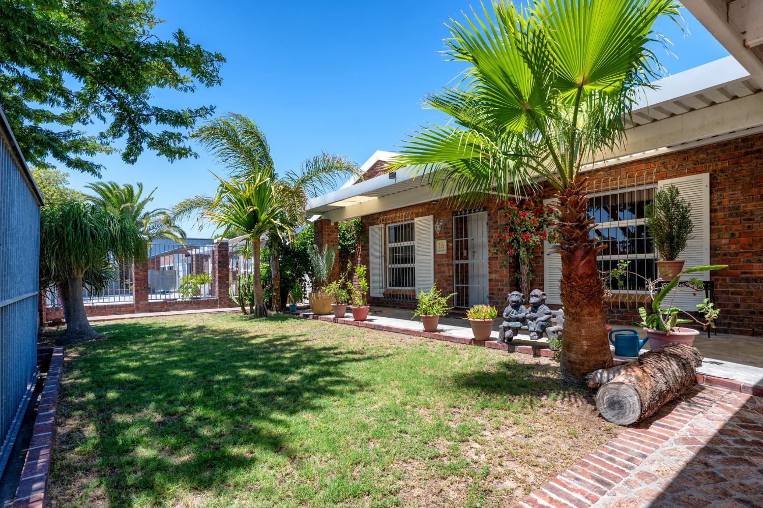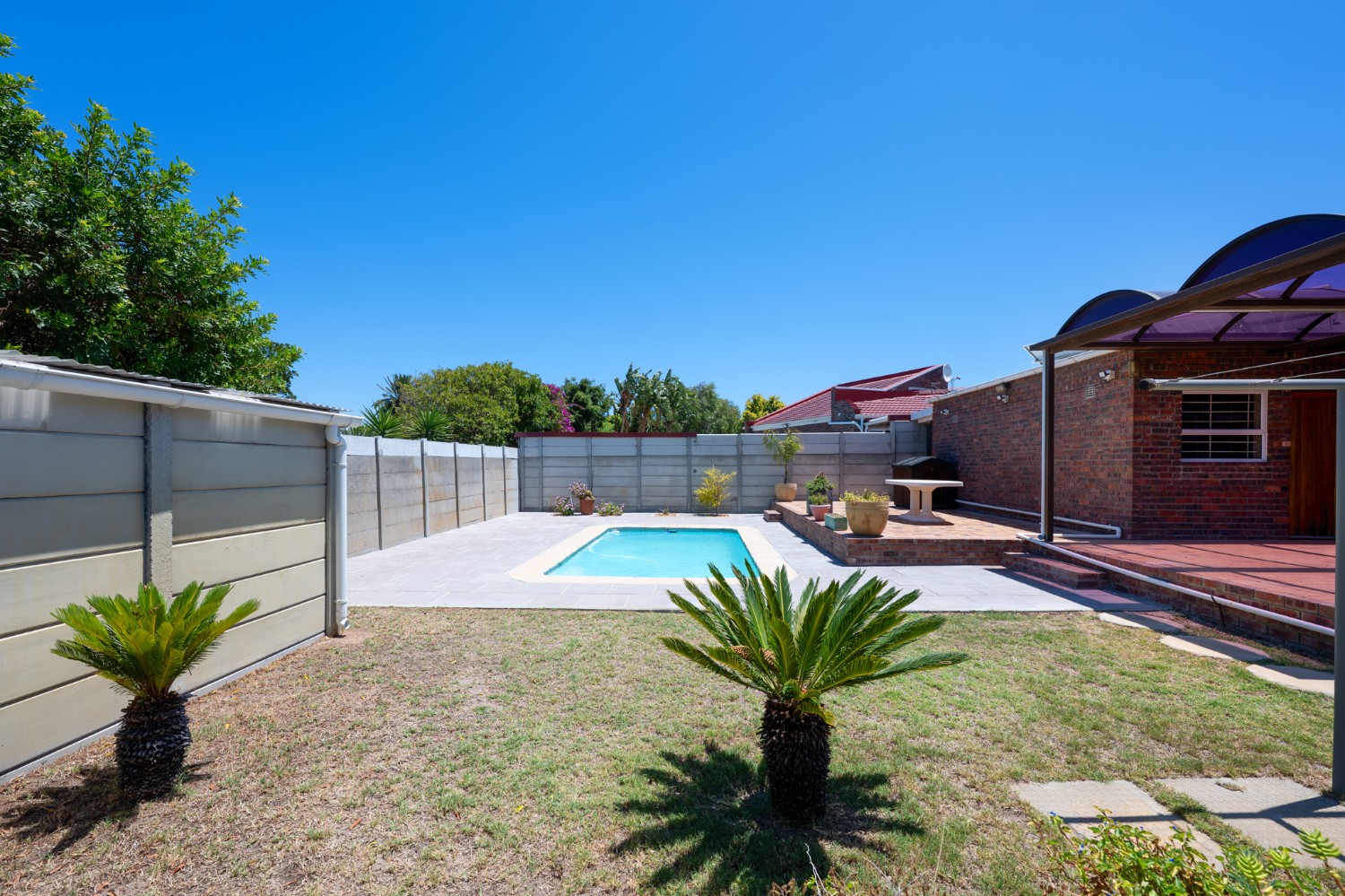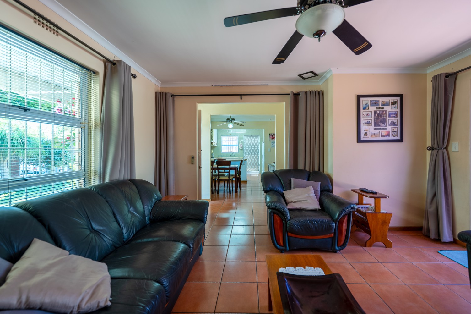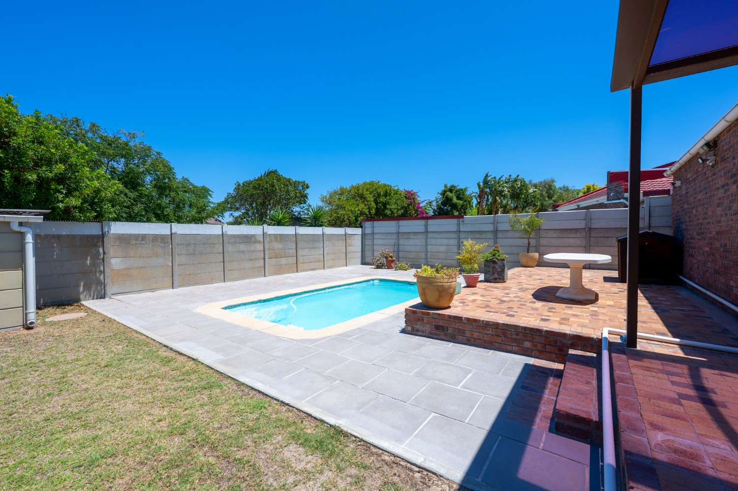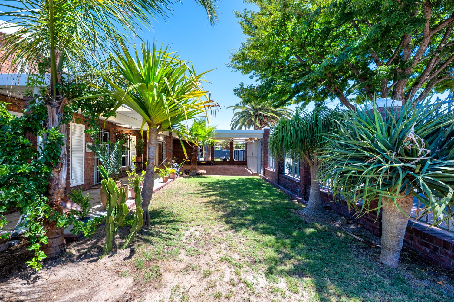 The outdoor area includes a swimming pool and an impressive water-saving setup with four JoJo tanks. Two tanks collect rainwater, while the additional tanks are used for pool backwashing and pumping borehole water. The borehole, fitted with a pump, is connected to the home’s toilets, providing excellent water efficiency.