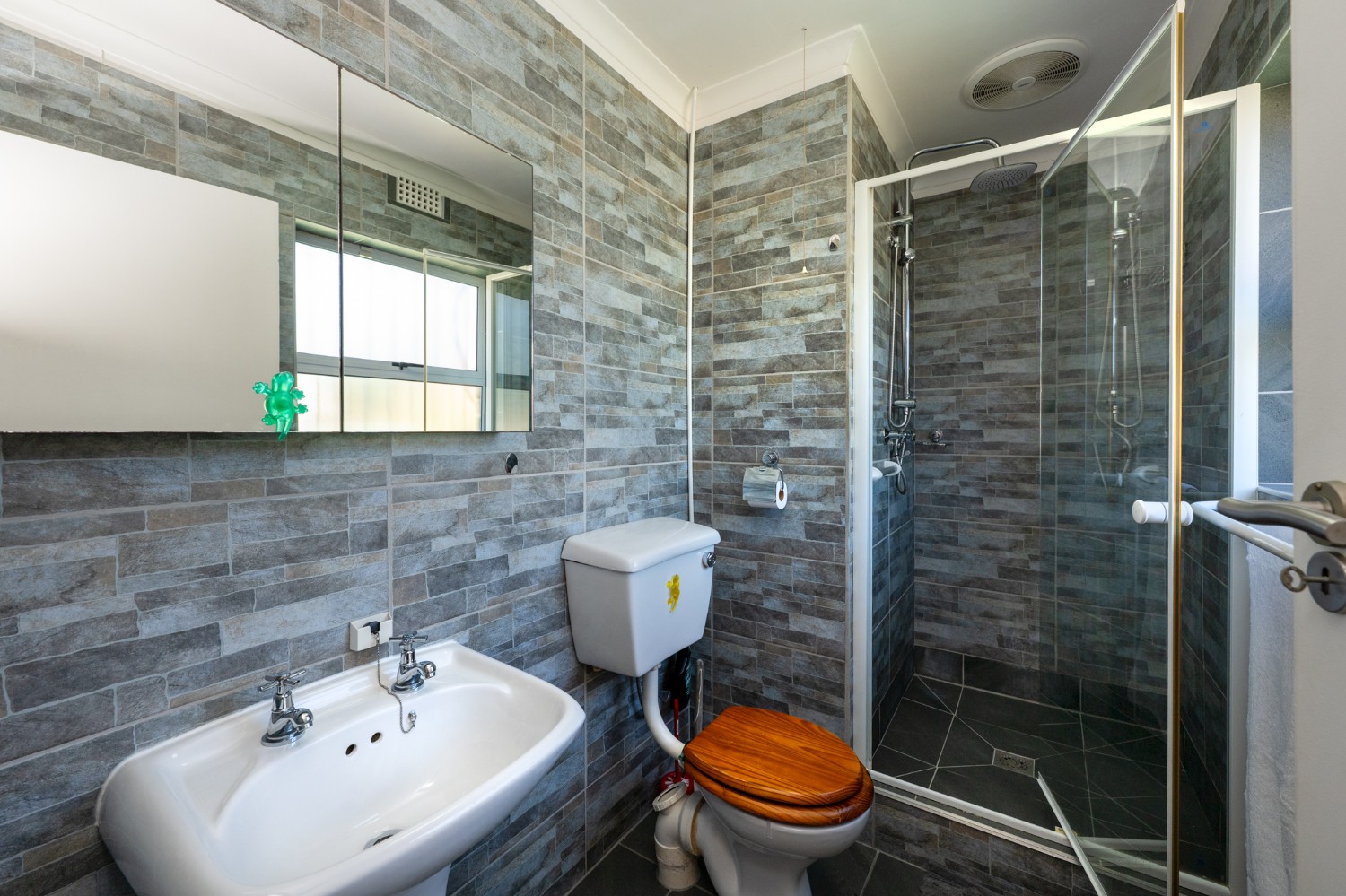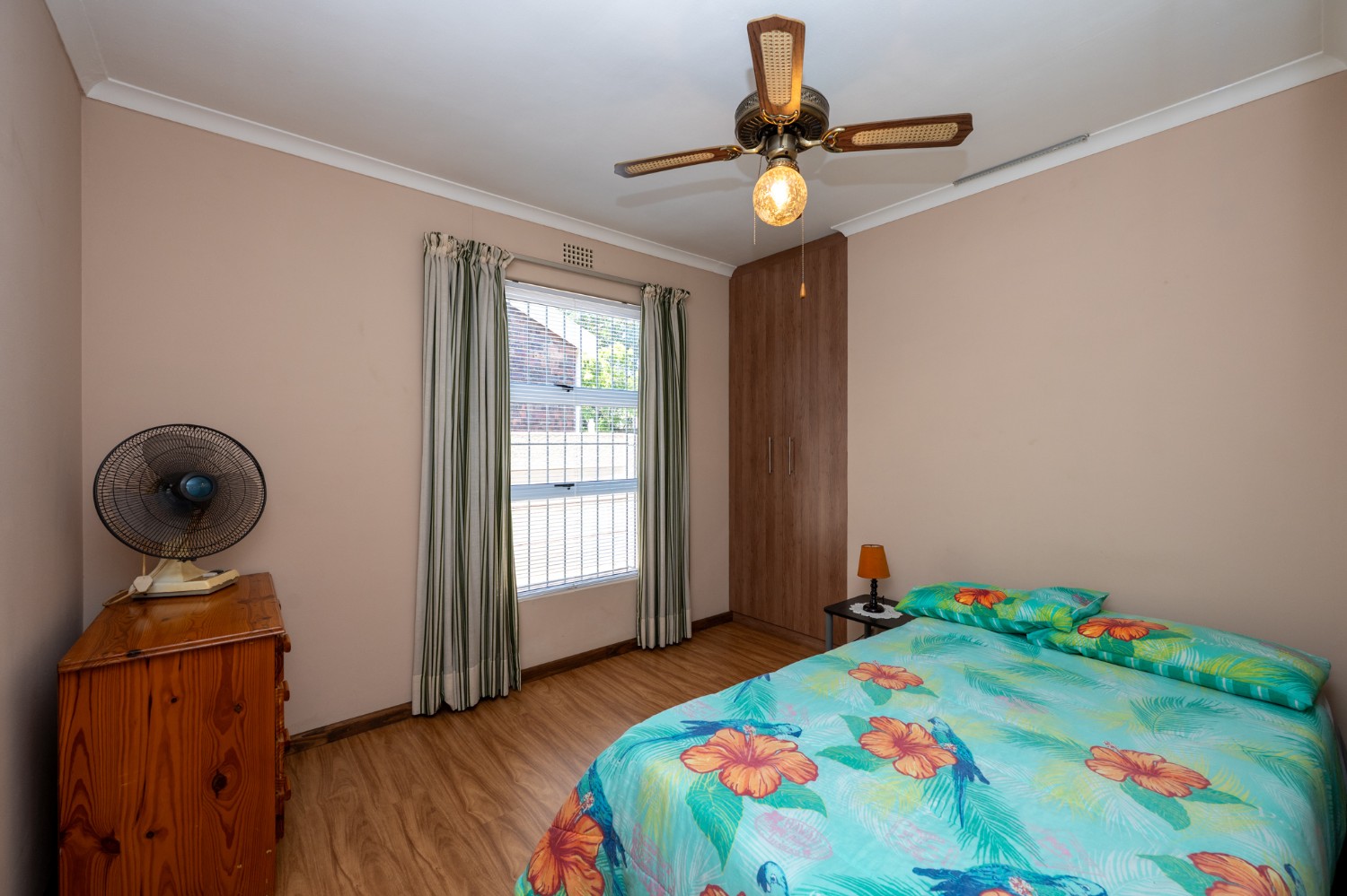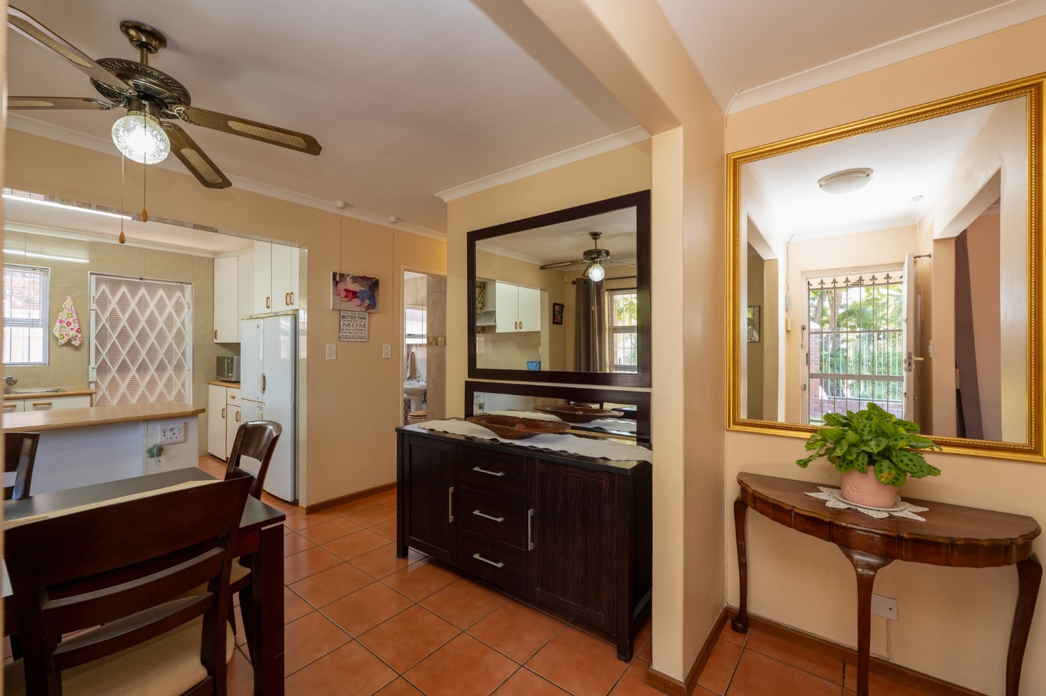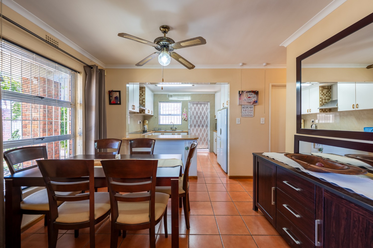The property boasts 3 well-sized bedrooms, all fitted with built-in cupboards, with the main bedroom featuring air-conditioning. There are 2 bathrooms, including a full family bathroom with a bathtub and a main en-suite with a shower.