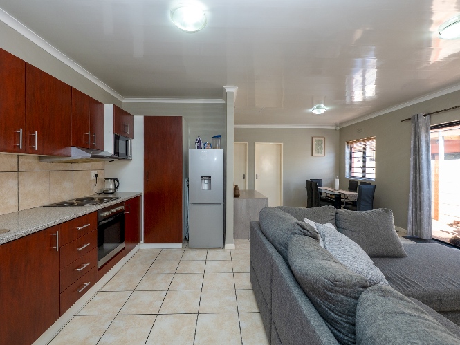 The backyard offers a paved outdoor space with a built-in braai area, perfect for entertaining. The property also includes carport parking for added convenience, a neat and secure home offering excellent value in a sought-after complex.