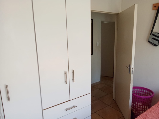 All three bedrooms are well-sized and include built-in cupboards, offering ample storage. The family bathroom is fully fitted with a bathtub, basin, and toilet.
