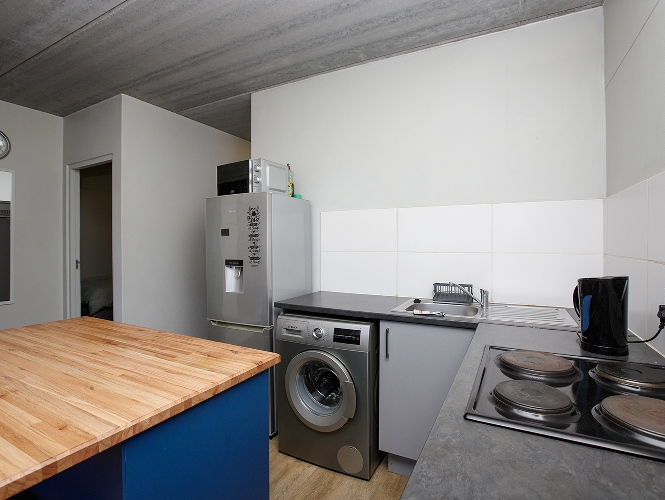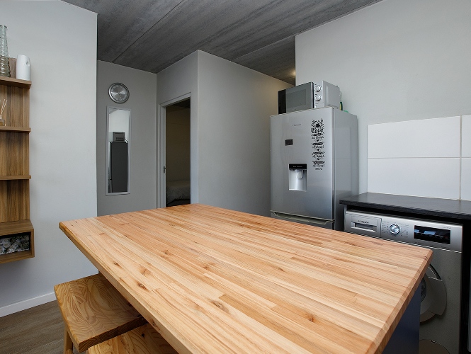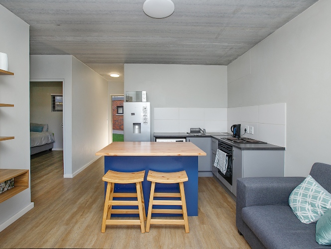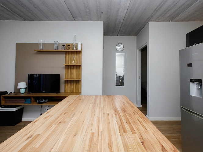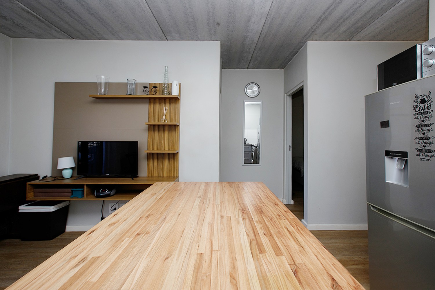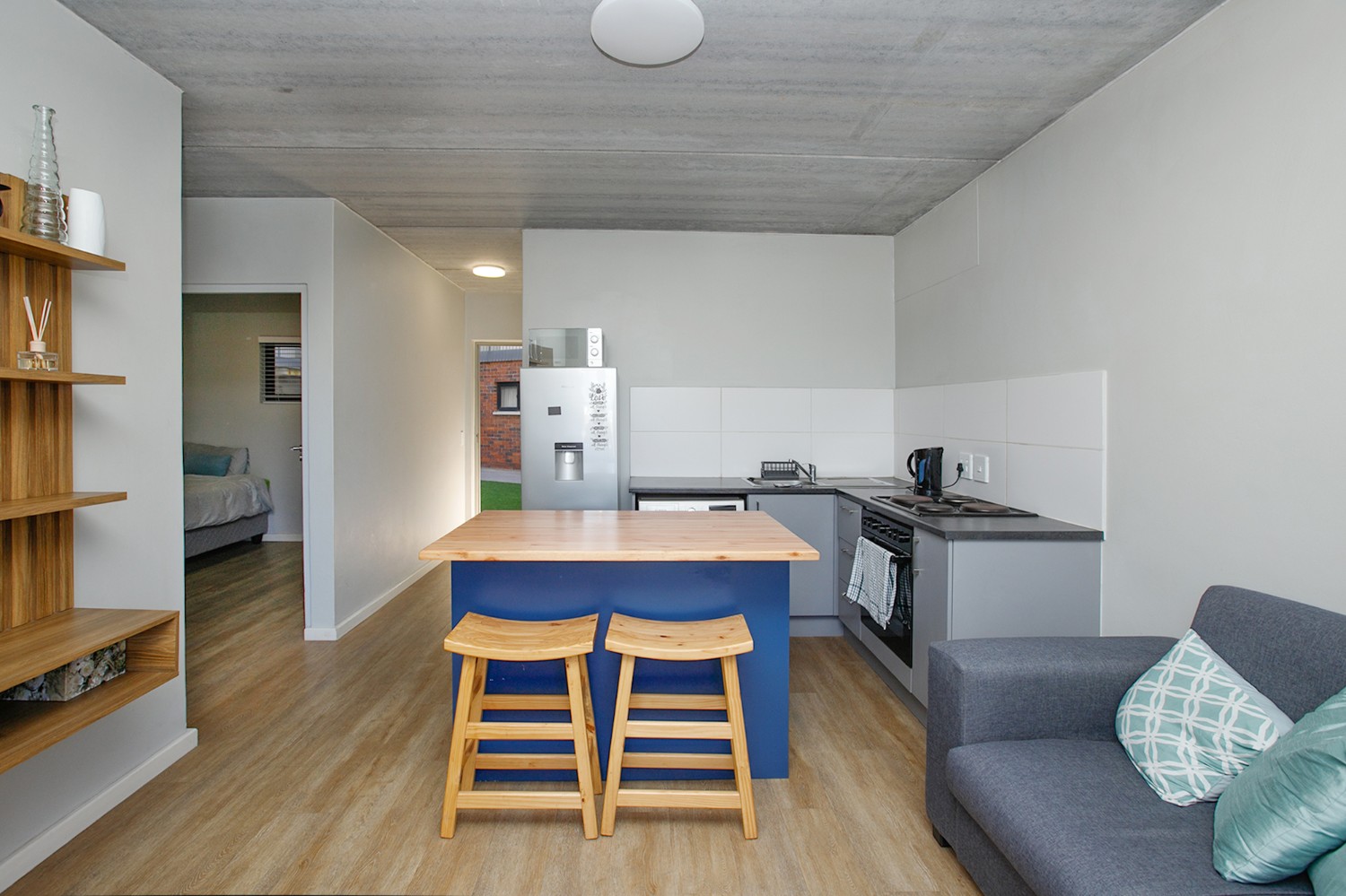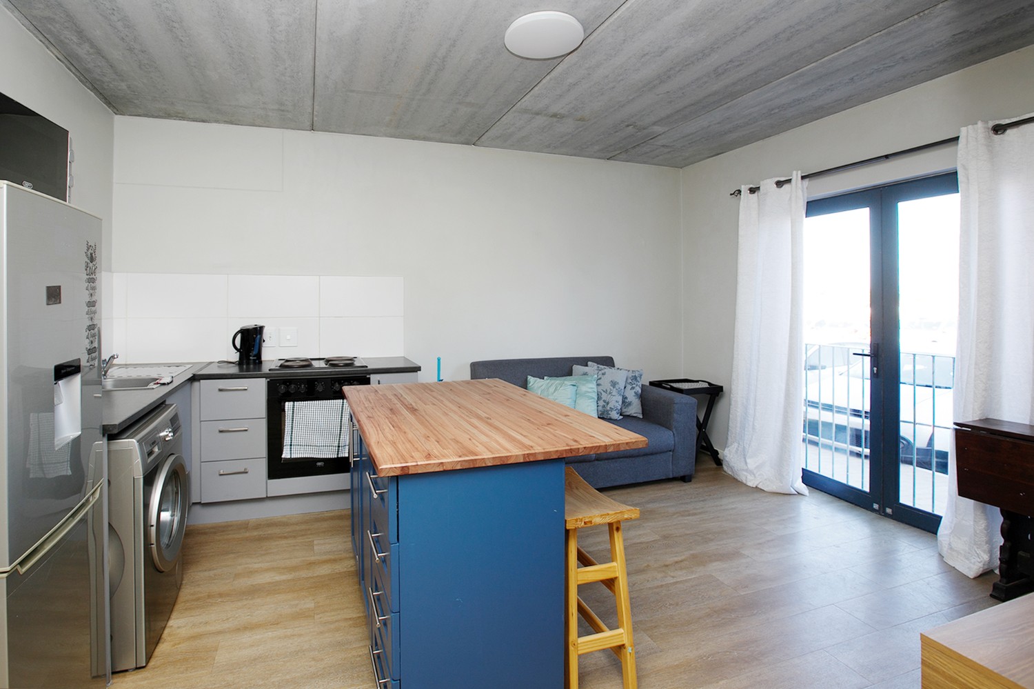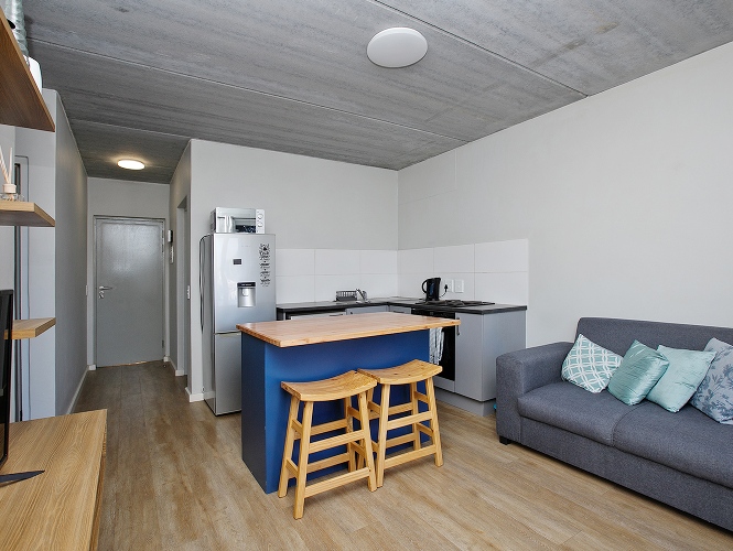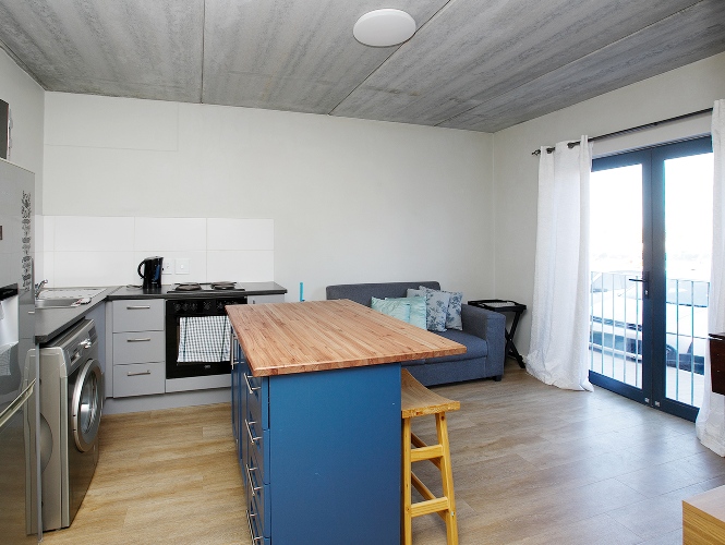 Upon arrival, you are welcomed into a bright open-plan lounge and kitchen area. The kitchen offers minimal built-in cupboards, providing a great opportunity to customize the space to your taste.