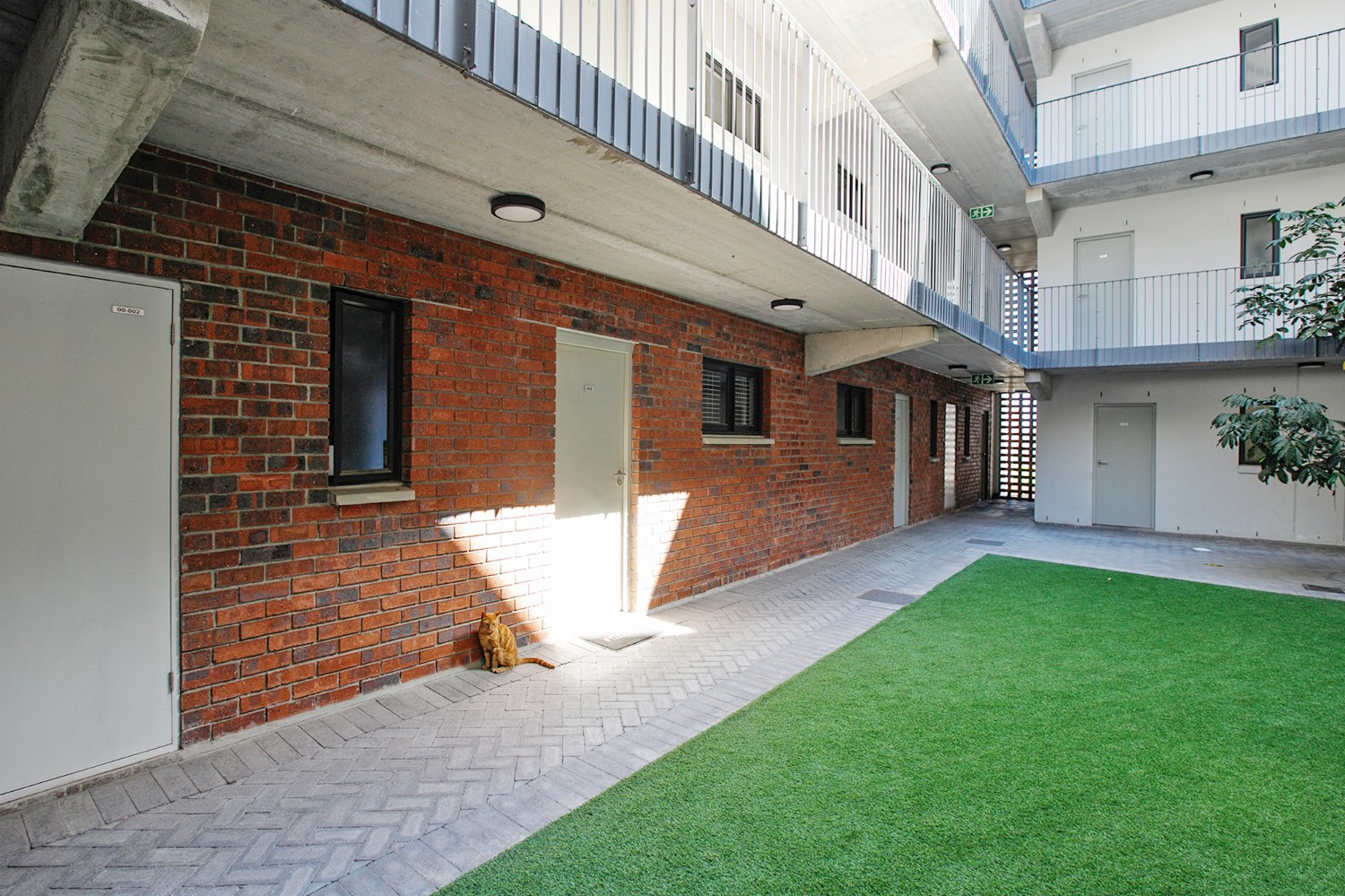 Step outside to a small private garden area, perfect for enjoying some fresh air or creating a cozy outdoor retreat.