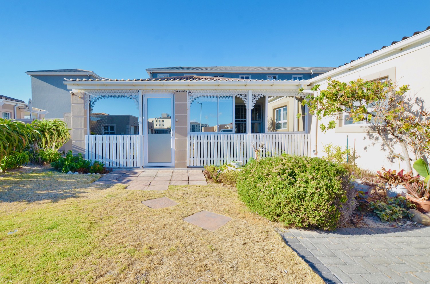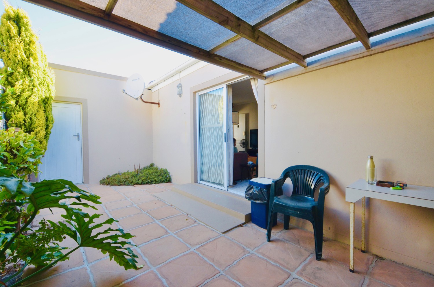 Step outside to a paved, partially covered outdoor area—perfect for morning coffee or evening sundowners with the sea breeze.