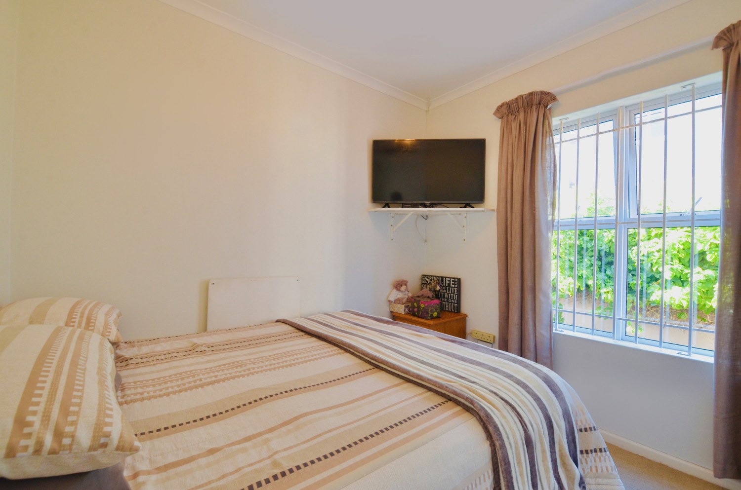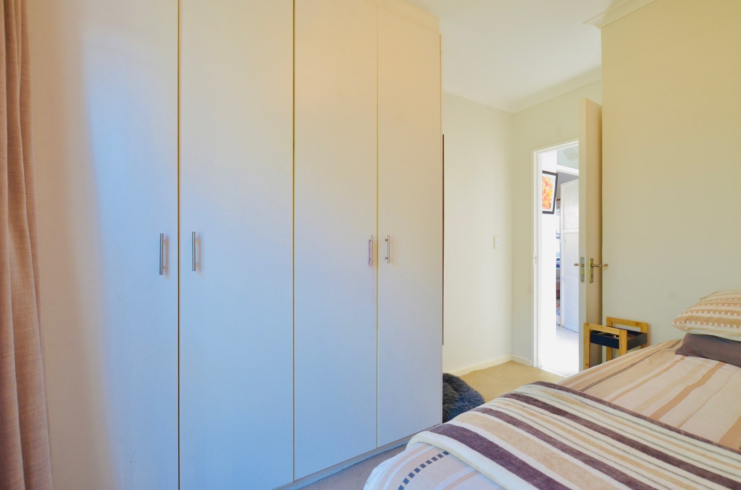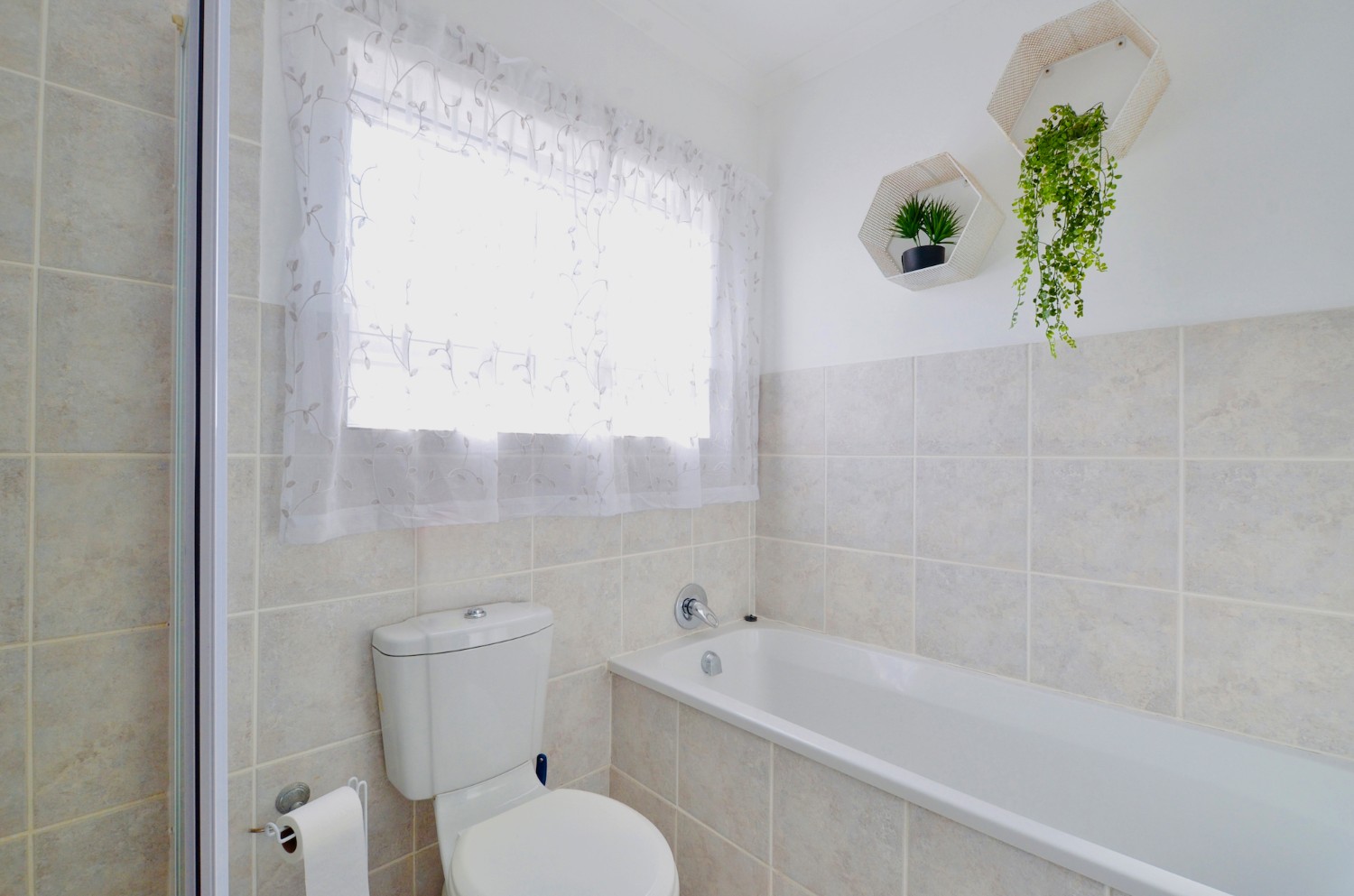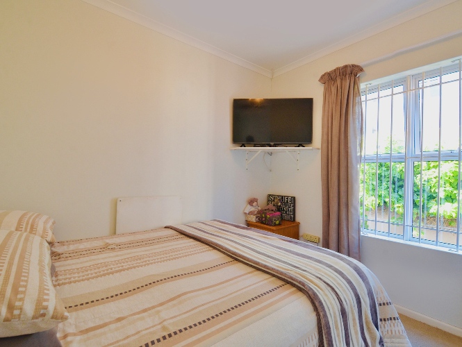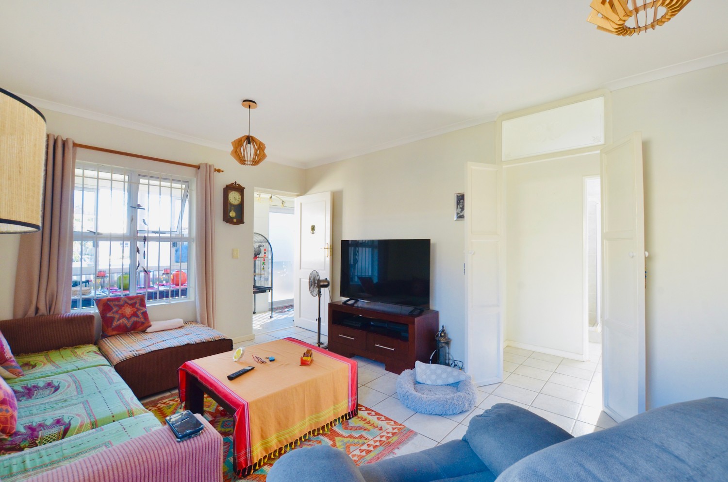 The open-plan living area flows effortlessly into the kitchen, making it ideal for relaxed living and entertaining. Both bedrooms include built-in cupboards, and the full bathroom is neatly finished with a bath and shower.