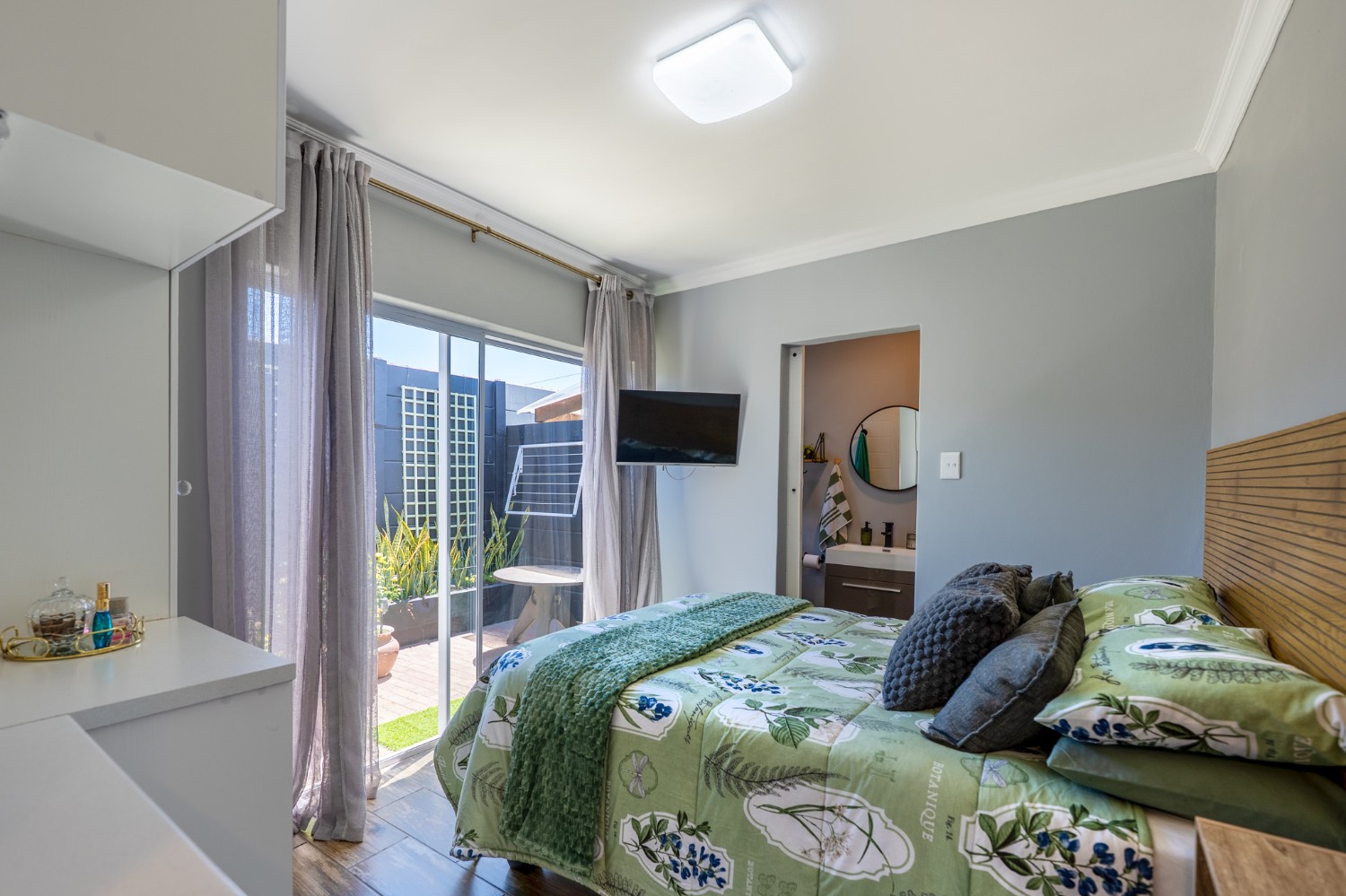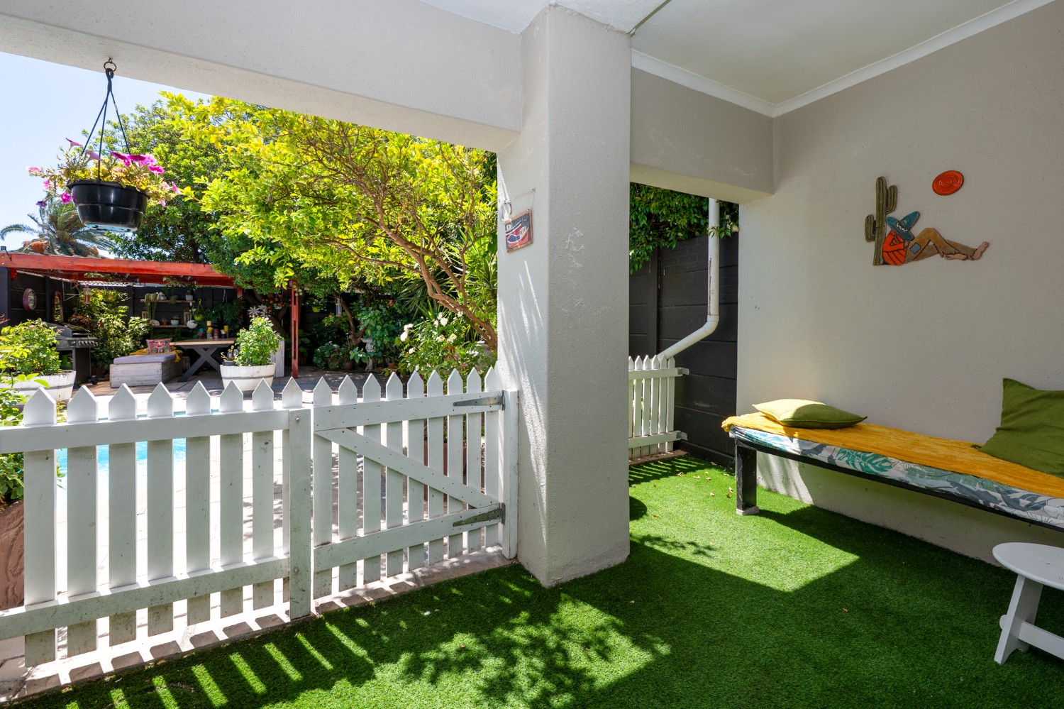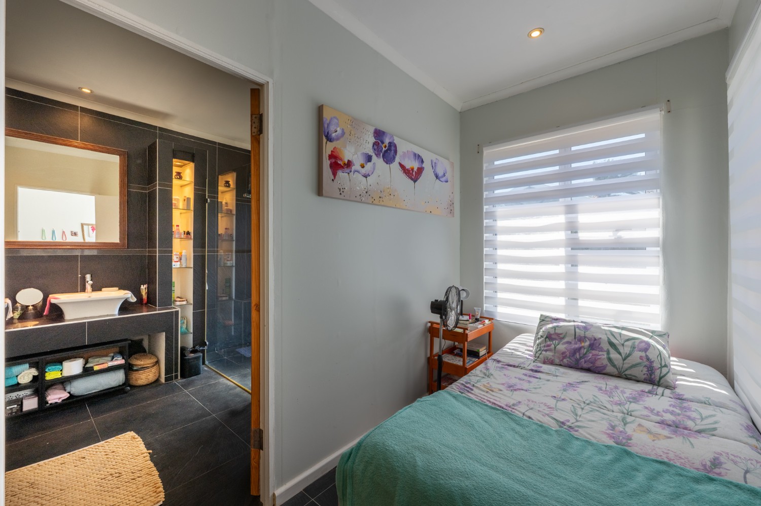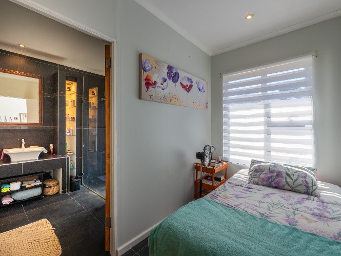 The first section of the home comprises a spacious bedroom with a tastefully tiled en-suite bathroom offering a shower, basin and toilet. Sliding doors lead from the bedroom to a private courtyard, and a guest toilet adds further convenience.