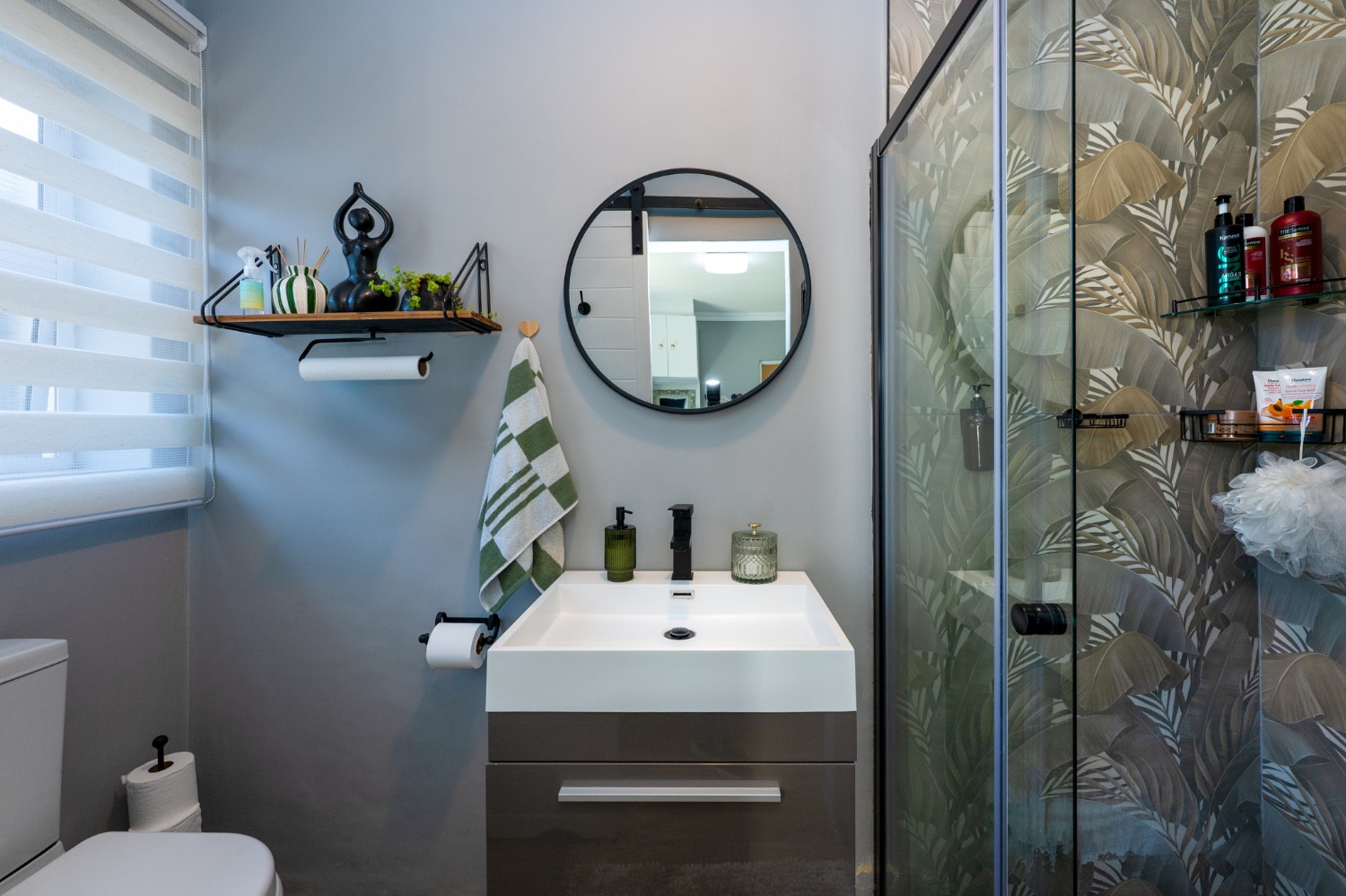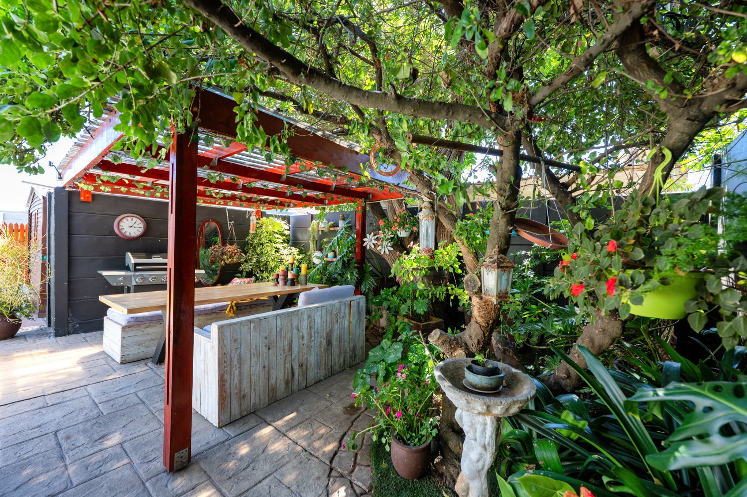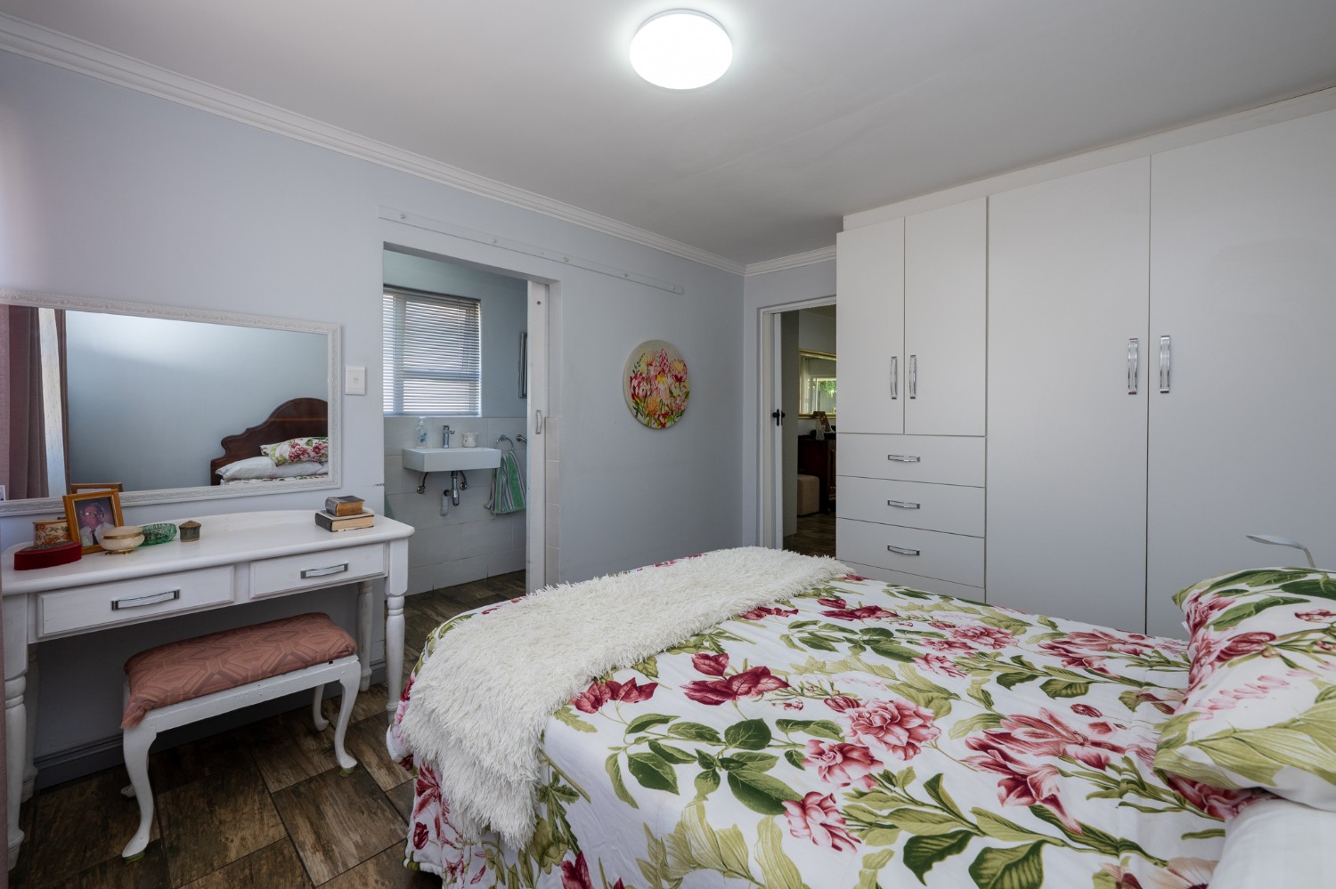 The first section of the home comprises a spacious bedroom with a tastefully tiled en-suite bathroom offering a shower, basin and toilet. Sliding doors lead from the bedroom to a private courtyard, and a guest toilet adds further convenience.