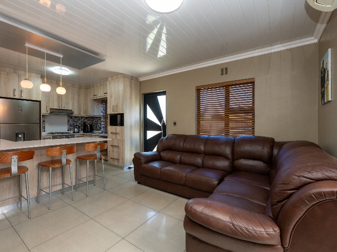 The automated, tandem garage doubles as an indoor braai area, ideal for entertaining, and the property offers secure parking for additional vehicles. Adding exceptional value is the 1-bedroom flatlet, complete with its own lounge, a fully fitted kitchen with an under-counter oven and hob and a bathroom, perfect for extended family or rental income. With a low-maintenance yard and secure surroundings, this home combines comfort, space and convenience.
