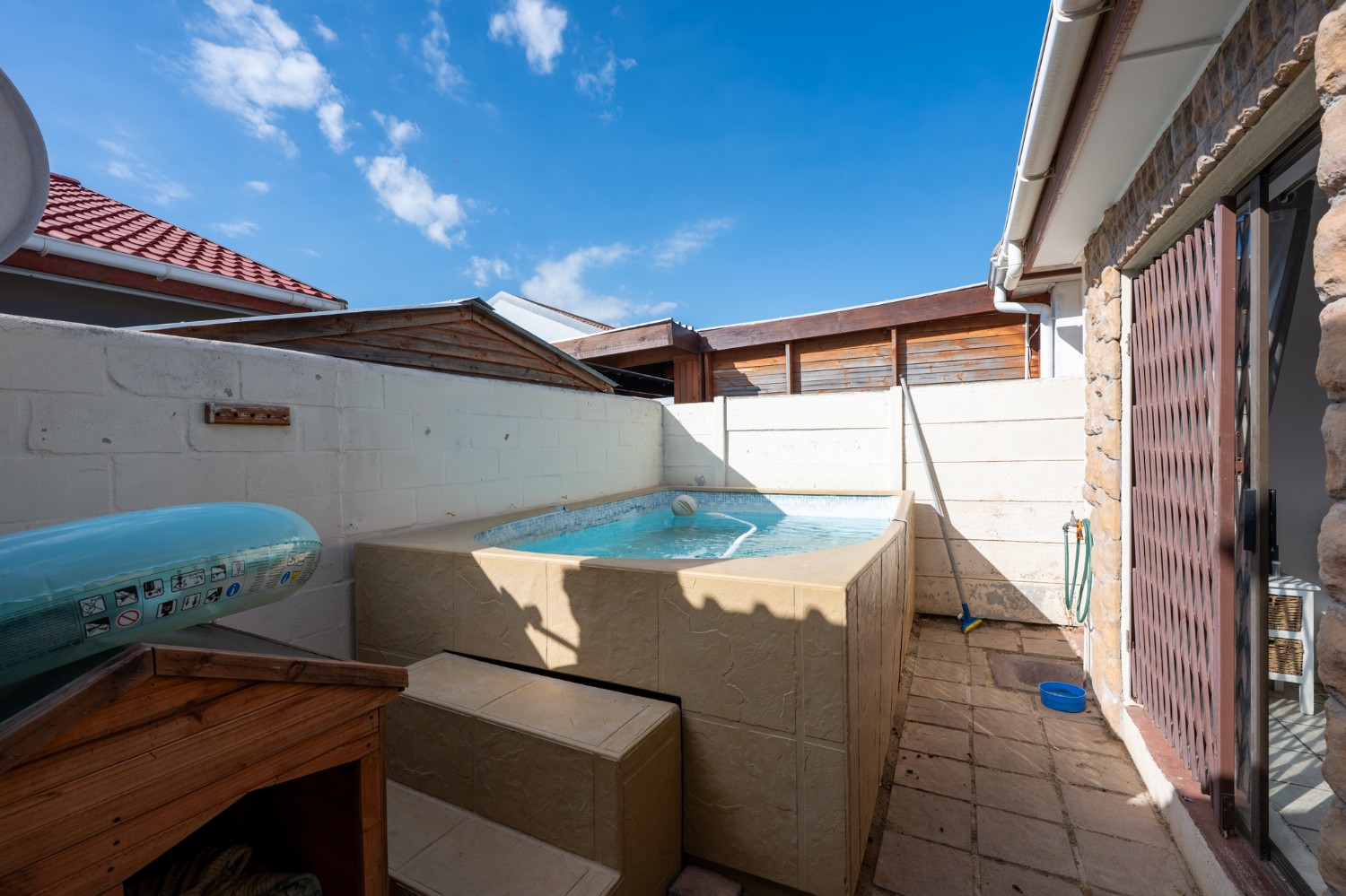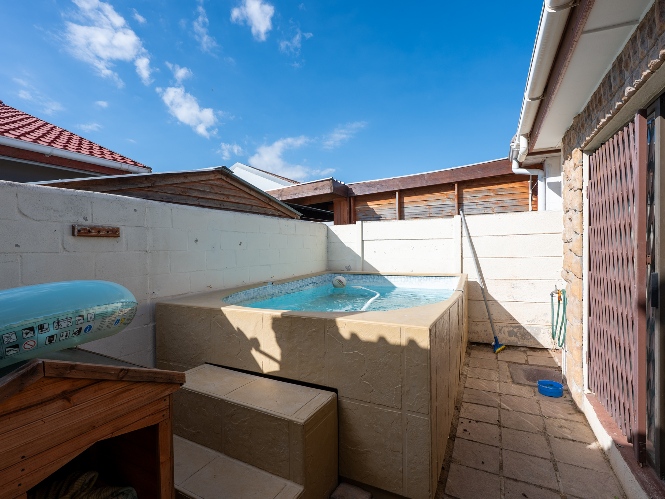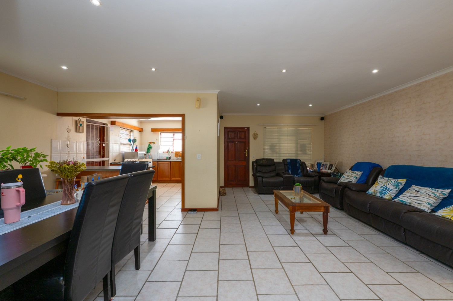The open-plan lounge and dining area flows seamlessly into a covered entertainment space, creating the perfect setting for relaxed gatherings. A convenient access door leads out to a private spa pool, ideal for enjoying warm summer days and effortless indoor-outdoor living.