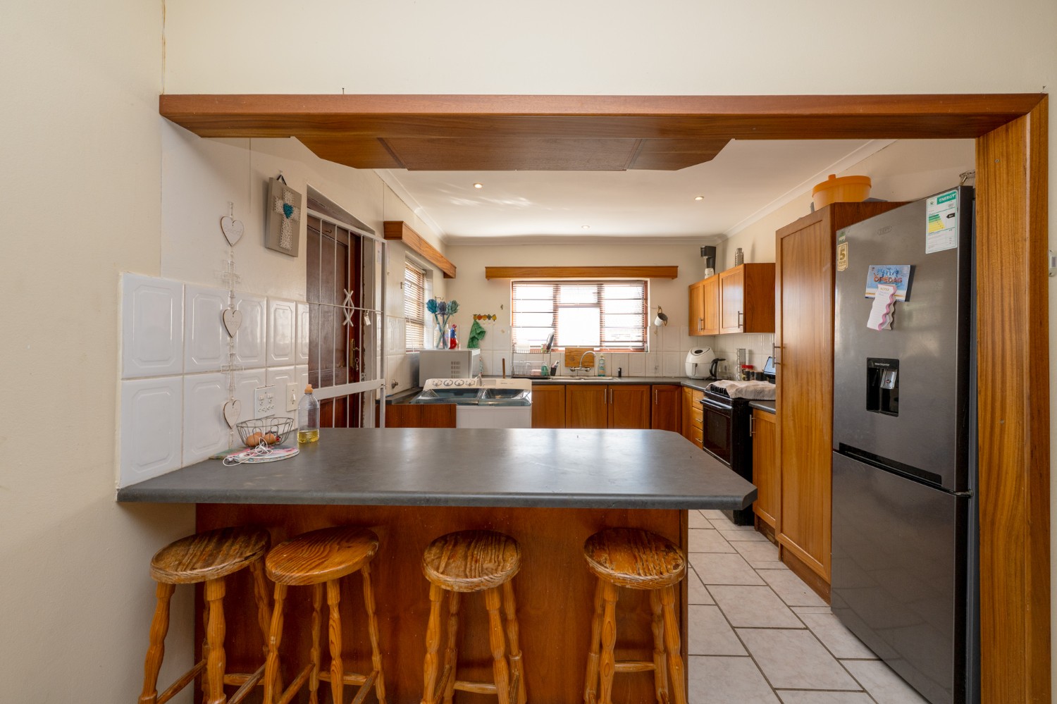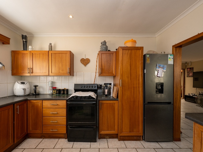 The spacious kitchen is well laid out and offers ample countertop space, making it perfect for preparing delicious family meals while staying connected to the heart of the home.