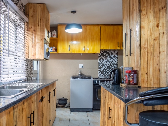 Upon arrival, you are welcomed into an open-plan lounge and kitchen area. The kitchen offers built-in cupboards with ample storage space, as well as a plumbed area for your washing machine.