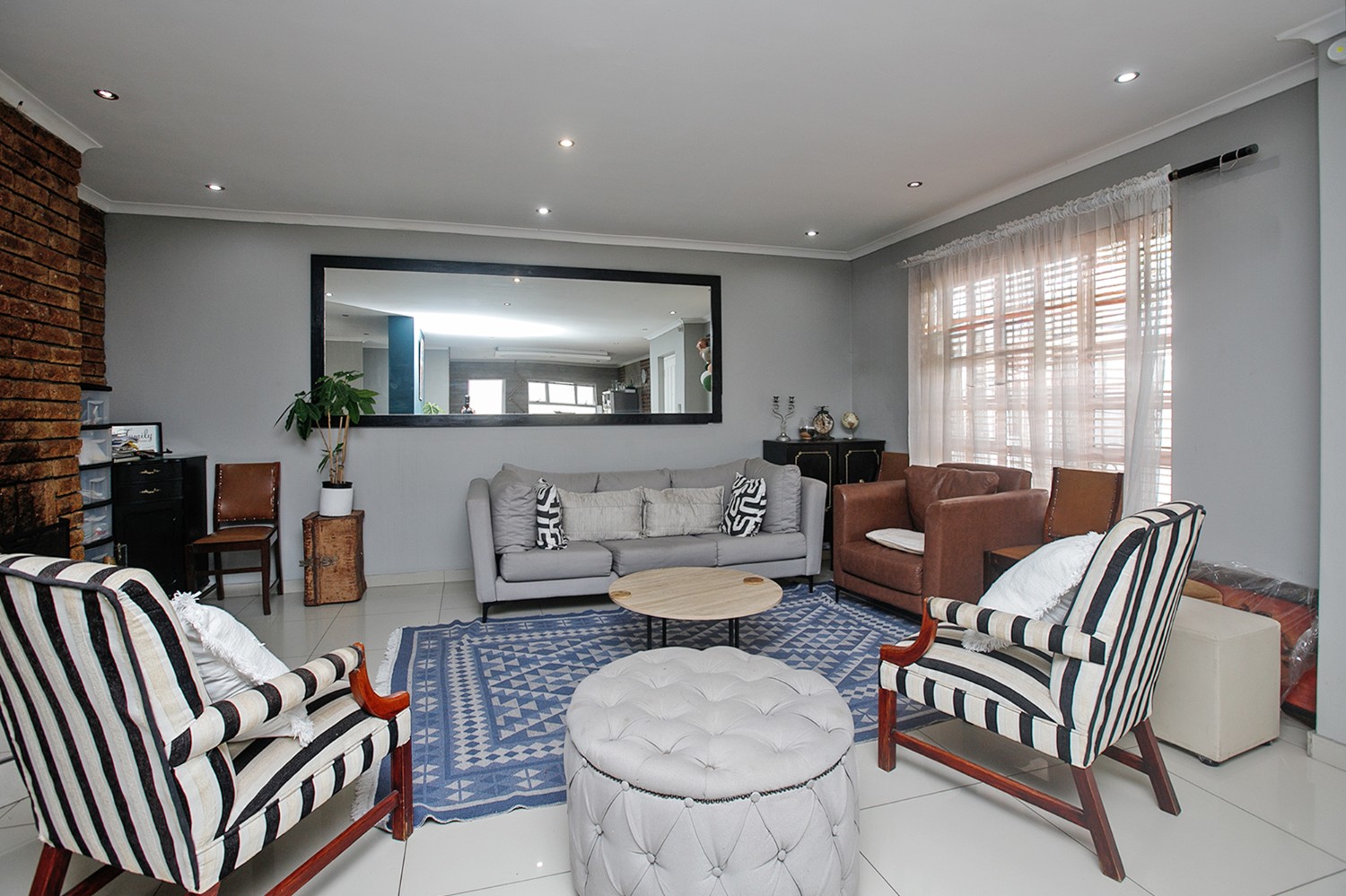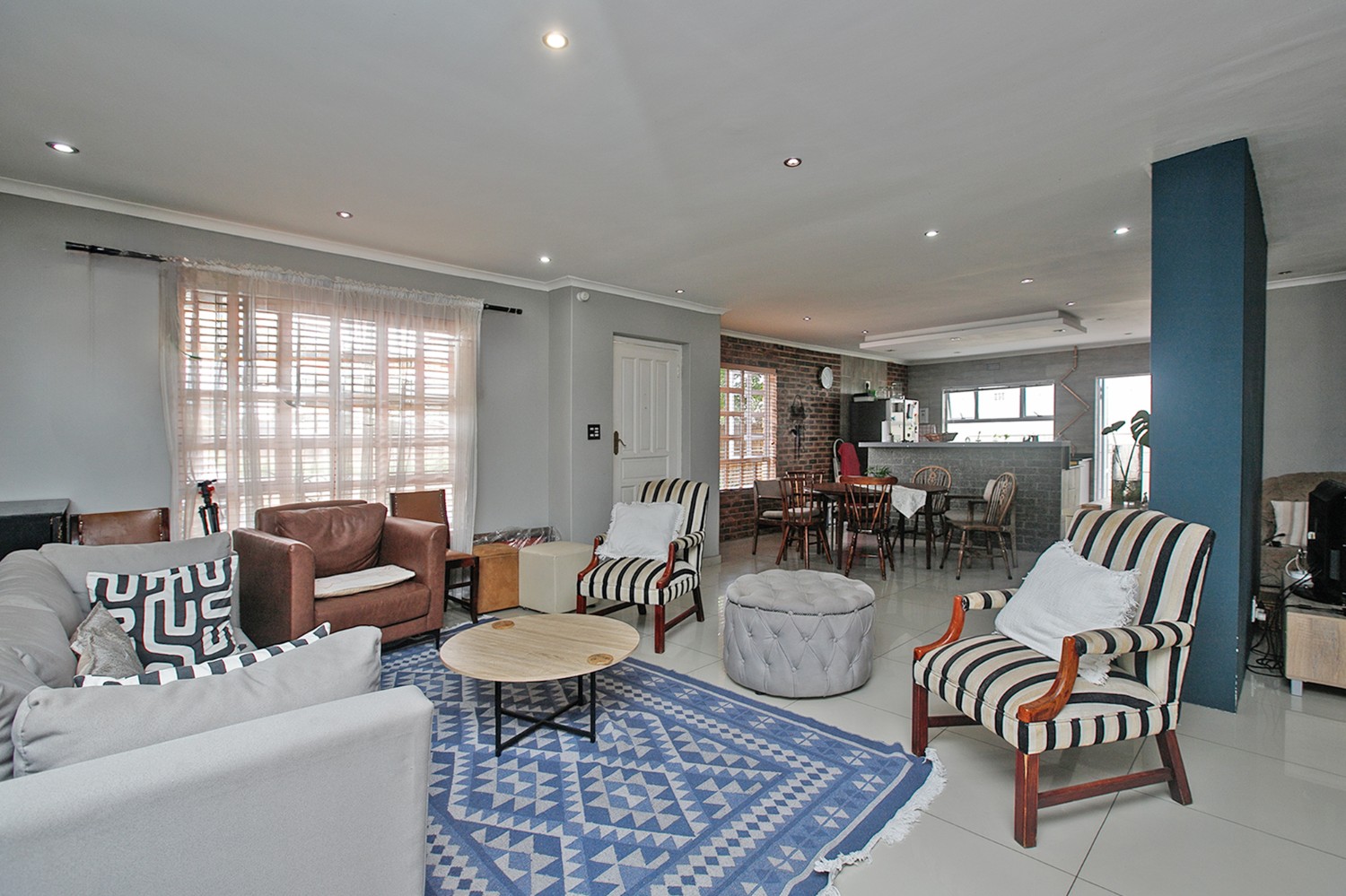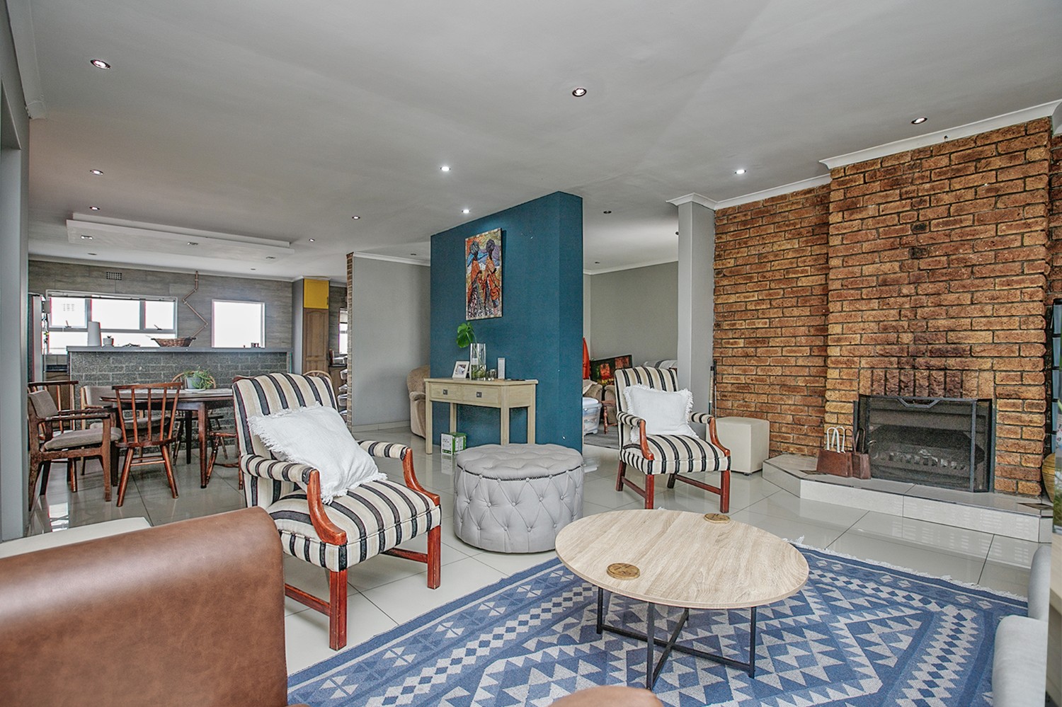 There is a lounge, dining room and a TV room with a fireplace