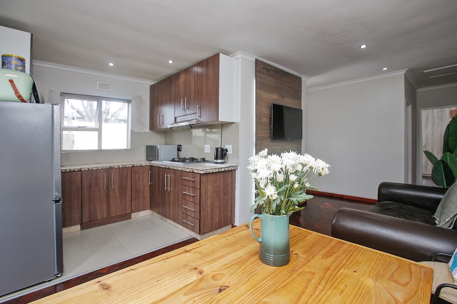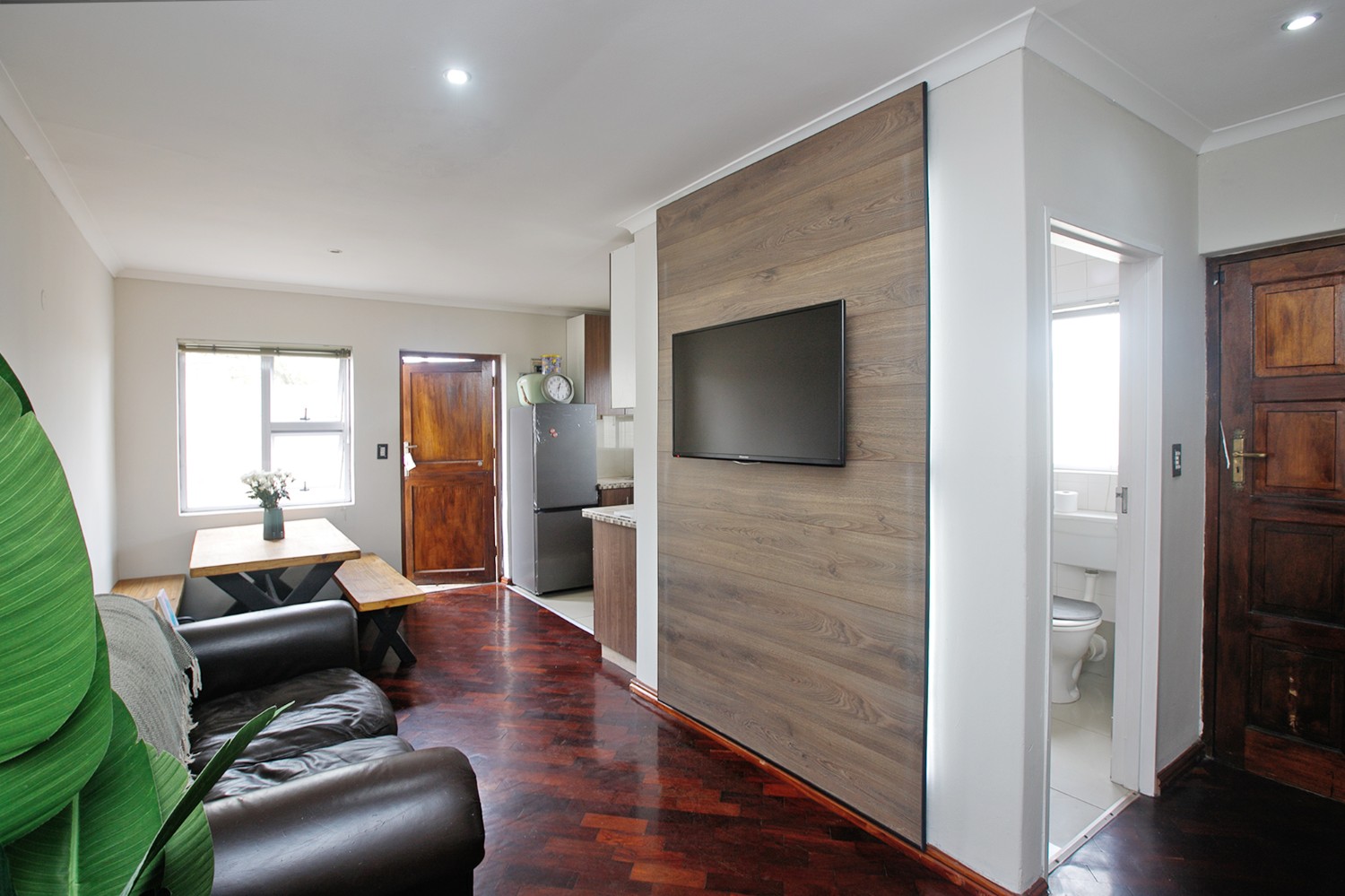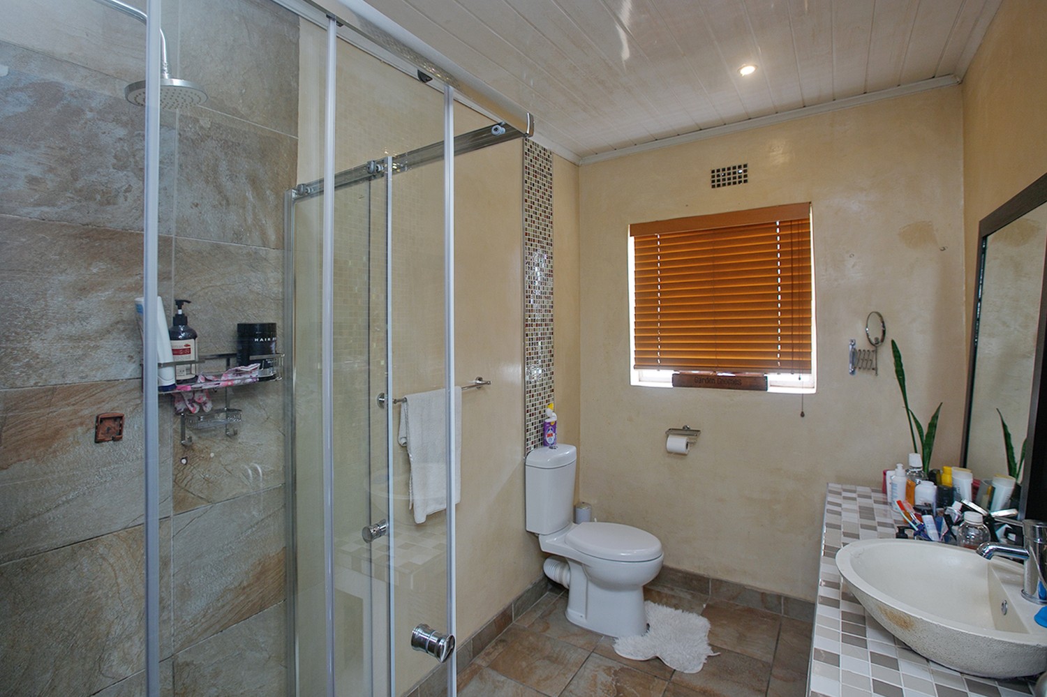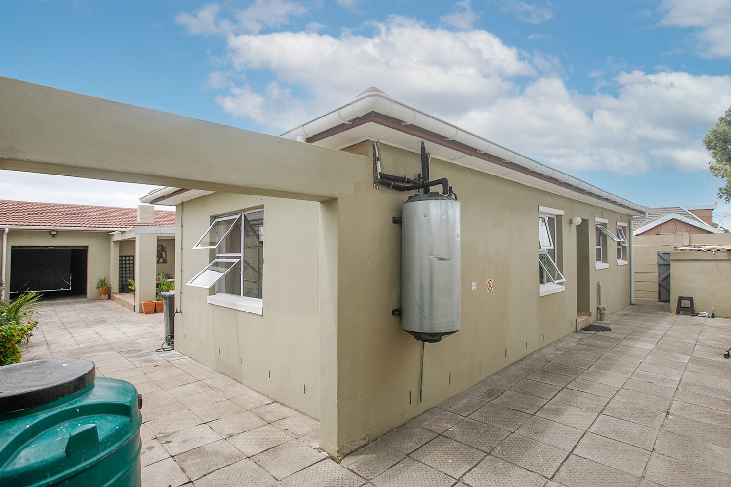 The Main house has three bedrooms, all with built-in cupboards, two bathrooms, one is ensuite.