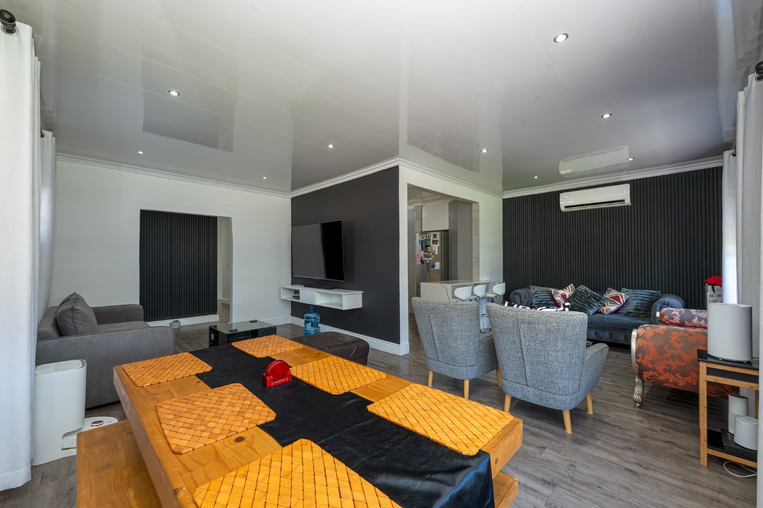Outside, the home continues to impress. The backyard boasts a welcoming outdoor seating area and a built-in braai, perfect for entertaining guests or enjoying relaxed weekends with family. High boundary walls provide excellent privacy and security. Additional features include a laundry room, garage, and carport parking, ensuring secure space for your vehicles.