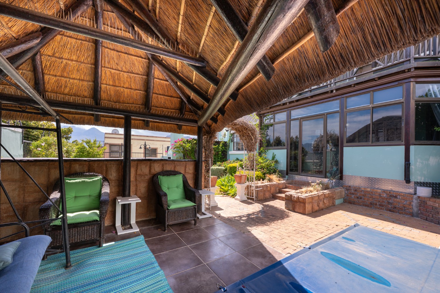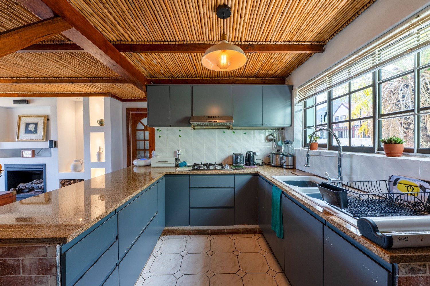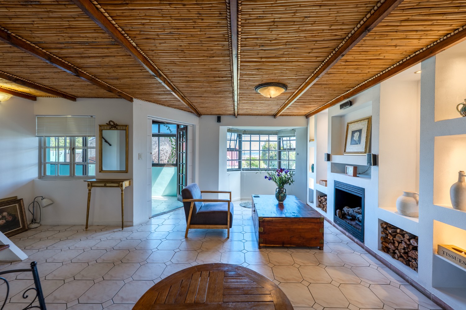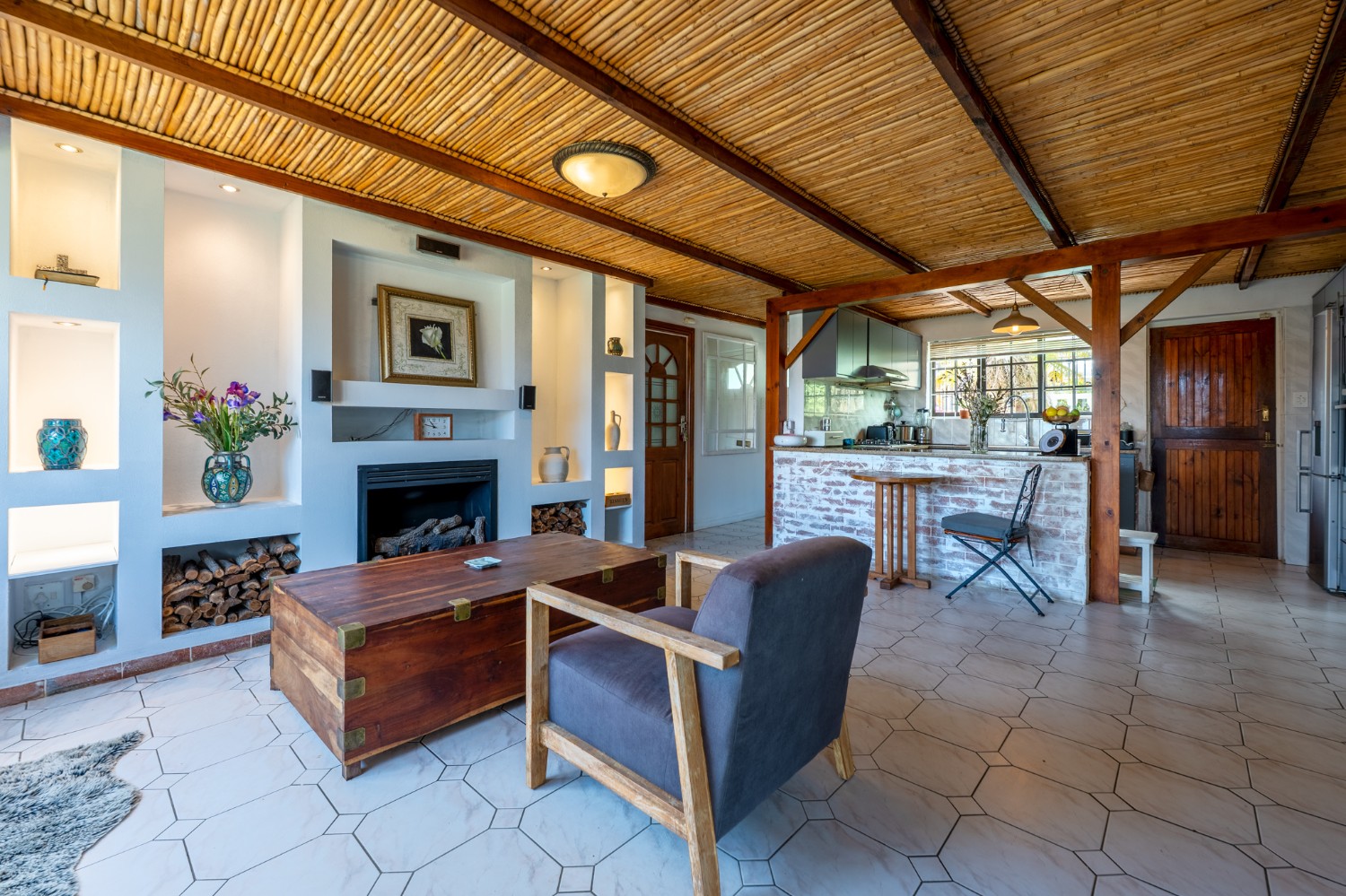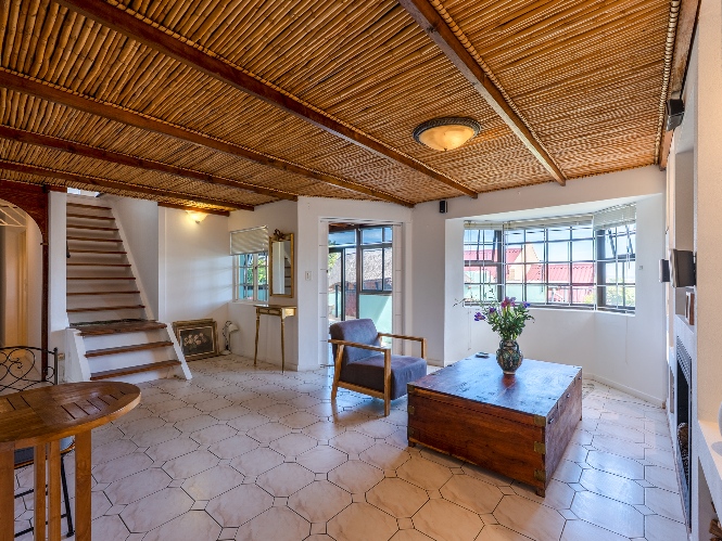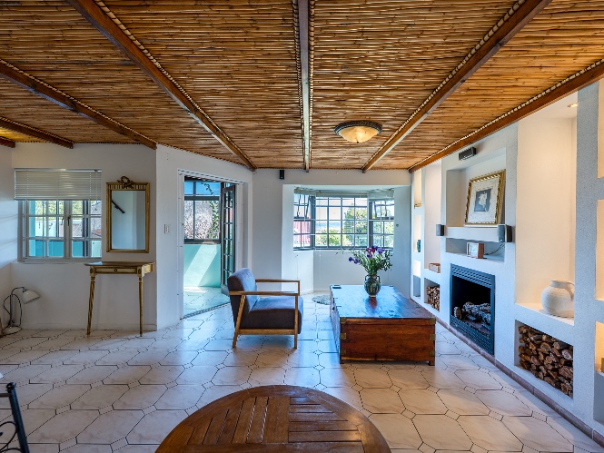 Burglar Bars, Safety GatesThe home showcases a distinctive, character-filled design that blends natural textures with relaxed contemporary living. Exposed timber beams and a beautifully detailed reed-style ceiling create warmth and visual interest, giving the living spaces a unique lodge-inspired feel.