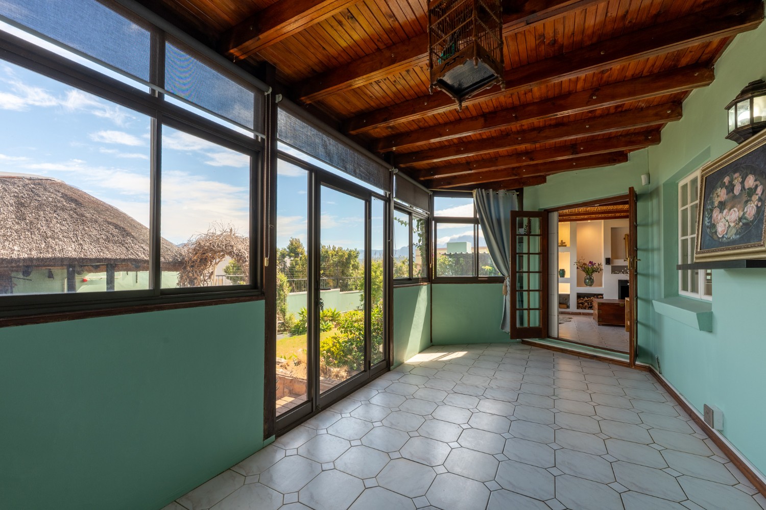 The outdoor spaces are equally impressive, featuring a lovely garden, swimming pool, and lapa, creating a private setting for entertaining or relaxing. A sunroom connects the home's interior to the garden, enhancing the indoor-outdoor flow.