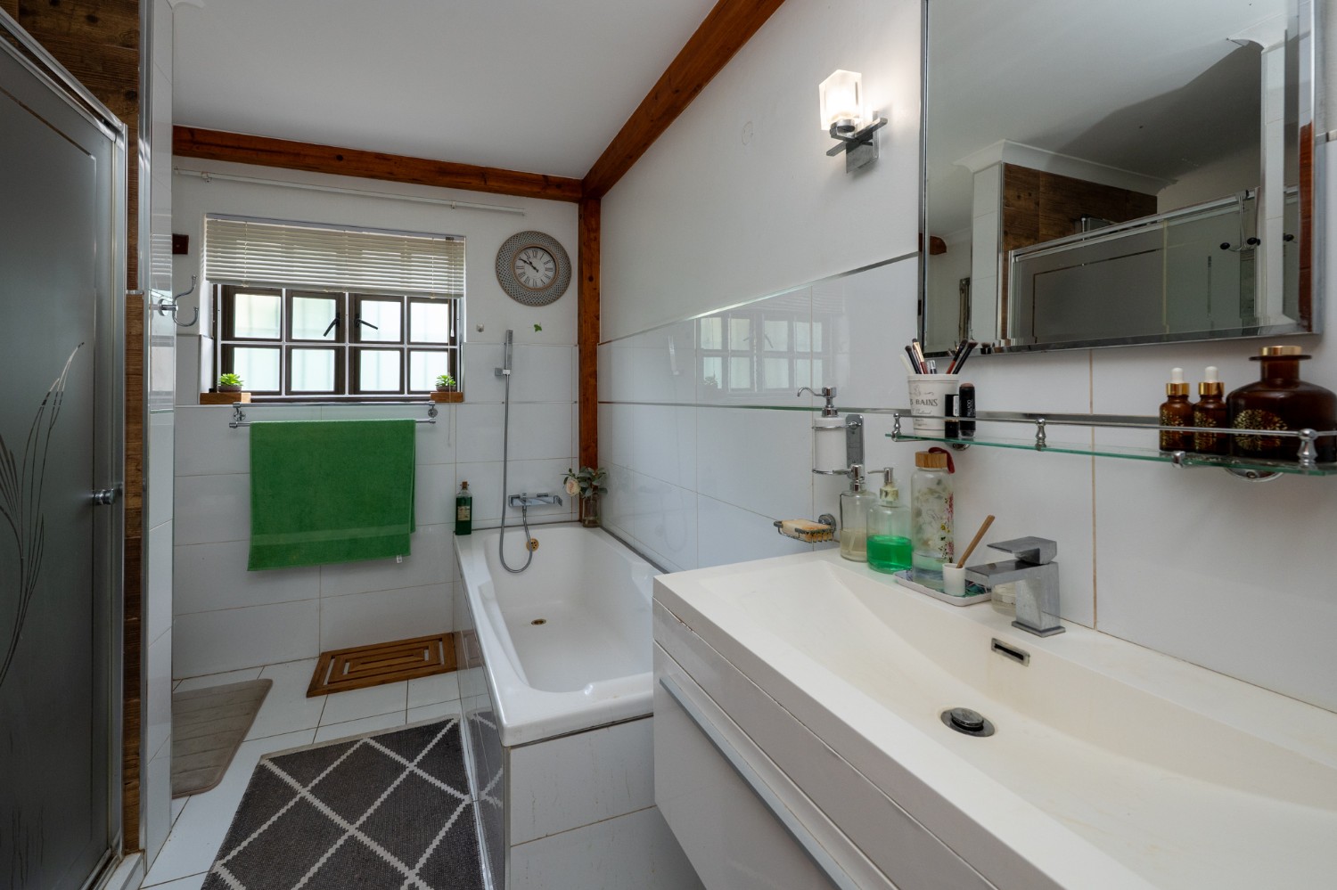 The main house features 2 well-sized bedrooms, a dedicated study, and a flexible layout that allows for a possible third and fourth bedroom should you decide to use the current upstairs flatlet. The home offers 2 bathrooms, plus an additional guest toilet for convenience.