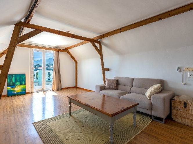 Upstairs, the home opens onto a beautiful balcony with breathtaking views — the perfect spot to enjoy morning coffee or sunset evenings. A second balcony leads off a fourth open-plan room, which can be used as an additional living area, studio, or work-from-home space, offering excellent flexibility.