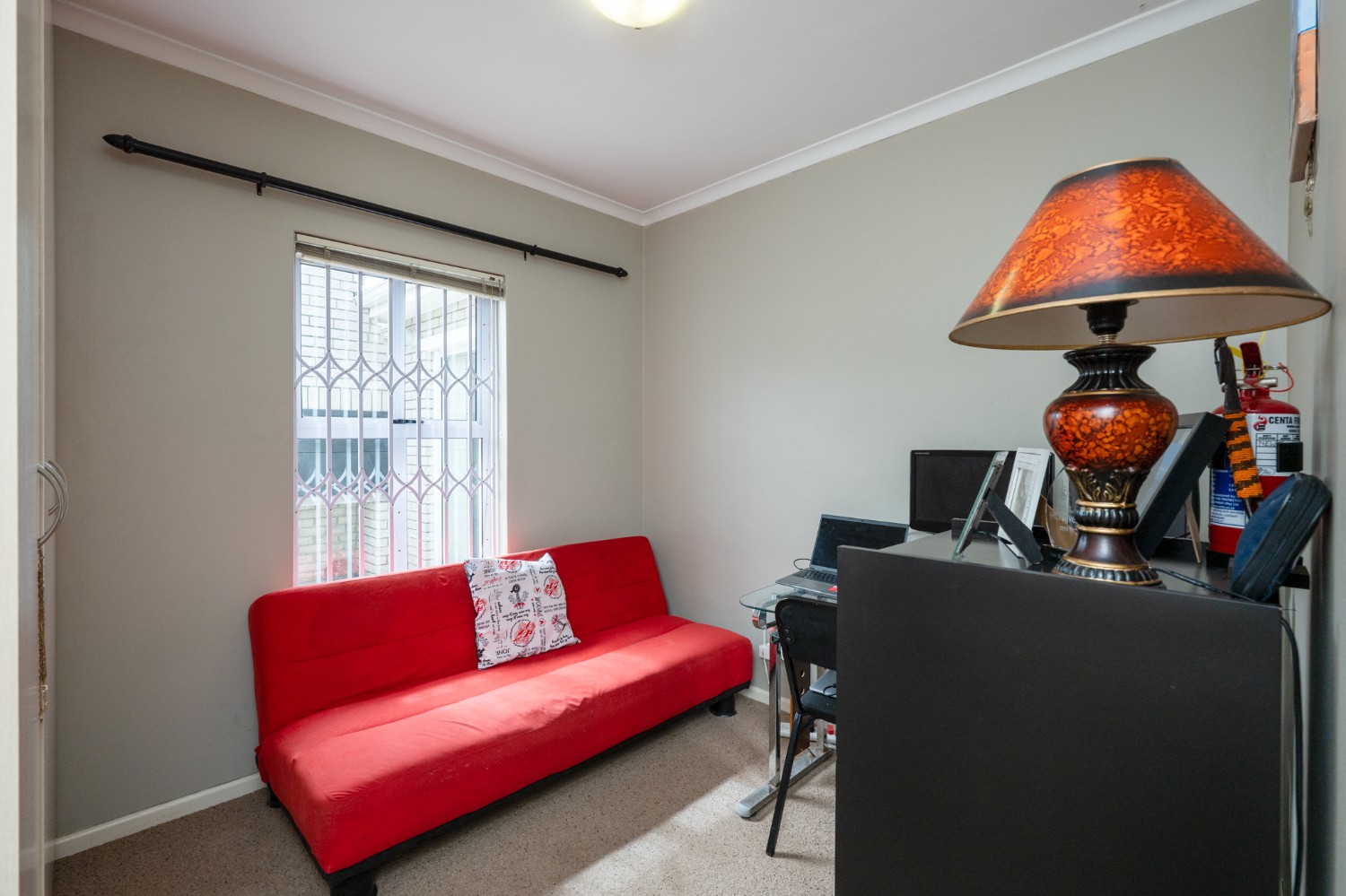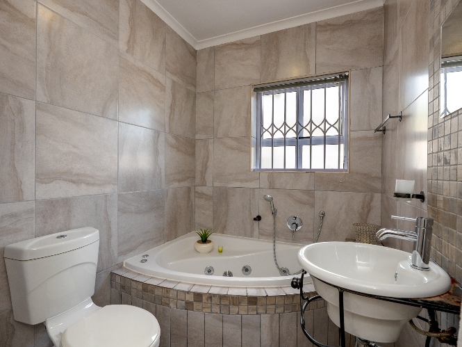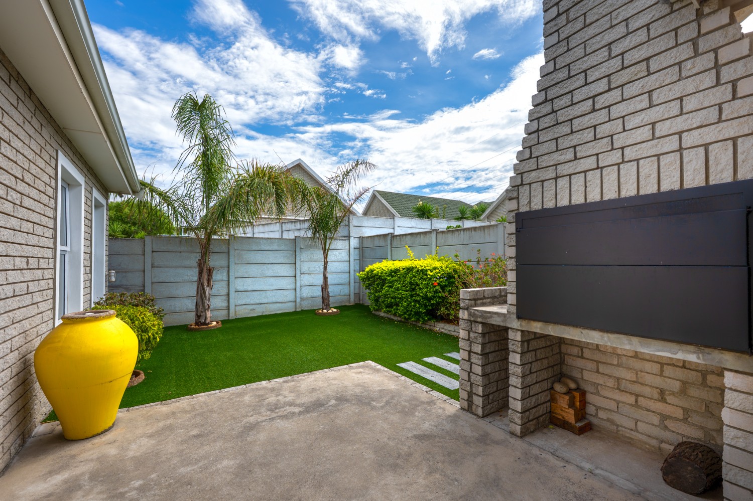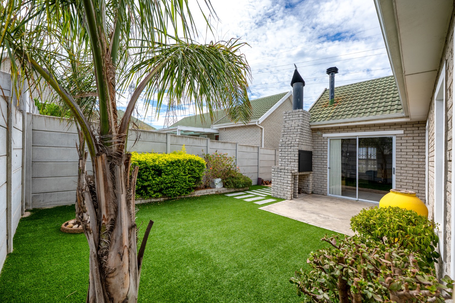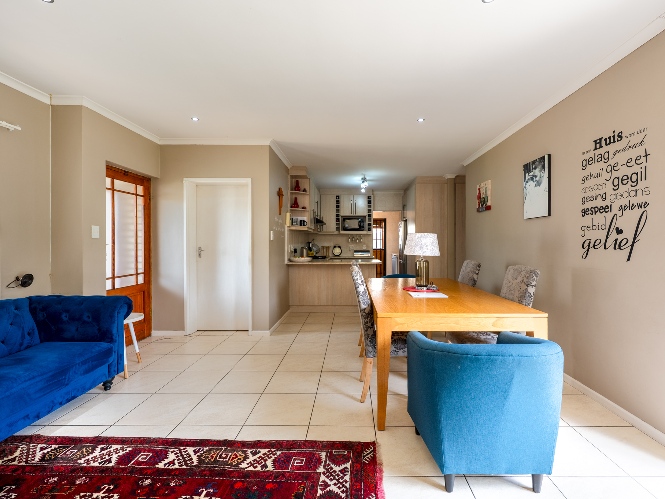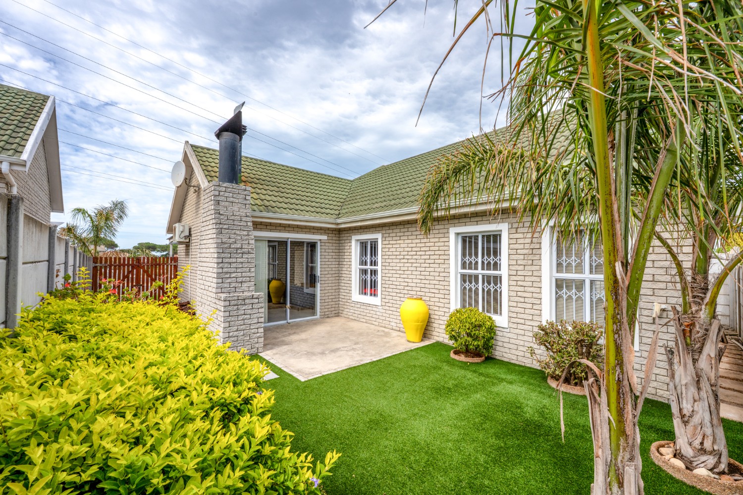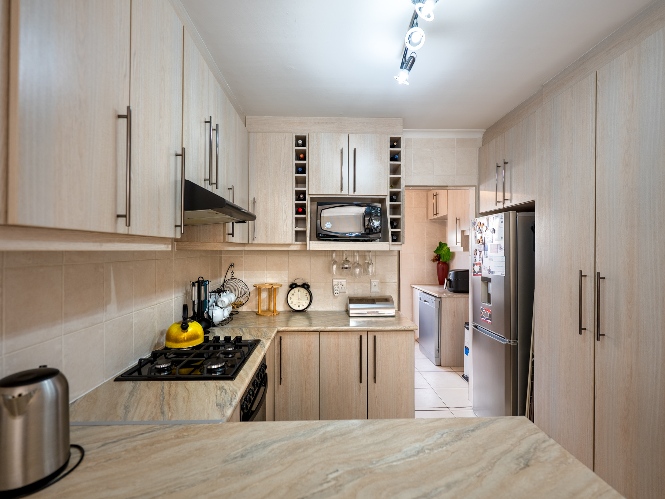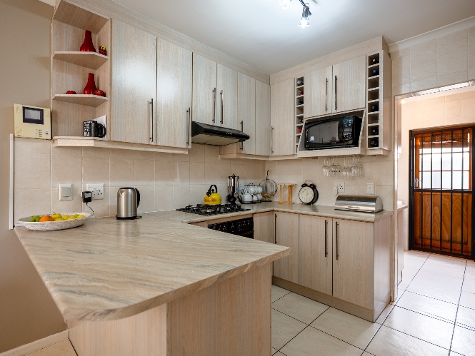 Outside, the low-maintenance garden with astroturf provides a neat and private space without the upkeep. The home also includes a double garage, with additional parking in front for two vehicles. This move-in-ready home combines modern finishes, practical features, and inviting living spaces. Additional features included armed response, security guard, and cellphone-enabled alarm at an additional fee with SJC.