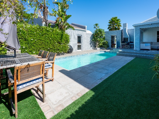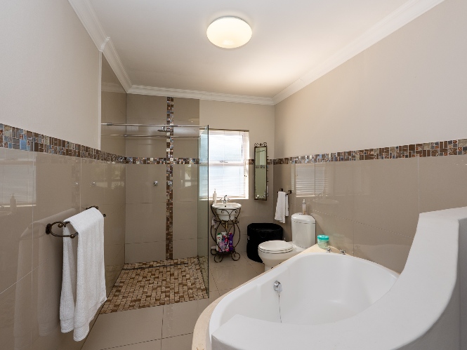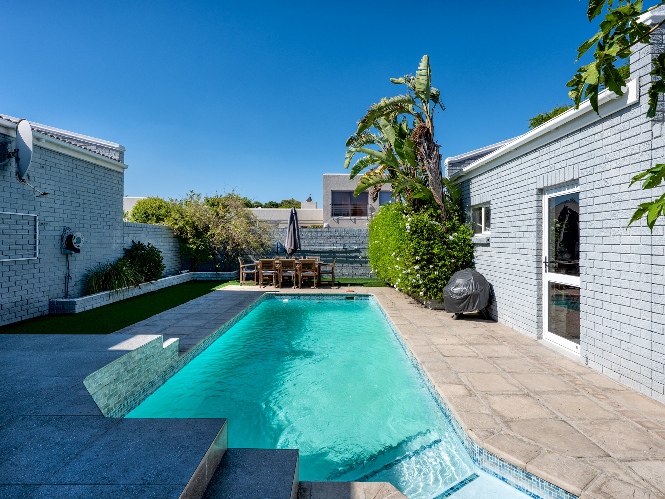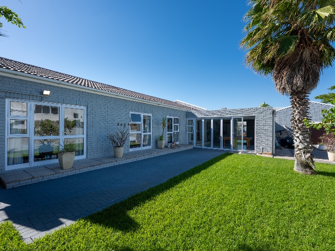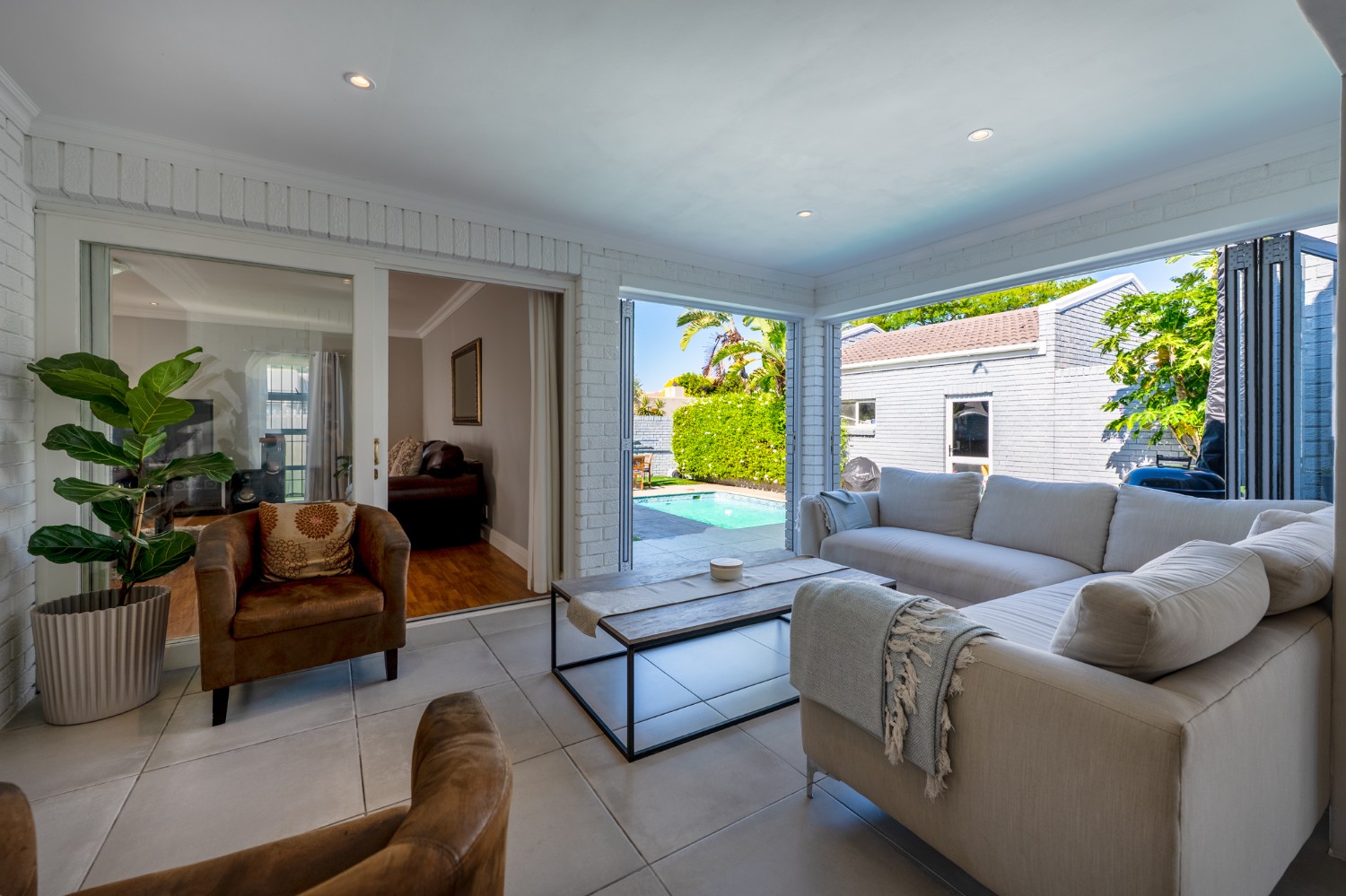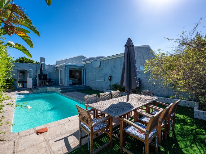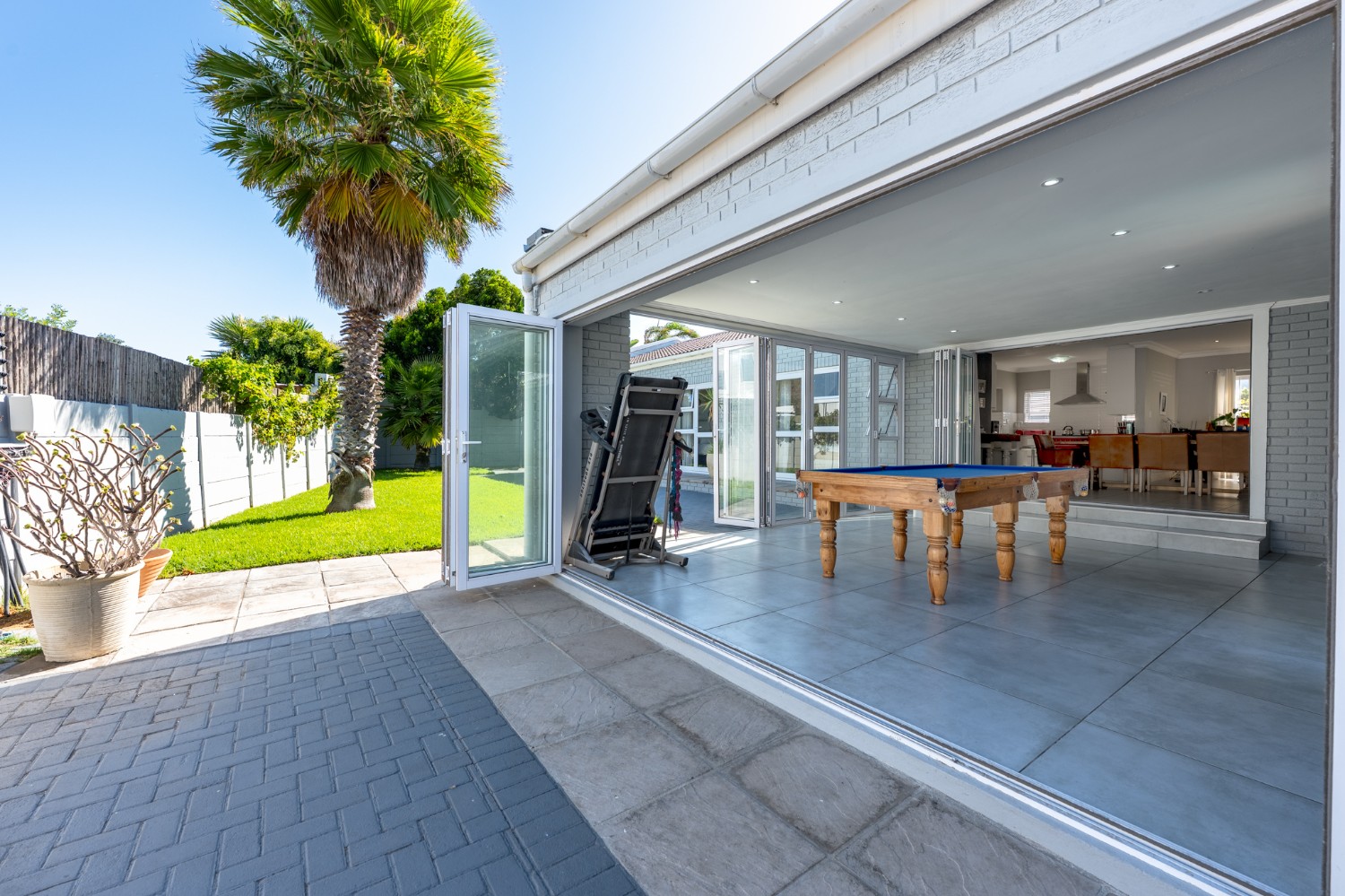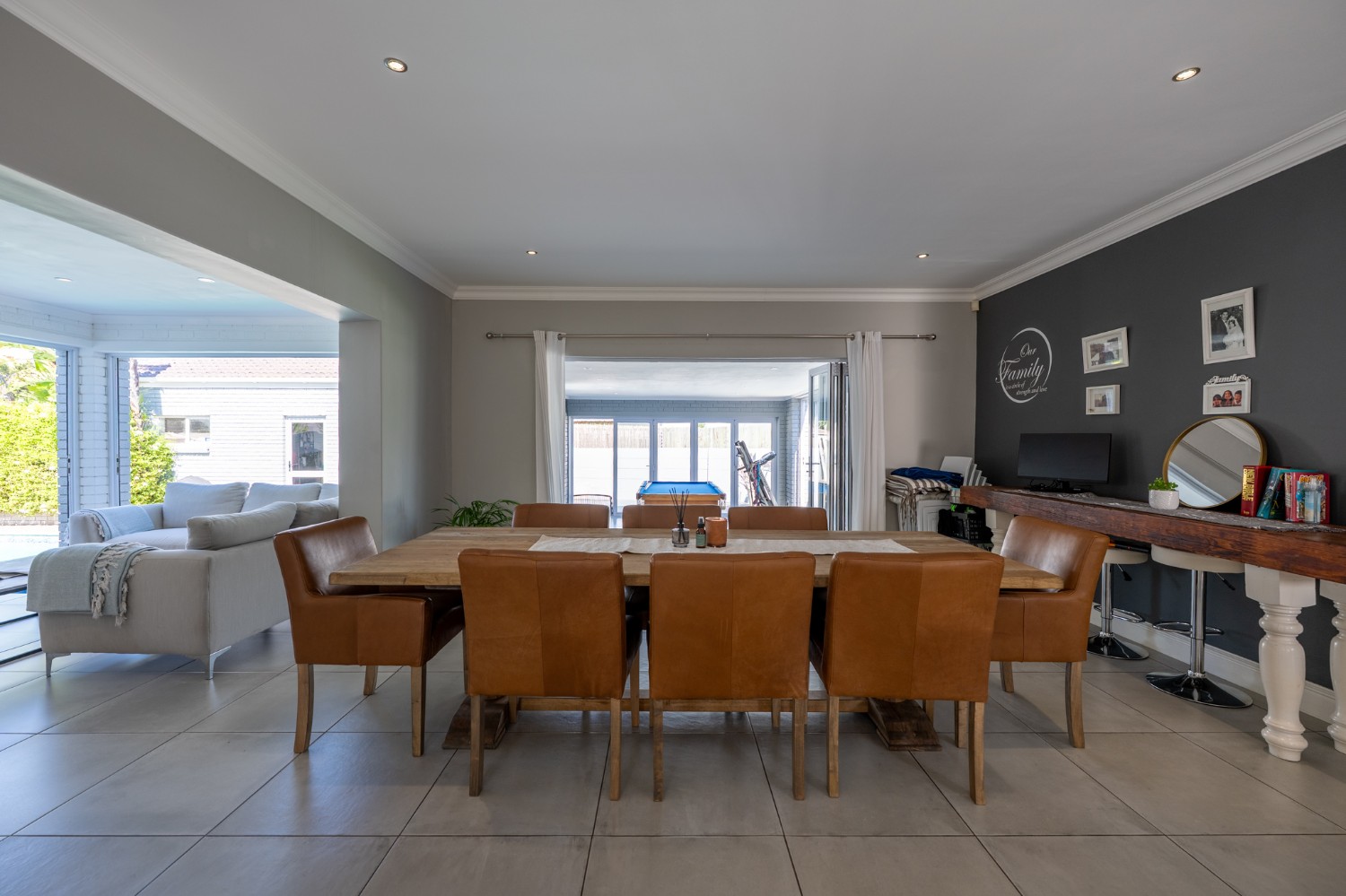 A standout feature is the enclosed entertainment area, complete with a dual-sided built-in braai and stacking doors, creating the perfect connection to the landscaped garden and sparkling pool—a true entertainer’s delight.