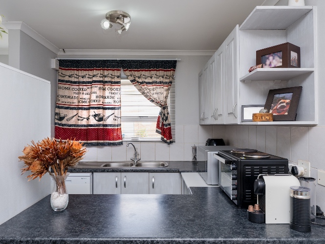 Step inside to an inviting open-plan lounge, dining area and kitchen, designed for easy living. The lounge features neat tiled flooring and provides ample space to comfortably accommodate both your living room suite and a dining room table. A sliding door leads directly to the spacious backyard, creating a seamless indoor-outdoor flow, ideal for entertaining and relaxing. The charming kitchen is fitted with light wood cupboards, offering plenty of storage space, one plumbing point for a washing machine and a dedicated space for a fridge.