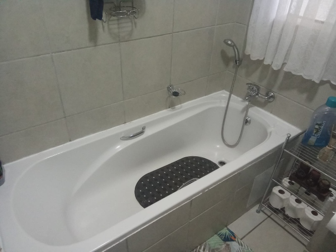 Both bedrooms are well-sized and offer comfortable accommodation with ample space and built-in cupboards. The bathroom is neatly appointed and includes a bathtub, basin, and toilet.