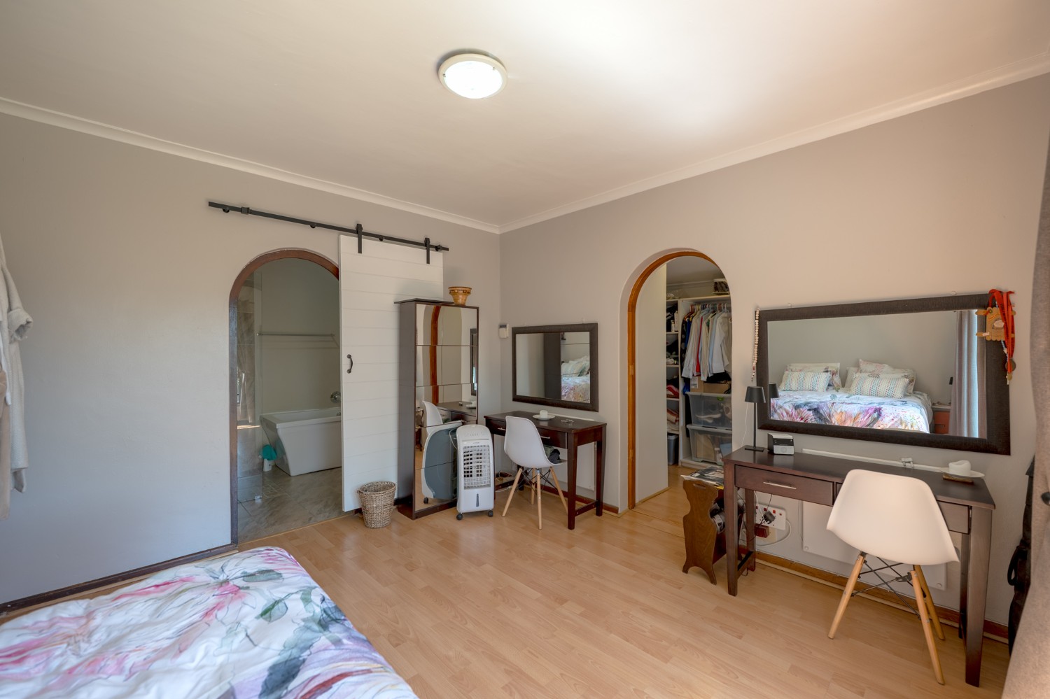 Parking and workspace options are a standout feature of this property. In addition to a double garage with a workshop corner, the property offers parking space for 8 to 10 vehicles in front of the garage, including carport parking. A tandem garage conversion provides valuable extra space currently utilised as a workshop and an office with a bathroom, perfect for working from home or a possible flatlet conversion.