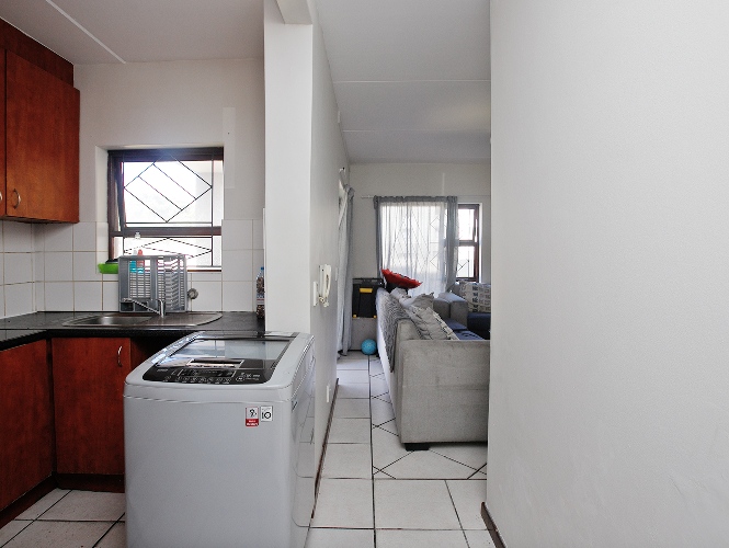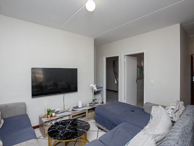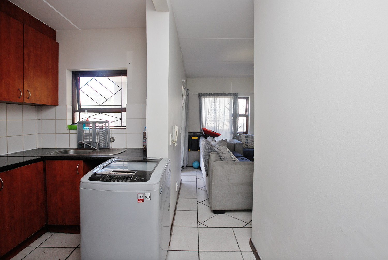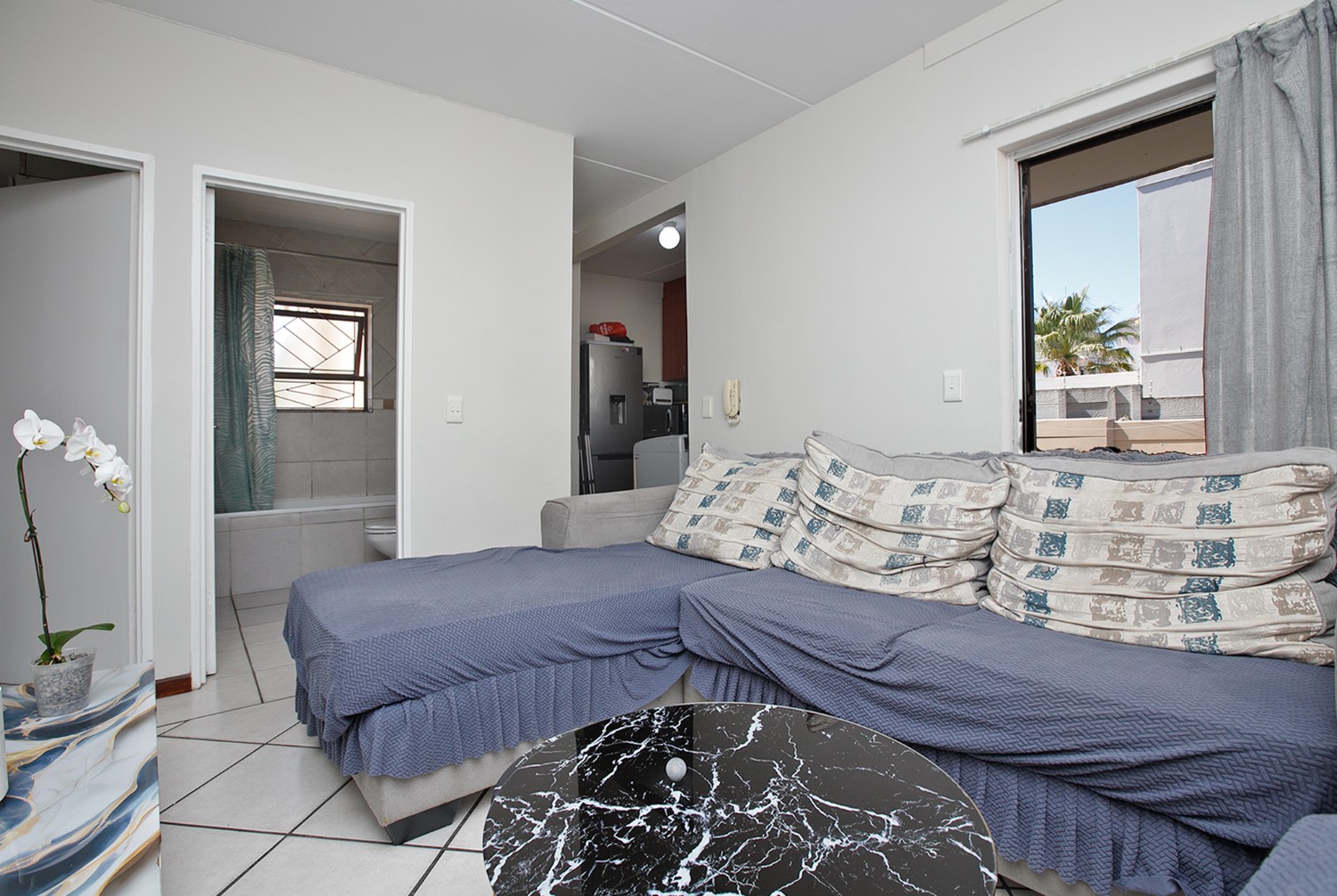 The living area flows into a functional kitchen, creating a practical and easy-to-maintain layout suited to modern living.