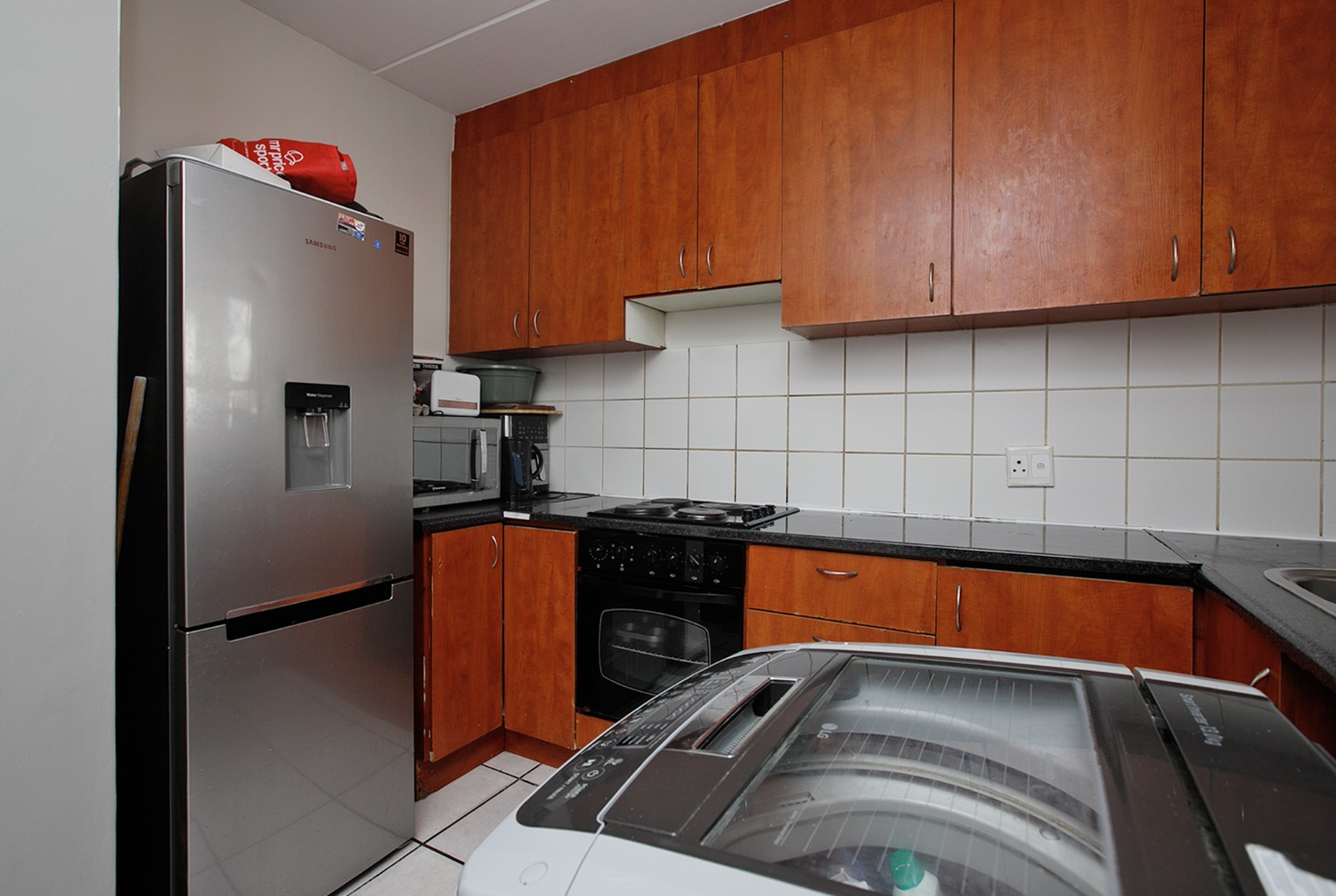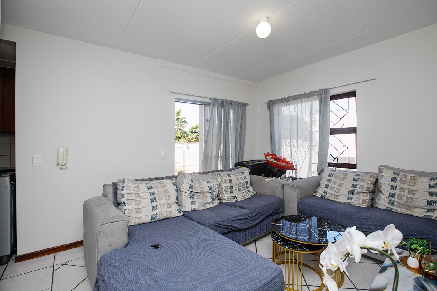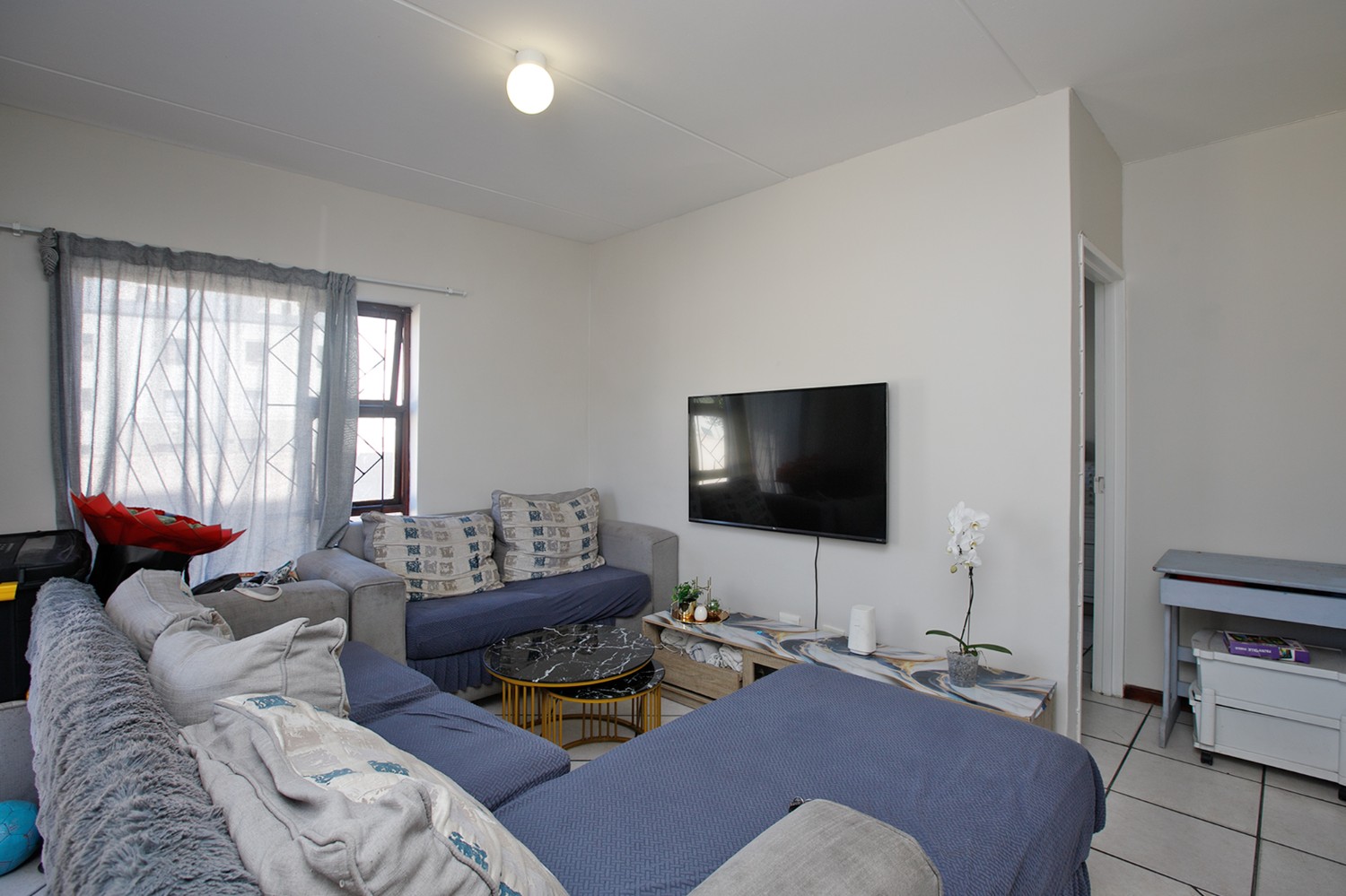 The living area flows into a functional kitchen, creating a practical and easy-to-maintain layout suited to modern living.