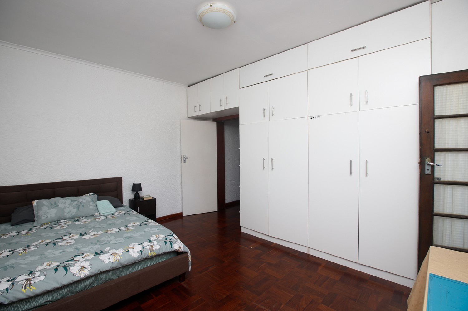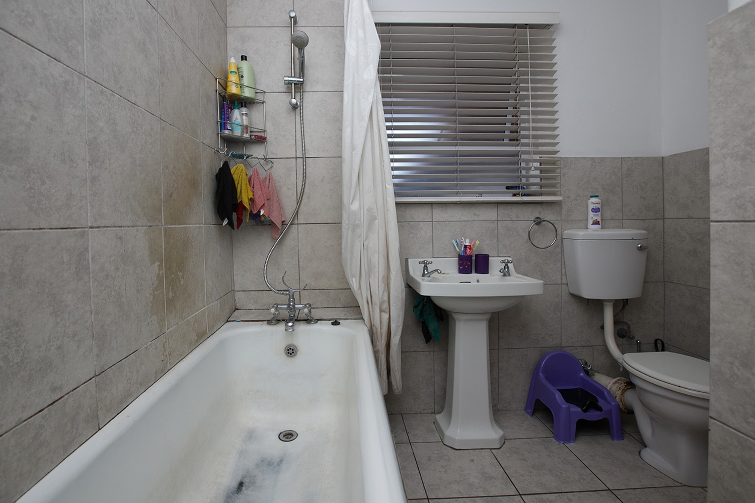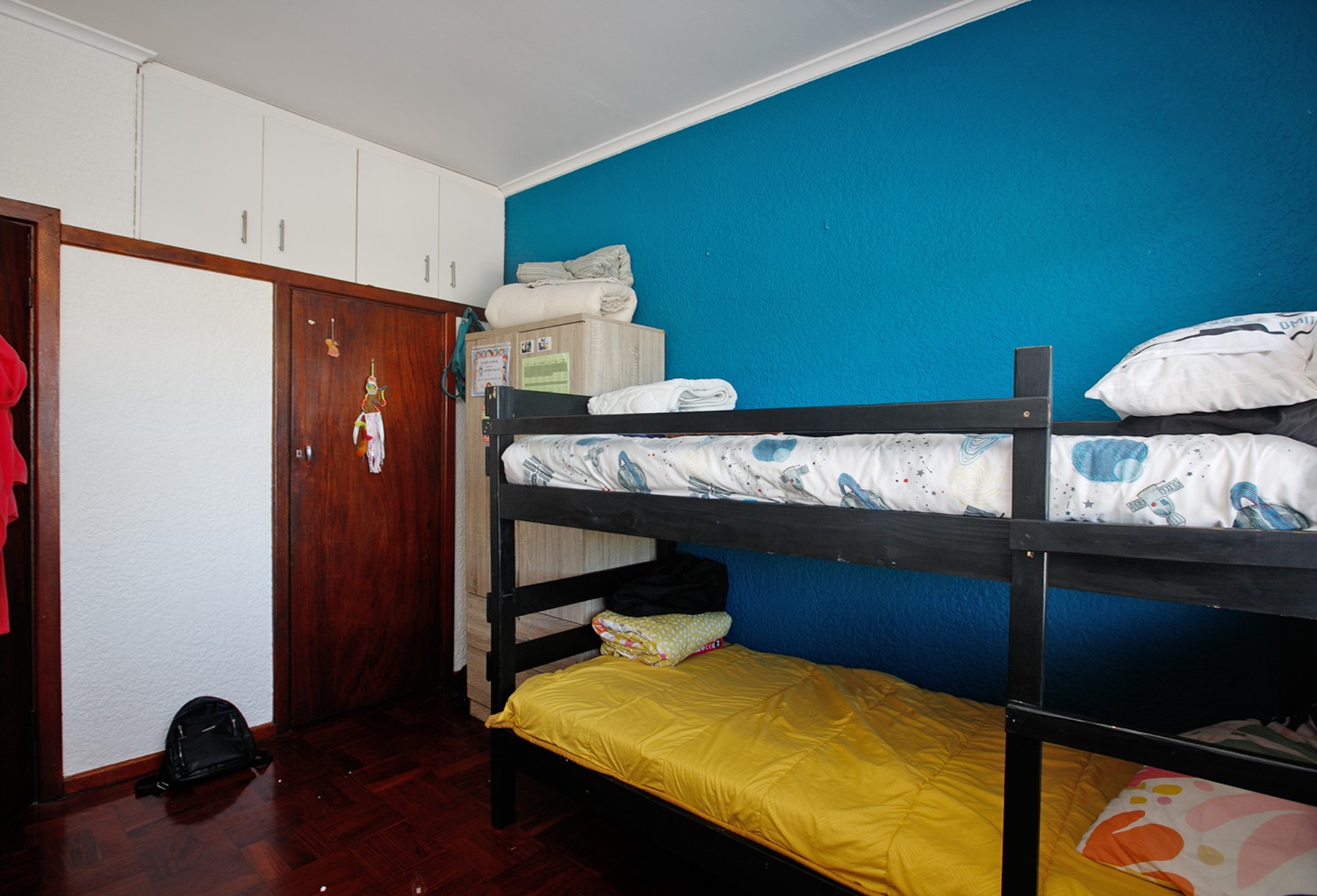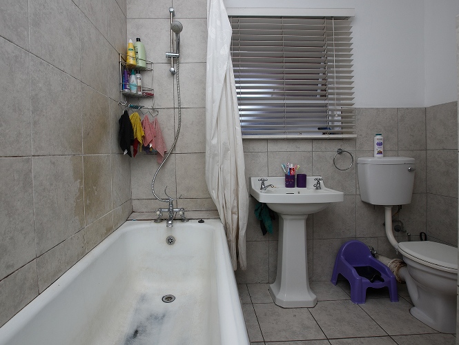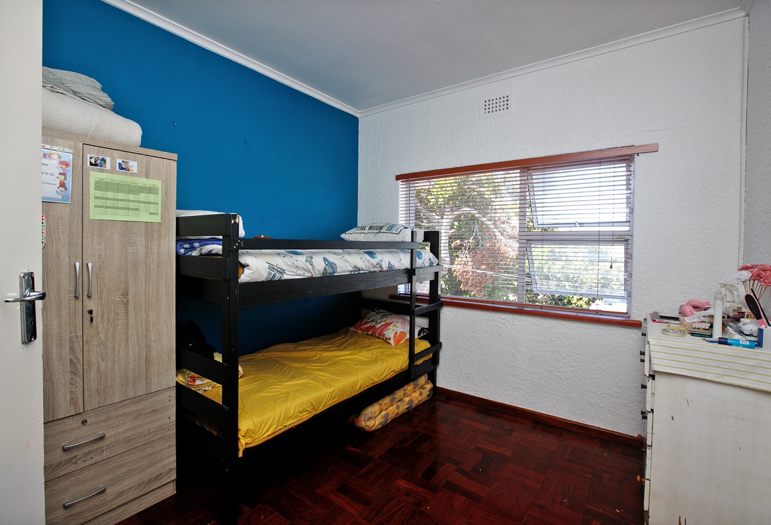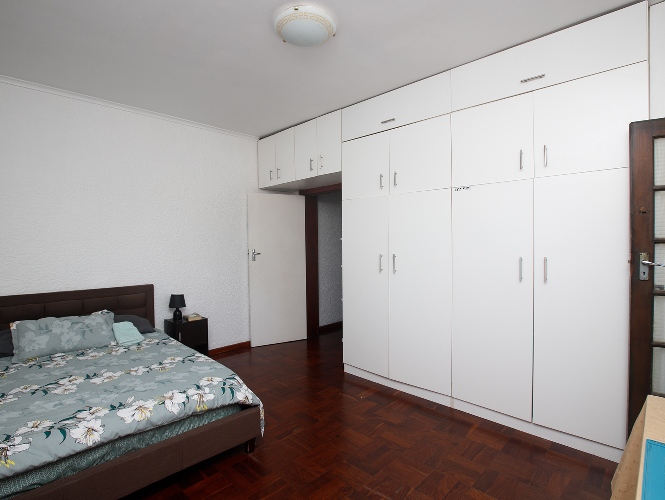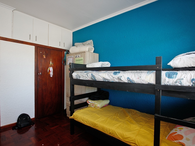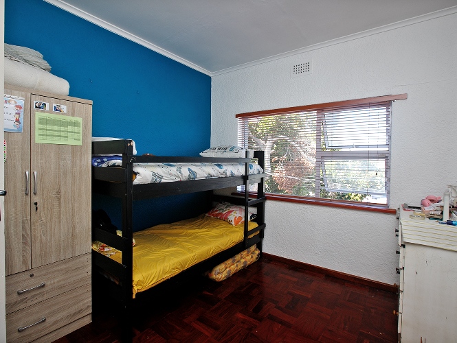 Two bedrooms both with built-in cupboards, and a bathroom.