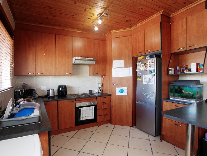 The kitchen has an electric oven, hob and extractor and a pantry, plumbed for a washing machine. Lounge and dining room open plan.
