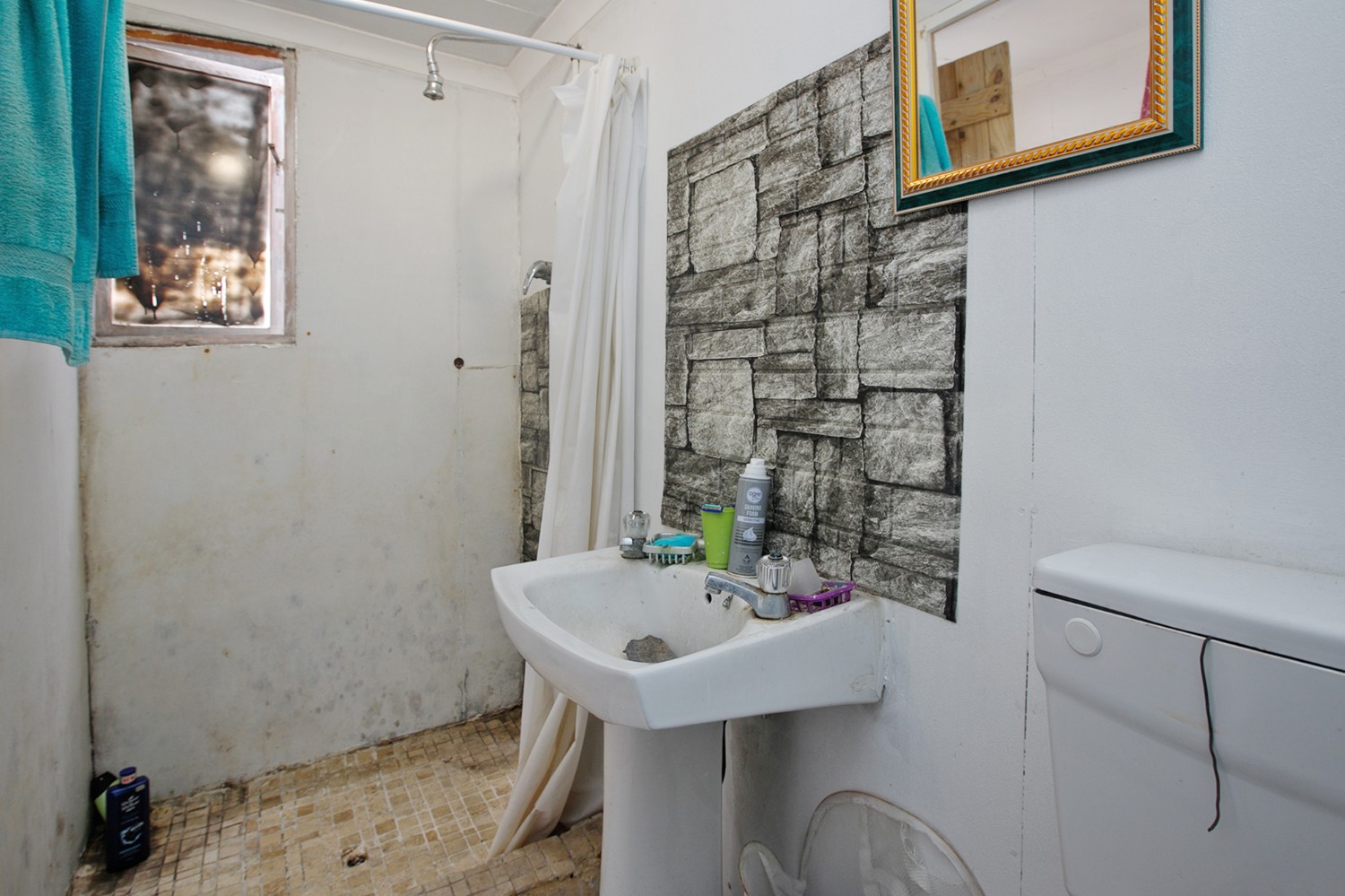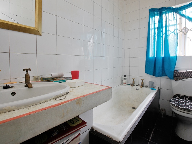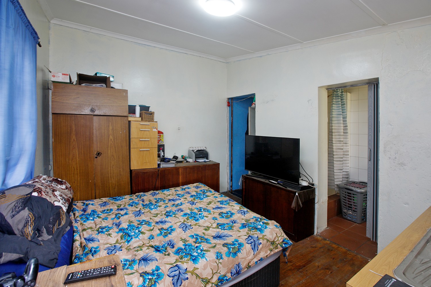 The main house offers three well-sized bedrooms. The first bedroom, located near the entrance, features its own en-suite bathroom with a shower. The main bathroom is fitted with a bathtub and toilet for added convenience.