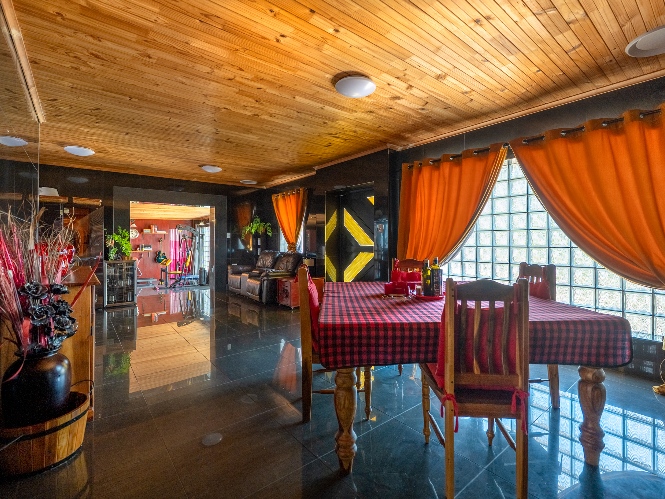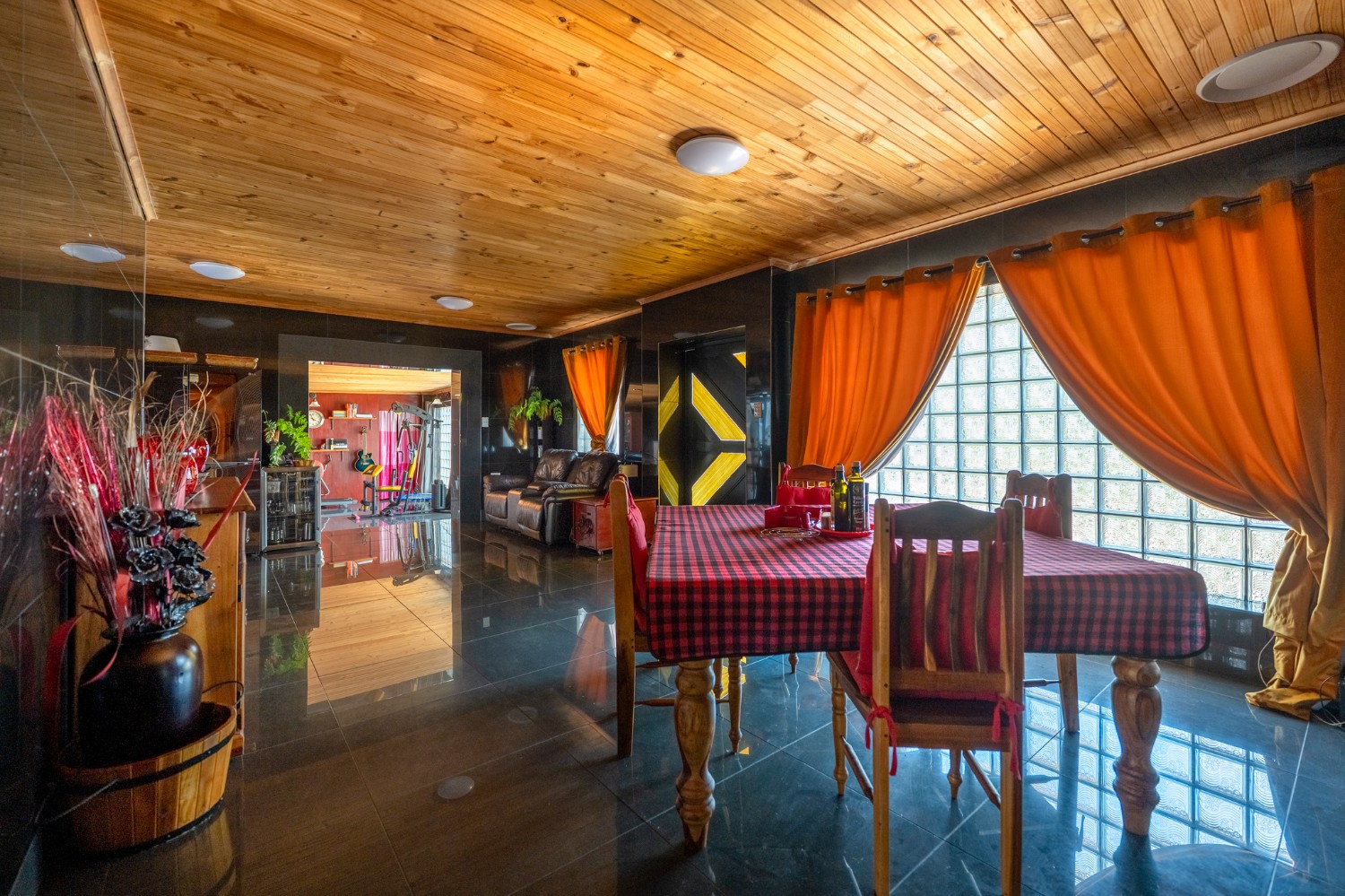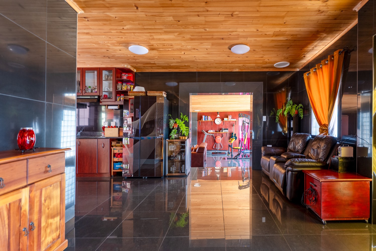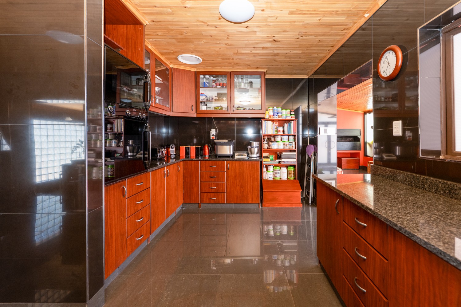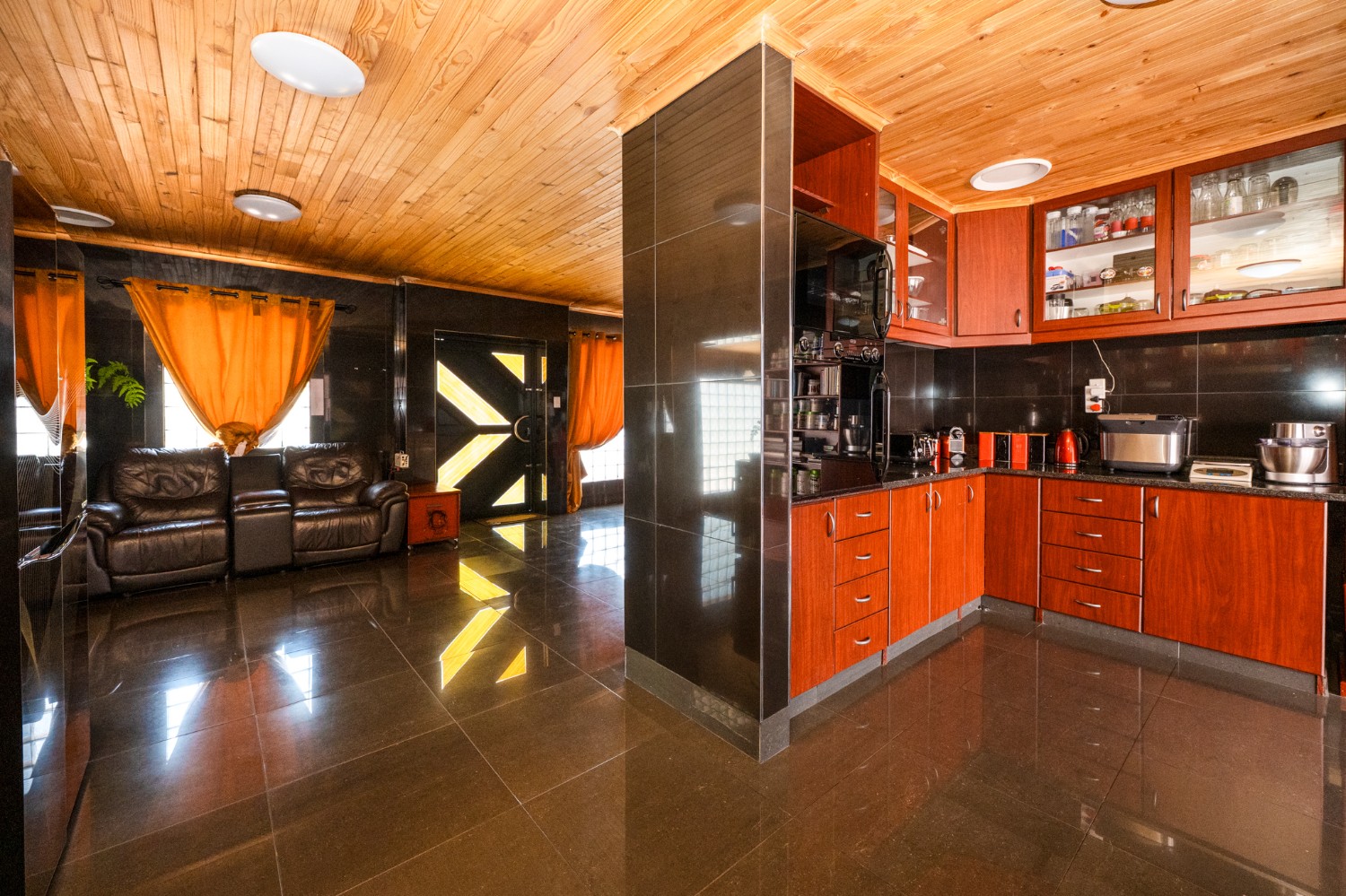 Once inside, you are welcomed by a spacious lounge area featuring tiled flooring and beautiful wooden ceilings, creating a warm and inviting atmosphere. Just off the lounge, the well-appointed kitchen offers ample built-in cupboards, two eye-level ovens, a stovetop, and a plumbing point, making it both practical and functional for everyday living. The entertainment room/TV room is well-sized and ideal for hosting guests or enjoying relaxed family time.