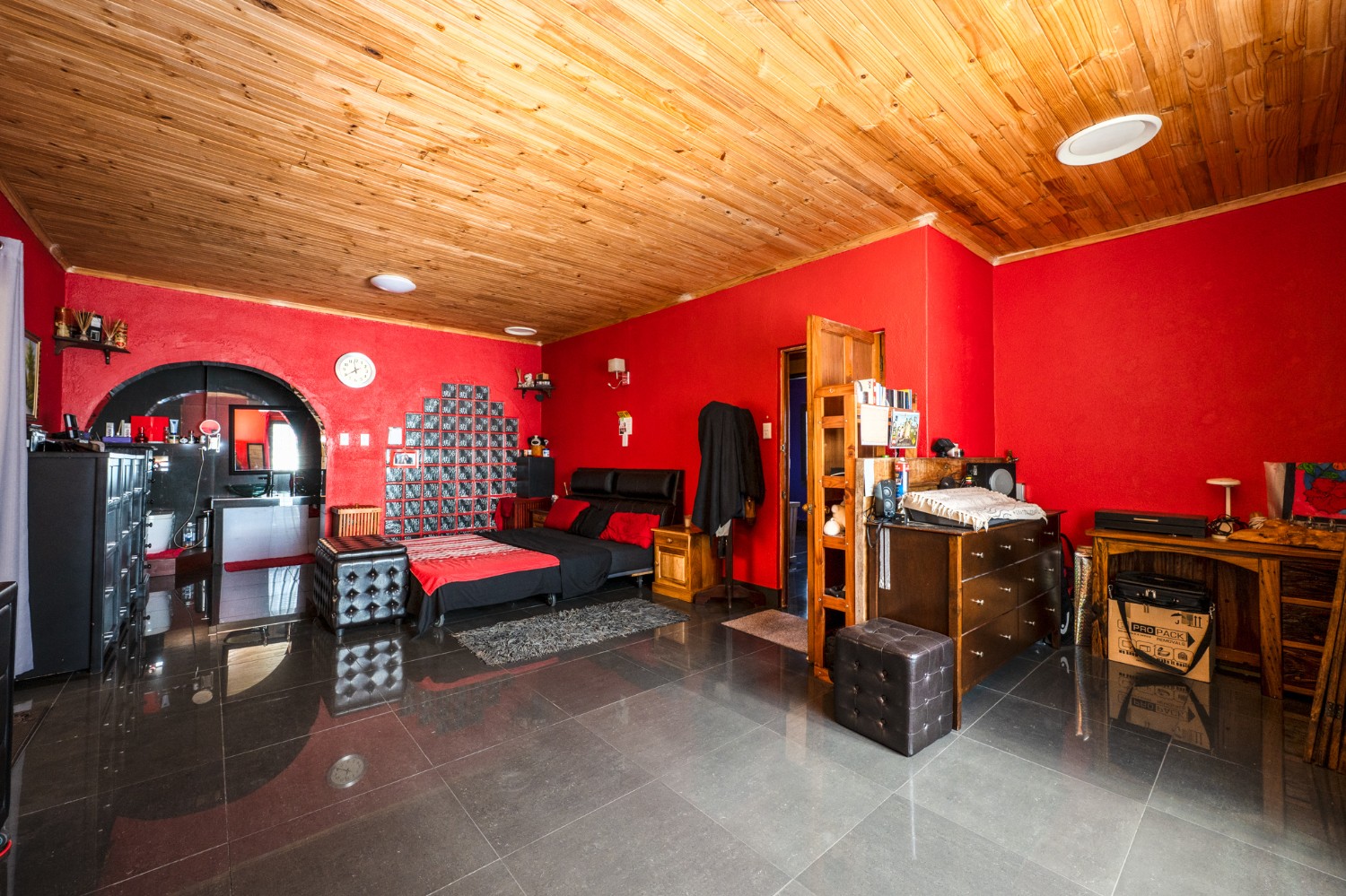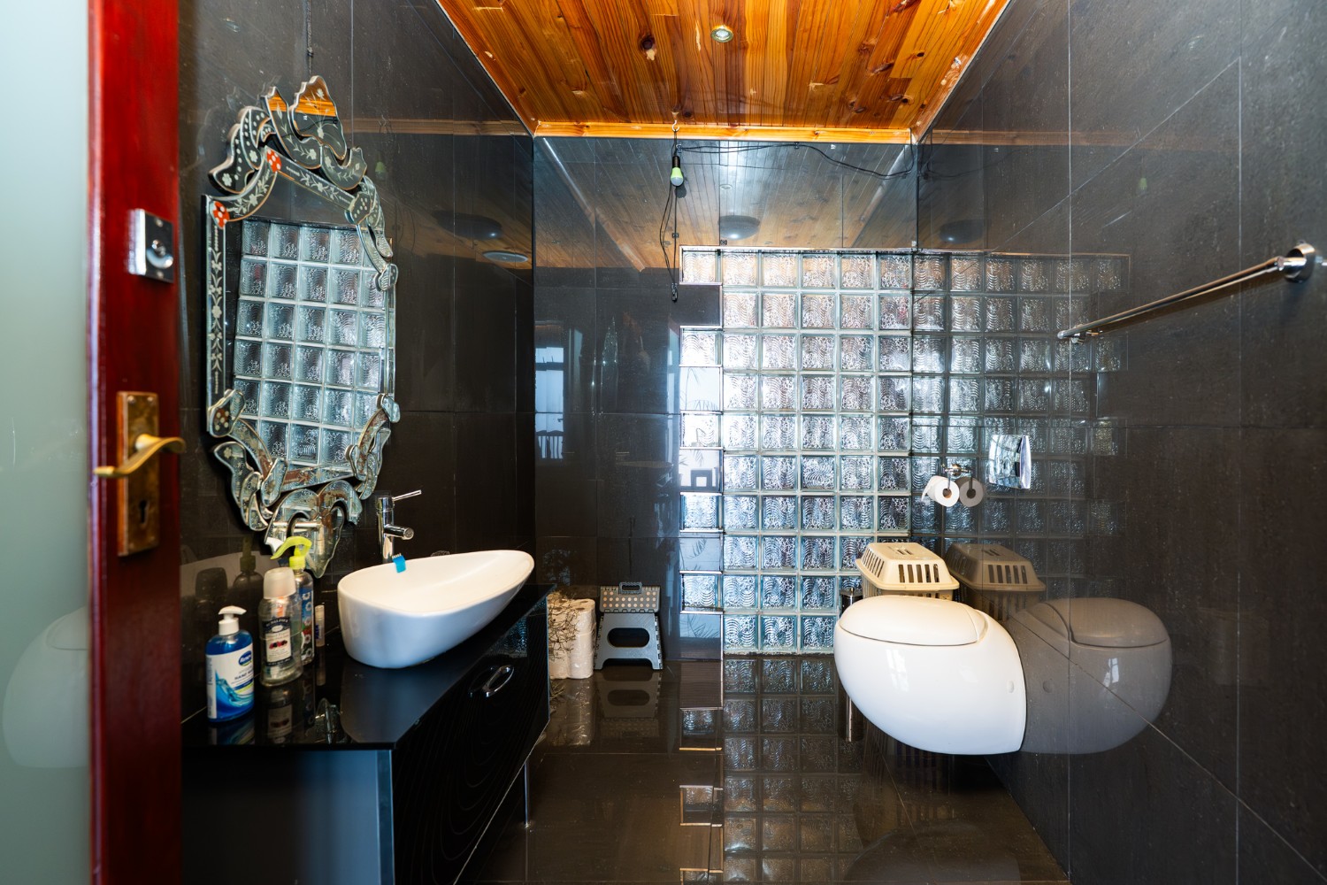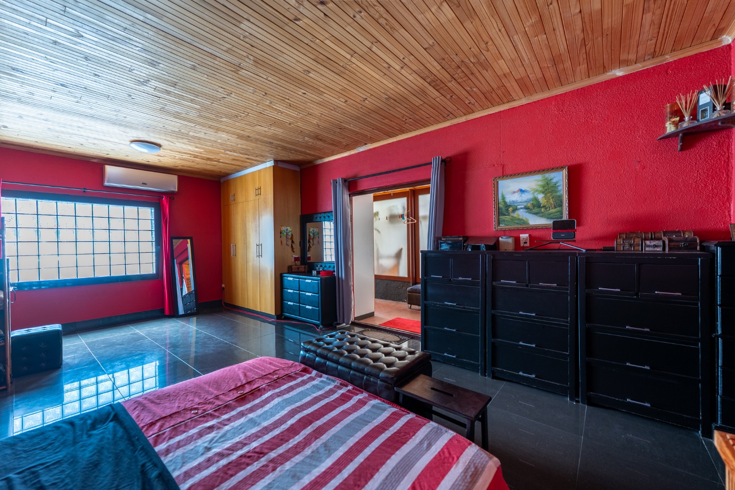 The home boasts five bedrooms, three of which include built-in cupboards, providing plenty of storage space. The main bedroom features an en-suite bathroom and an air conditioning unit for added comfort. The main bathroom is fitted with a shower, his-and-hers basins, and a toilet, while an additional guest bathroom ensures convenience for visitors. Adjacent to the kitchen, you will find a dedicated braai room complete with a built-in braai.