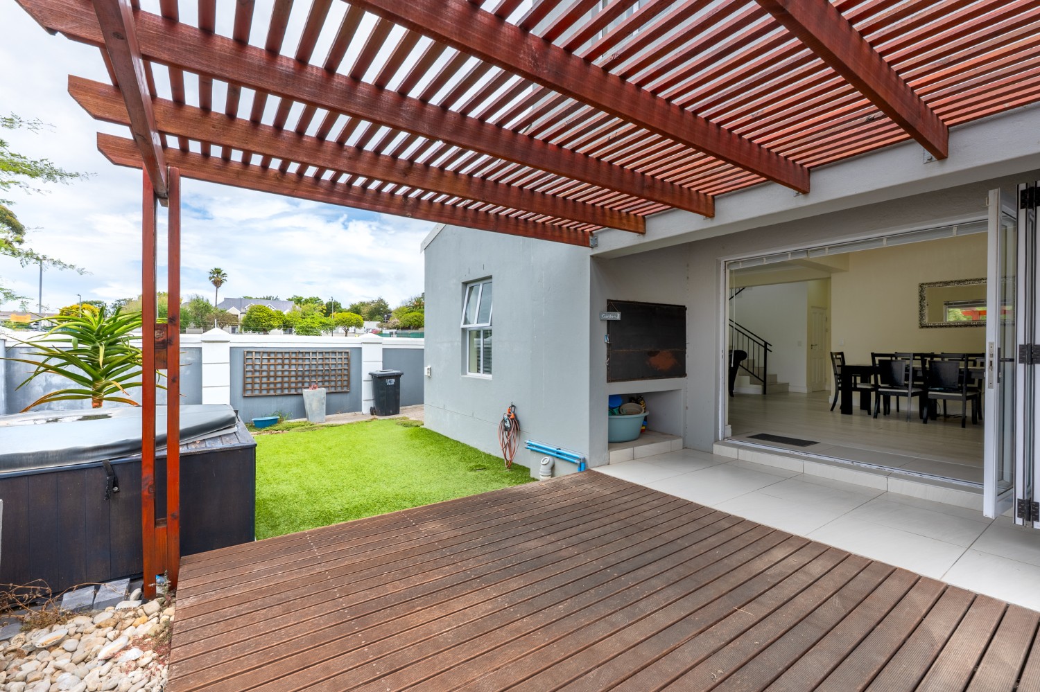 This stylish double-storey, three-bedroom home with modern finishes is perfectly located in the sought-after suburb of Durbanville, within a beautifully maintained security estate that offers peace of mind and a wonderful sense of community.