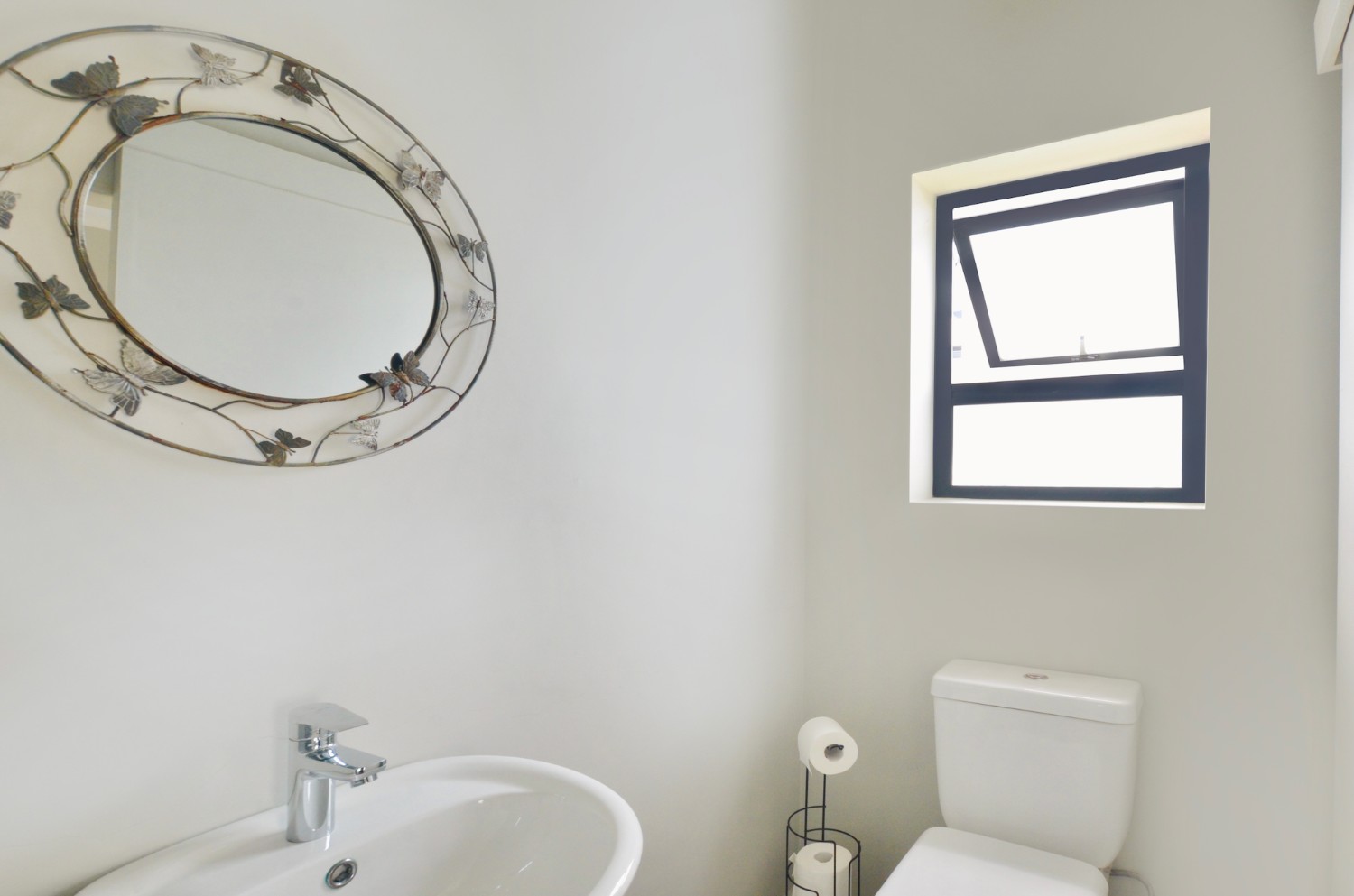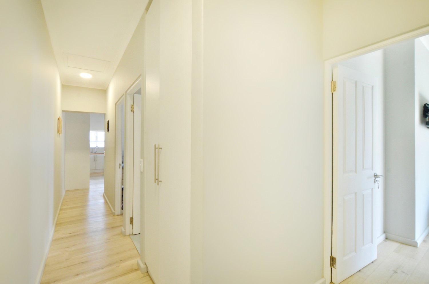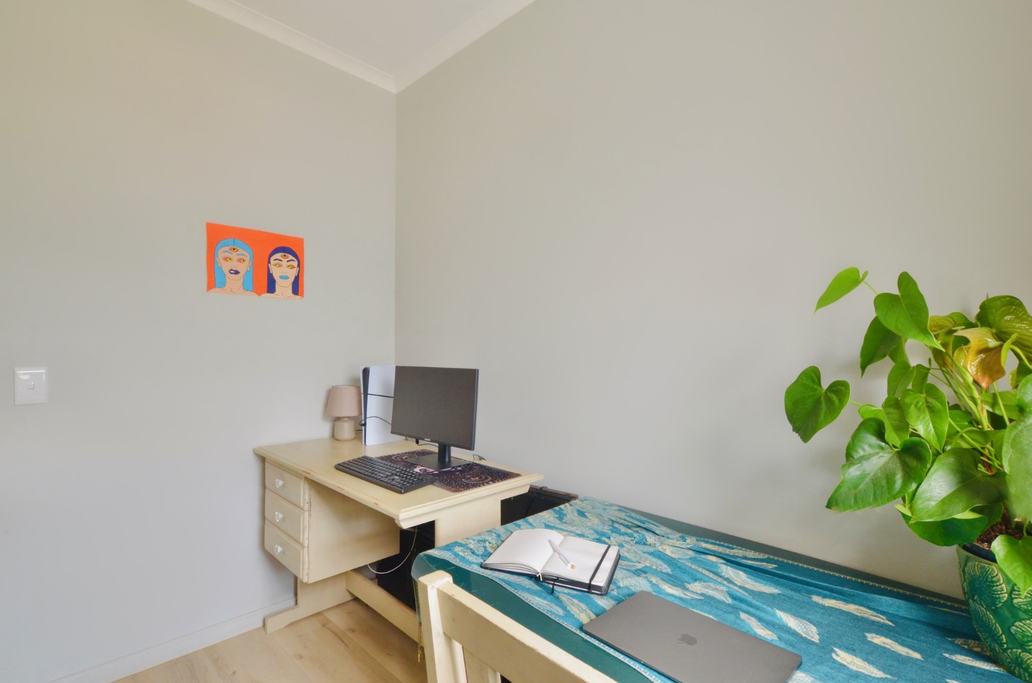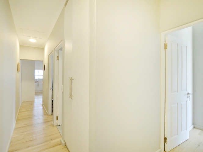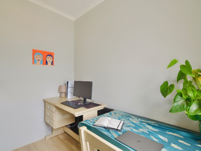 The secondary bedrooms also feature built-in-cupboards, with the second bedroom large enough to accommodate a queen-size bed, and the third, a single bed with a desk. These bedrooms share the family bathroom which has a bath, handbasin and toilet.