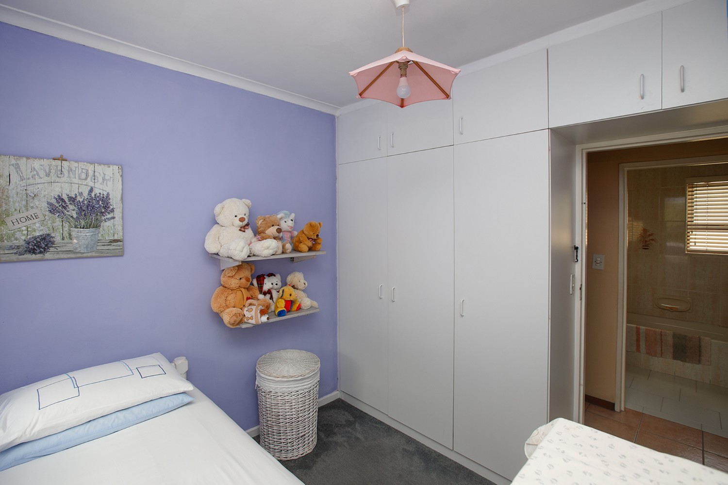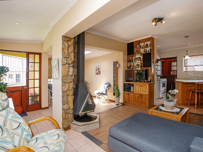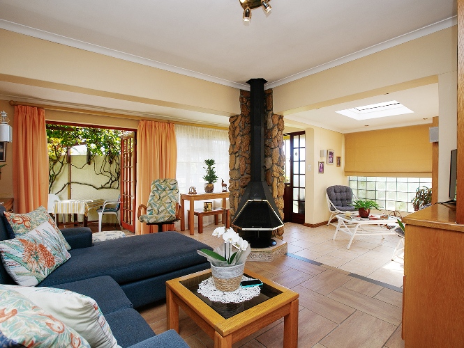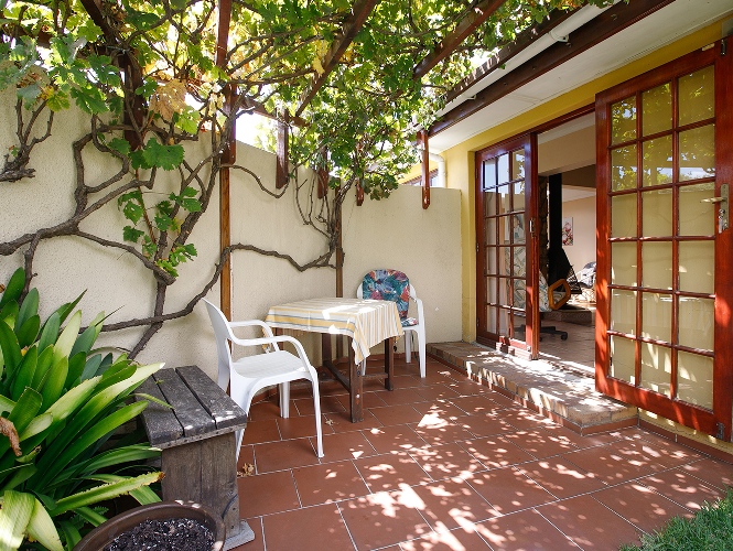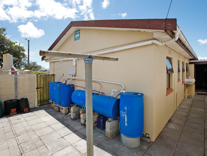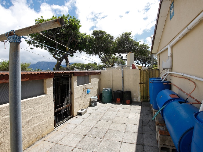 The garden has a patio with grape vines and beautifully established trees and plants with a borehole, mountain views and an awesome built in braai. There is a store room and a rain water system with 6 water tanks connected to the toilet.