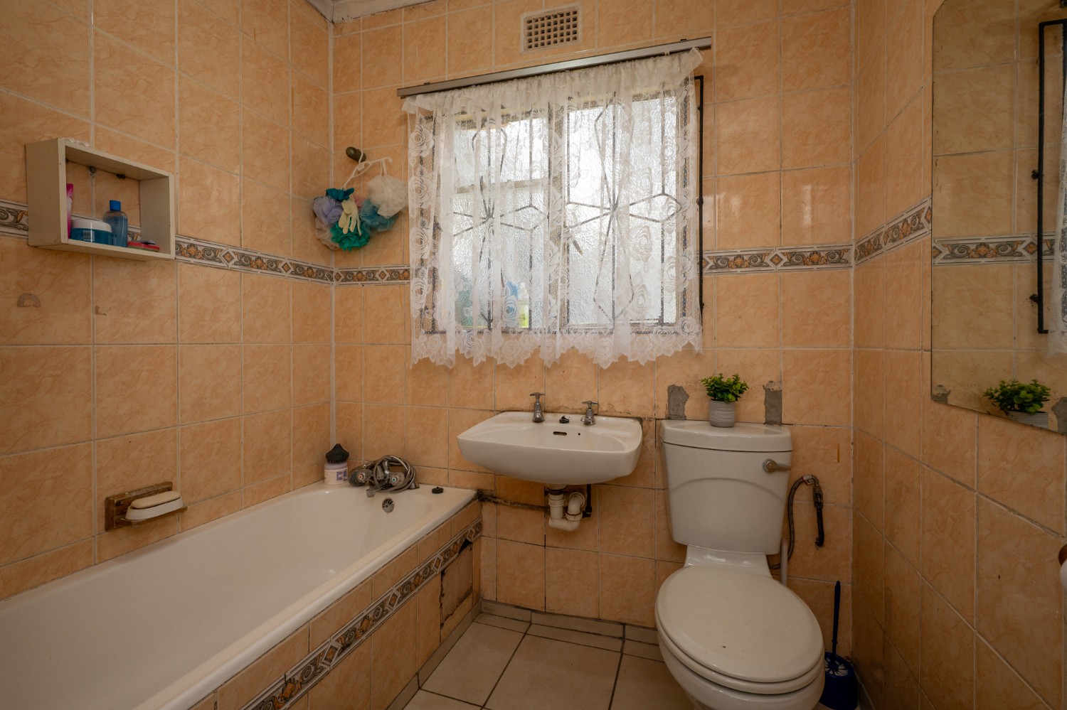 All three bedrooms are generously sized and fitted with well-maintained flooring. The neatly tiled family bathroom includes a shower, bathtub, basin, and toilet.