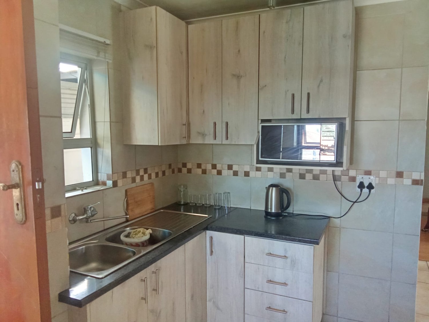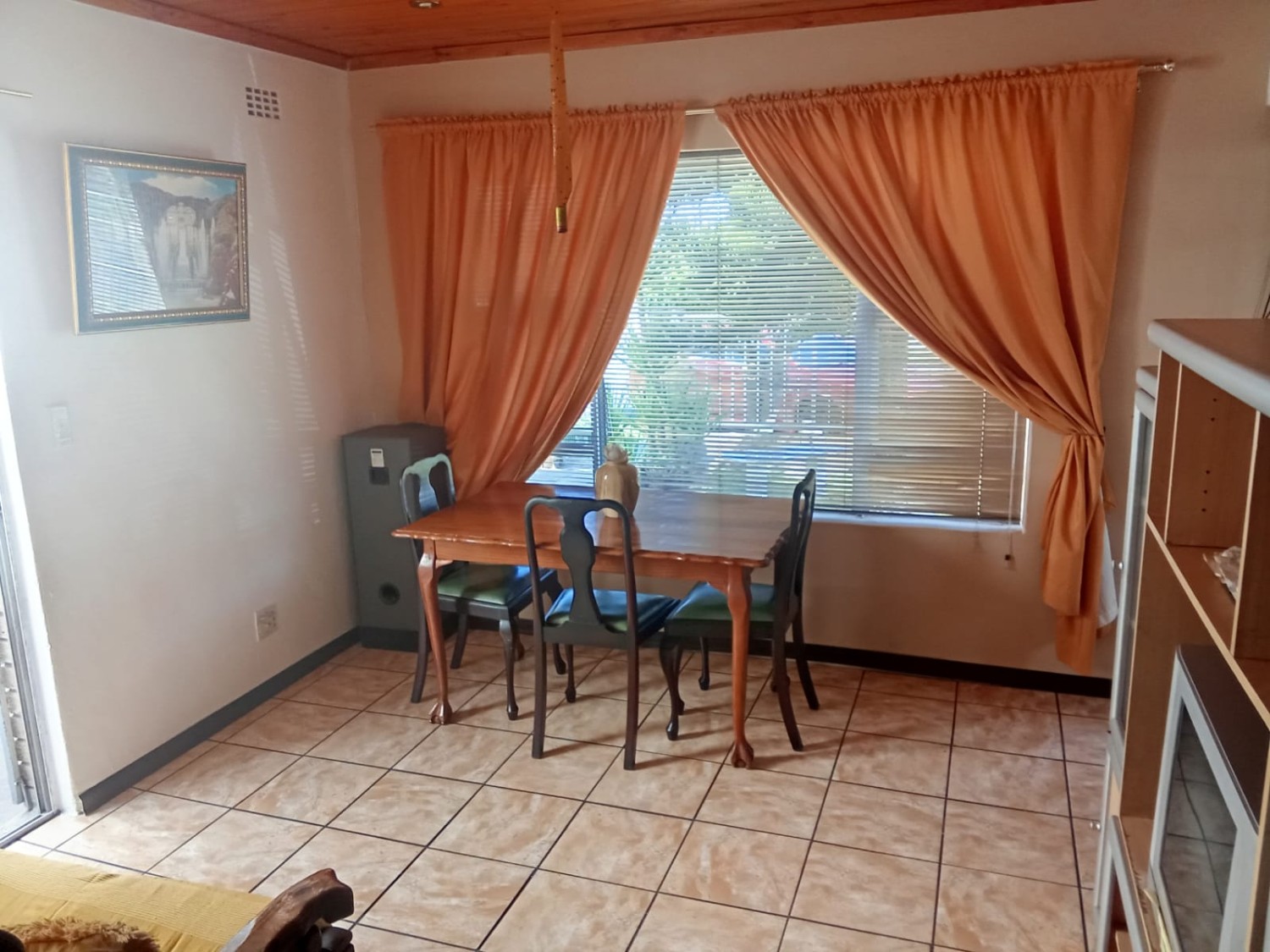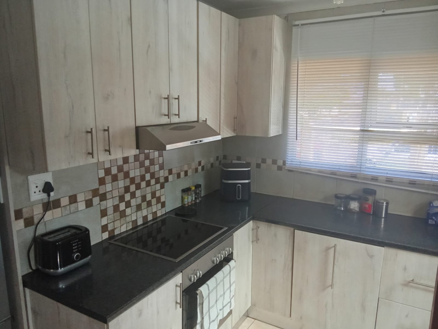 Once inside, the home offers comfortable living with a welcoming lounge that provides a relaxed space for family time and entertaining guests. The separate dining room is perfectly positioned for easy access to the kitchen, creating a practical flow for everyday meals and special gatherings. The kitchen is fitted with built-in cupboards and includes an under-counter oven and hob, offering ample storage and functionality for all your cooking needs.