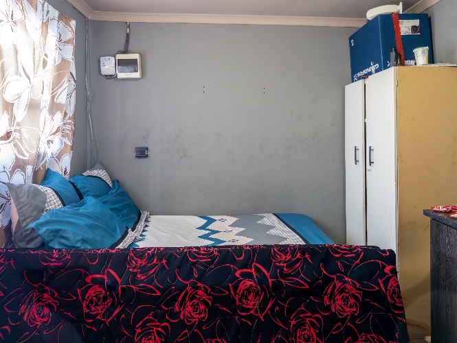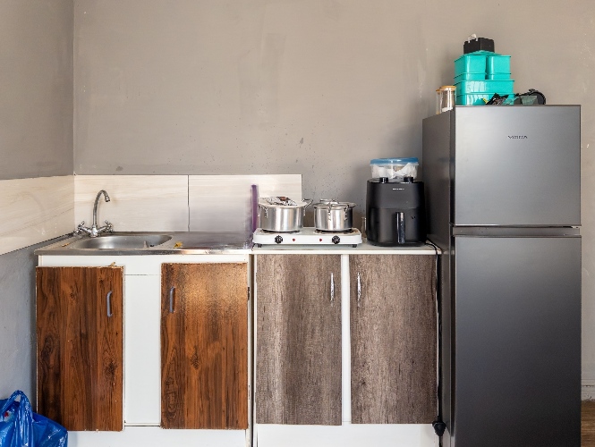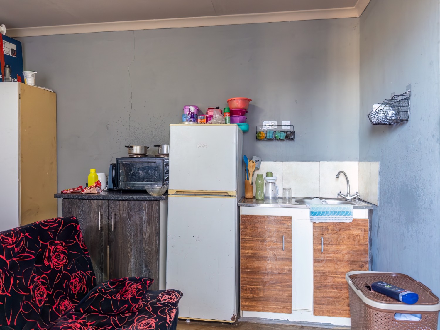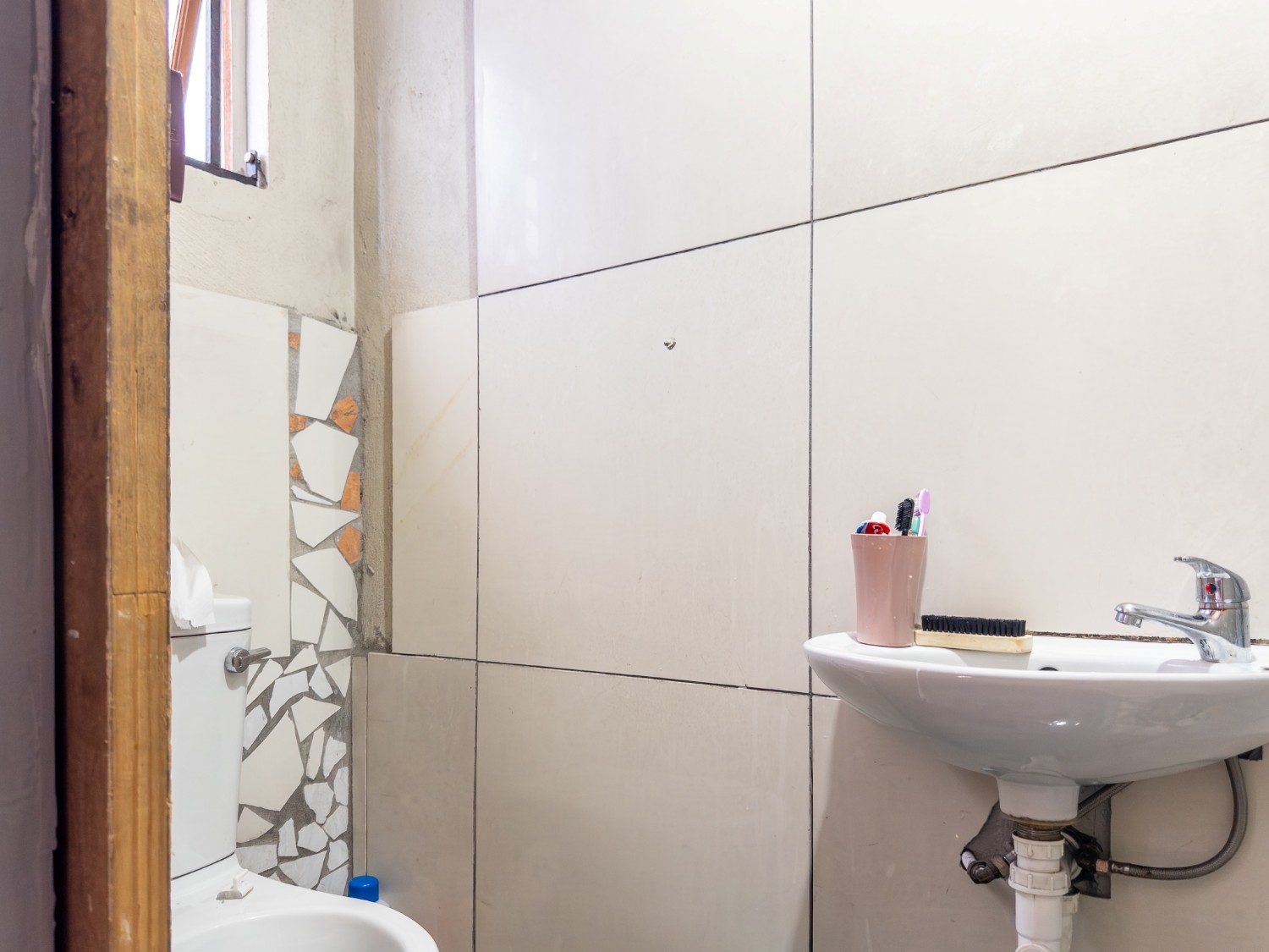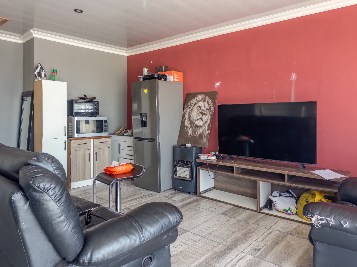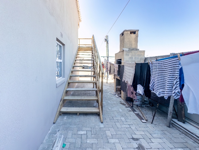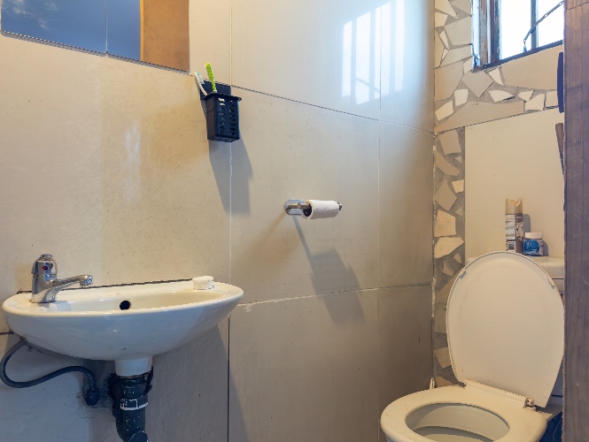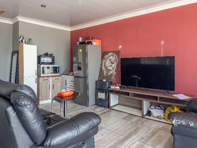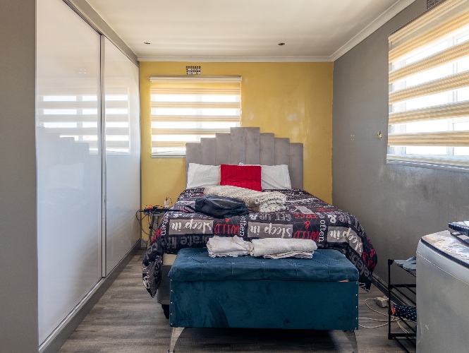 Upstairs, the home continues to impress with a comfortable lounge area and 2 bedrooms, including a main bedroom with an open en-suite. The floors are fully laminated, and the staircase leading up is neatly tiled. A small kitchenette has been added, enhancing the independent living potential of this level.