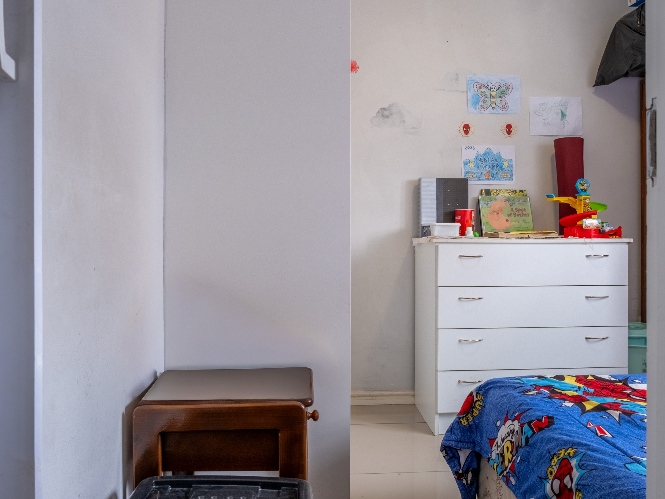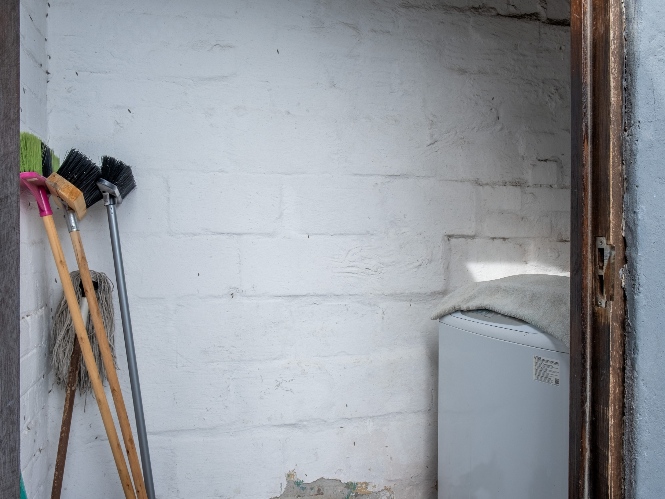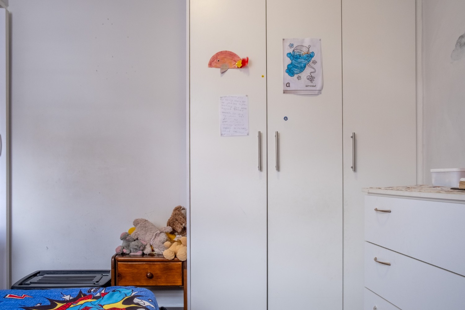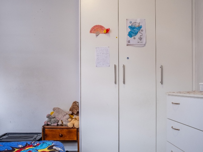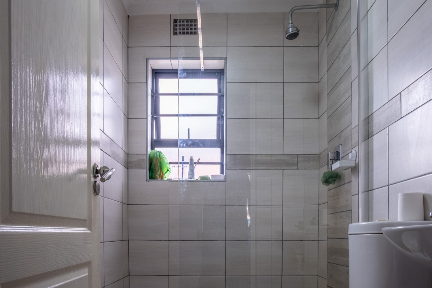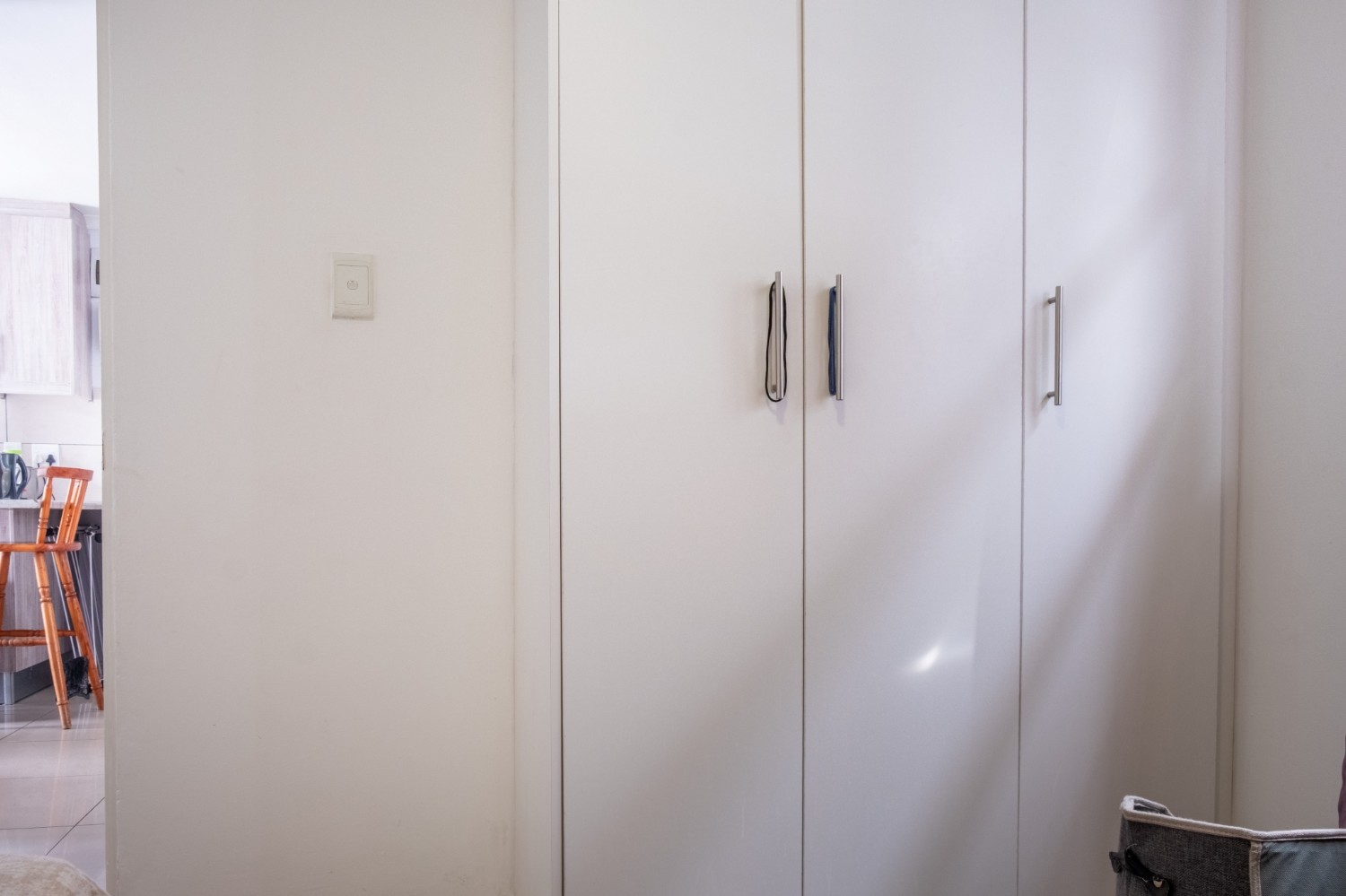 The home features two well-sized bedrooms, both fitted with built-in cupboards and enhanced by plenty of natural light. The tastefully tiled family bathroom is fitted with a shower, basin, and toilet, offering both functionality and a clean, modern finish.