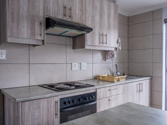 As you enter the home, you are welcomed by a bright and airy open-plan lounge filled with natural light, creating a warm and inviting living space. The modern kitchen is thoughtfully designed with ample cupboard space, an under-counter oven and hob, and space for your essential appliances, making it both practical and stylish.