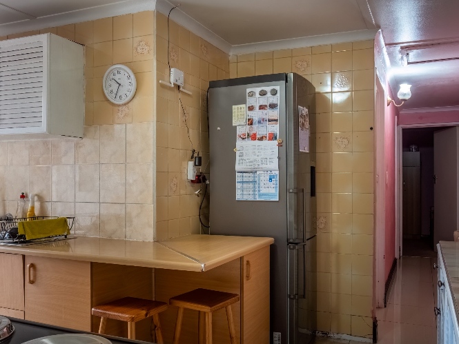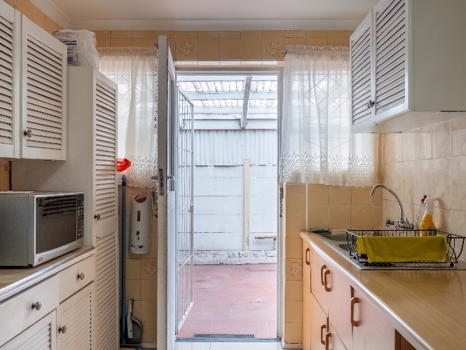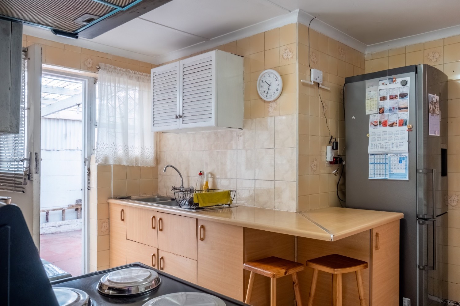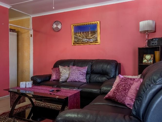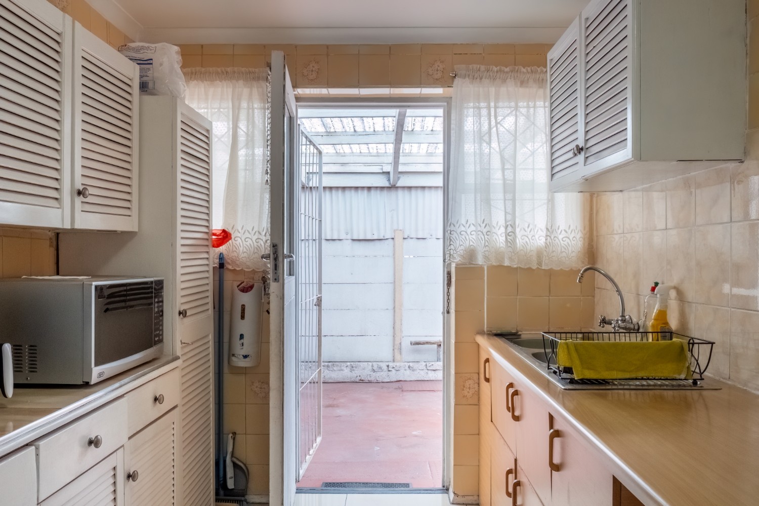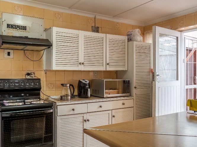As you enter, you are welcomed into an open-plan lounge that creates a warm and inviting space for relaxing or entertaining. The kitchen offers built-in cupboards and features a back door that leads out to the backyard, providing easy access to the outdoor space.