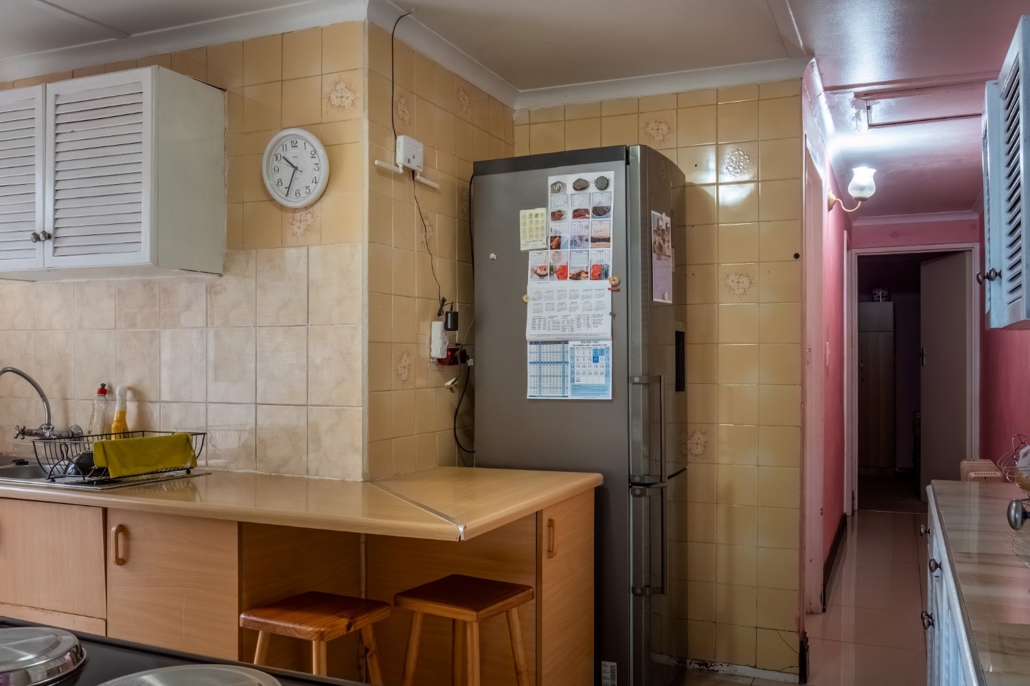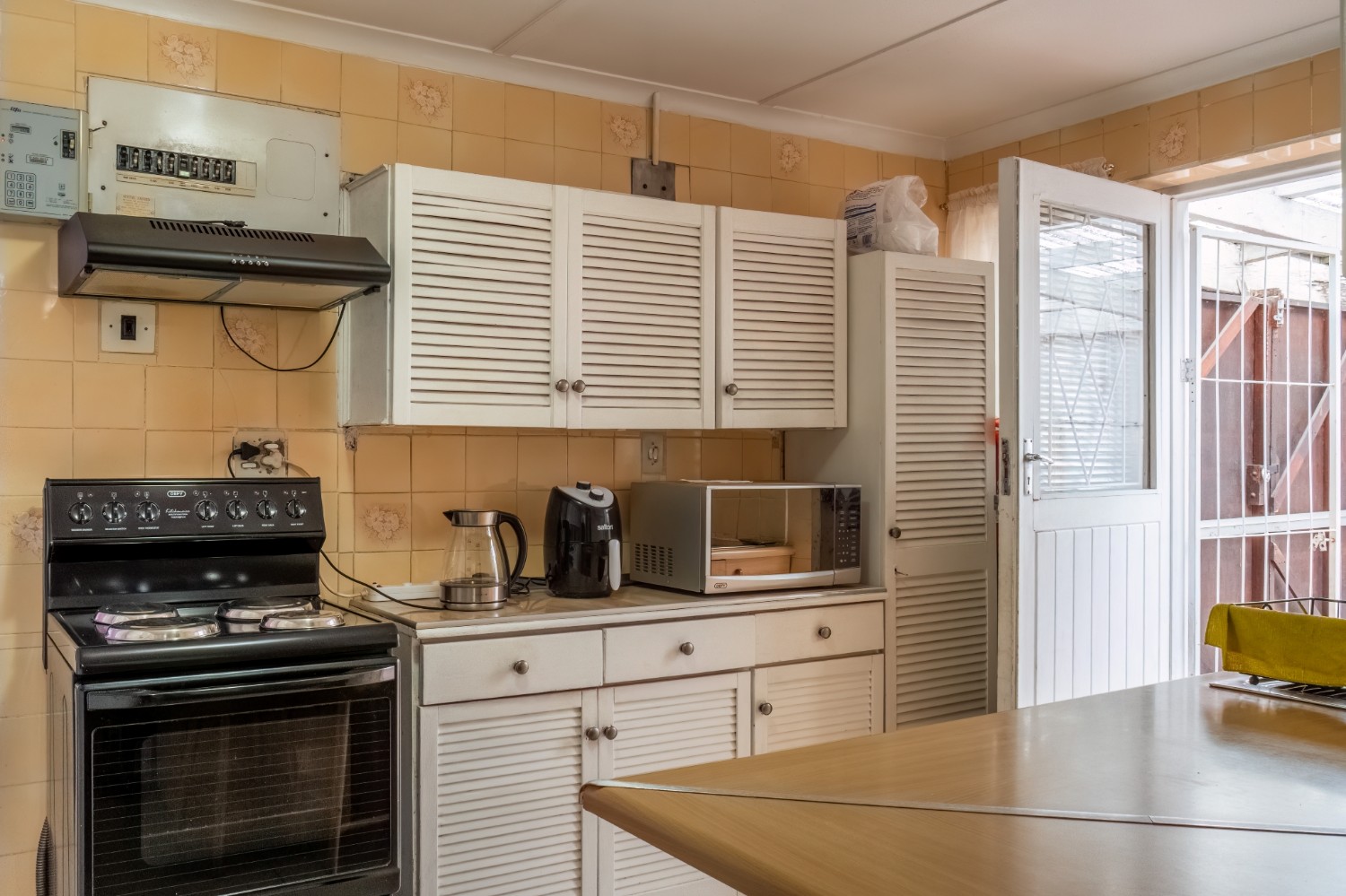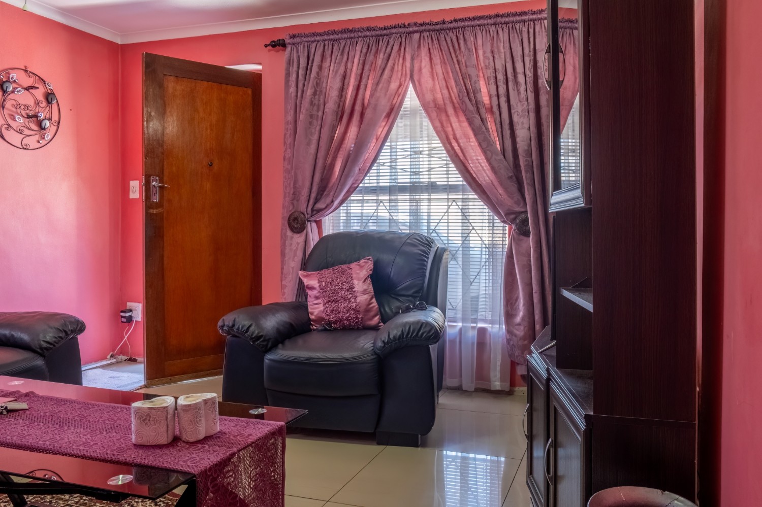 As you enter, you are welcomed into an open-plan lounge that creates a warm and inviting space for relaxing or entertaining. The kitchen offers built-in cupboards and features a back door that leads out to the backyard, providing easy access to the outdoor space.